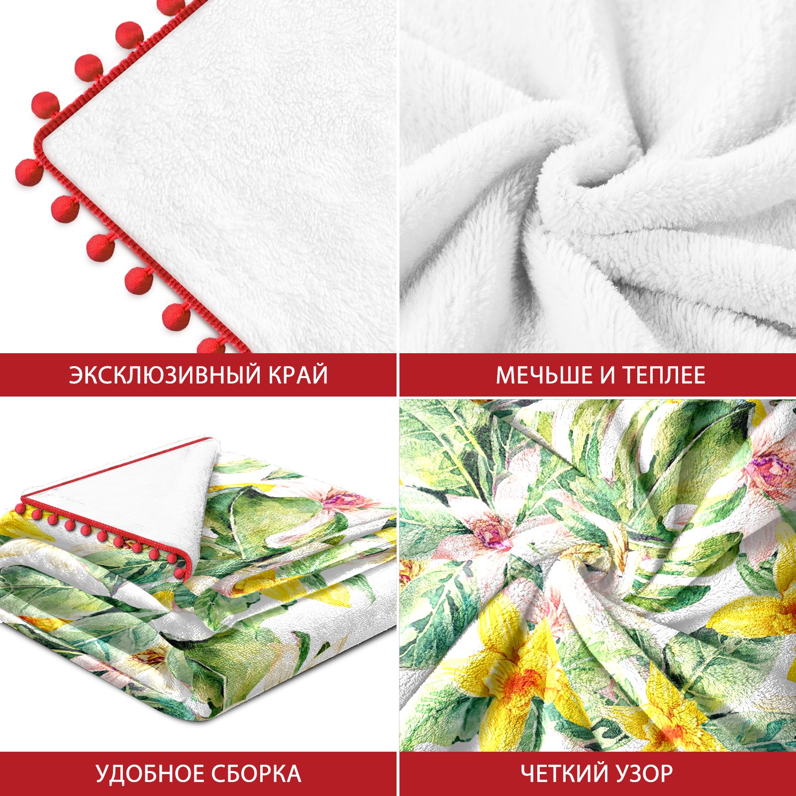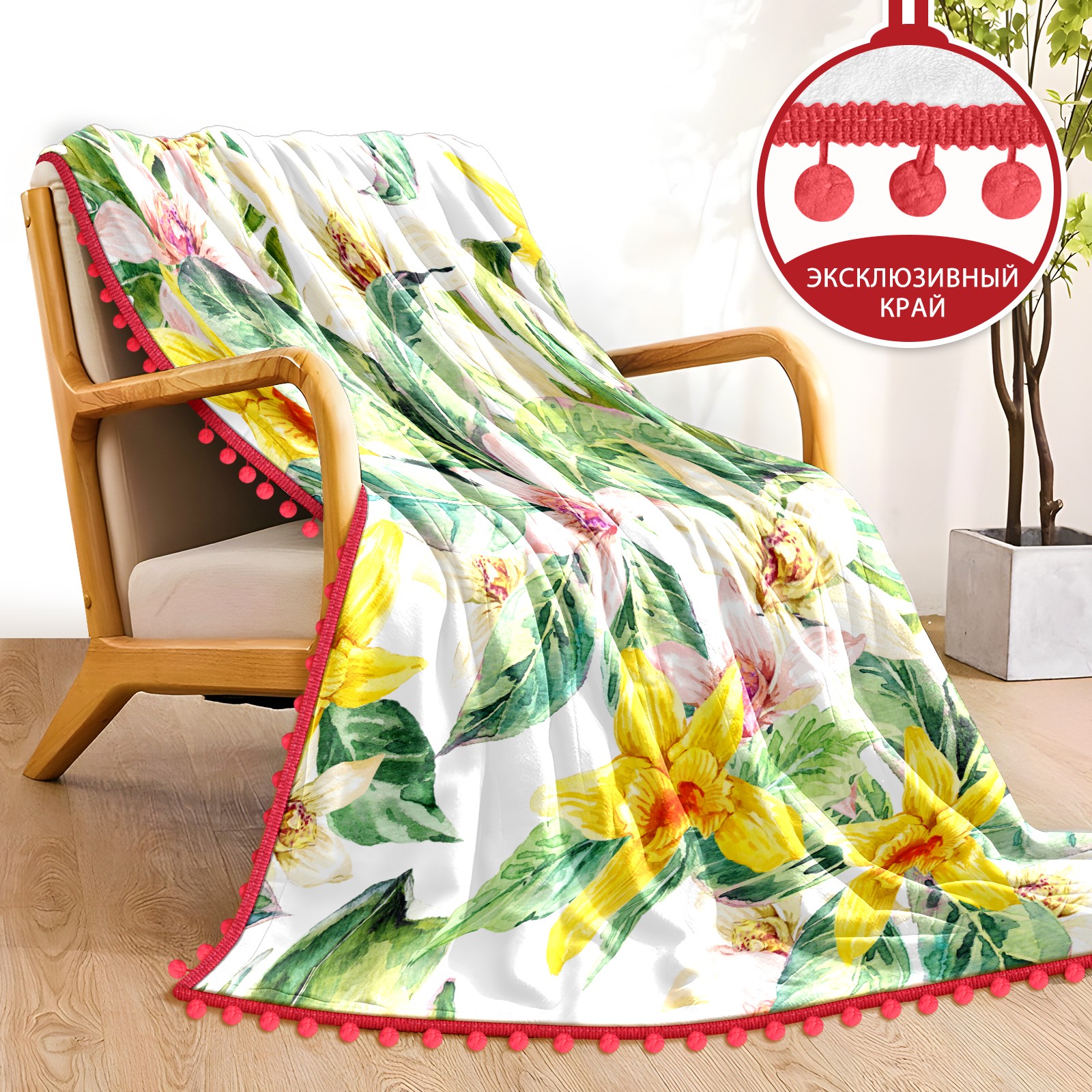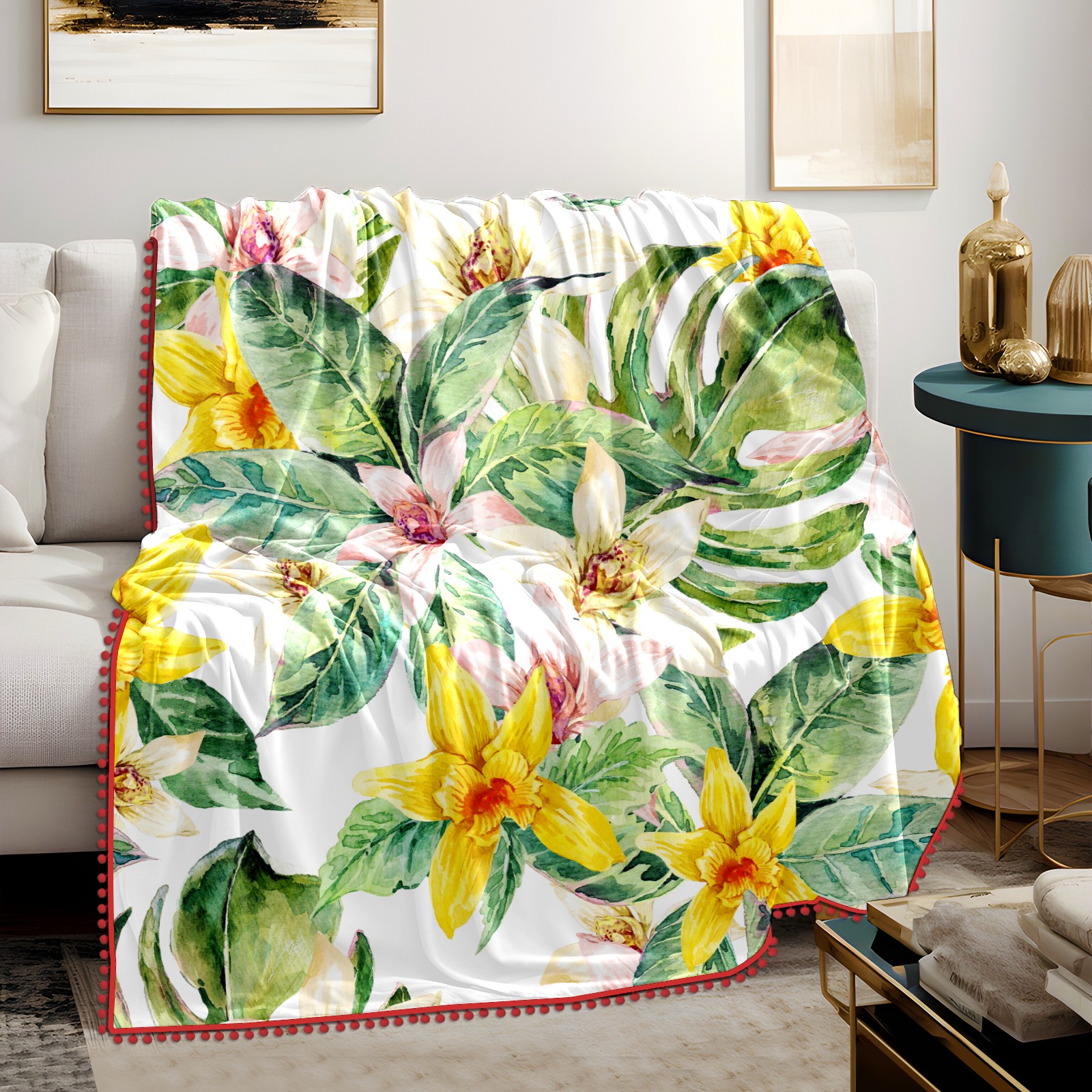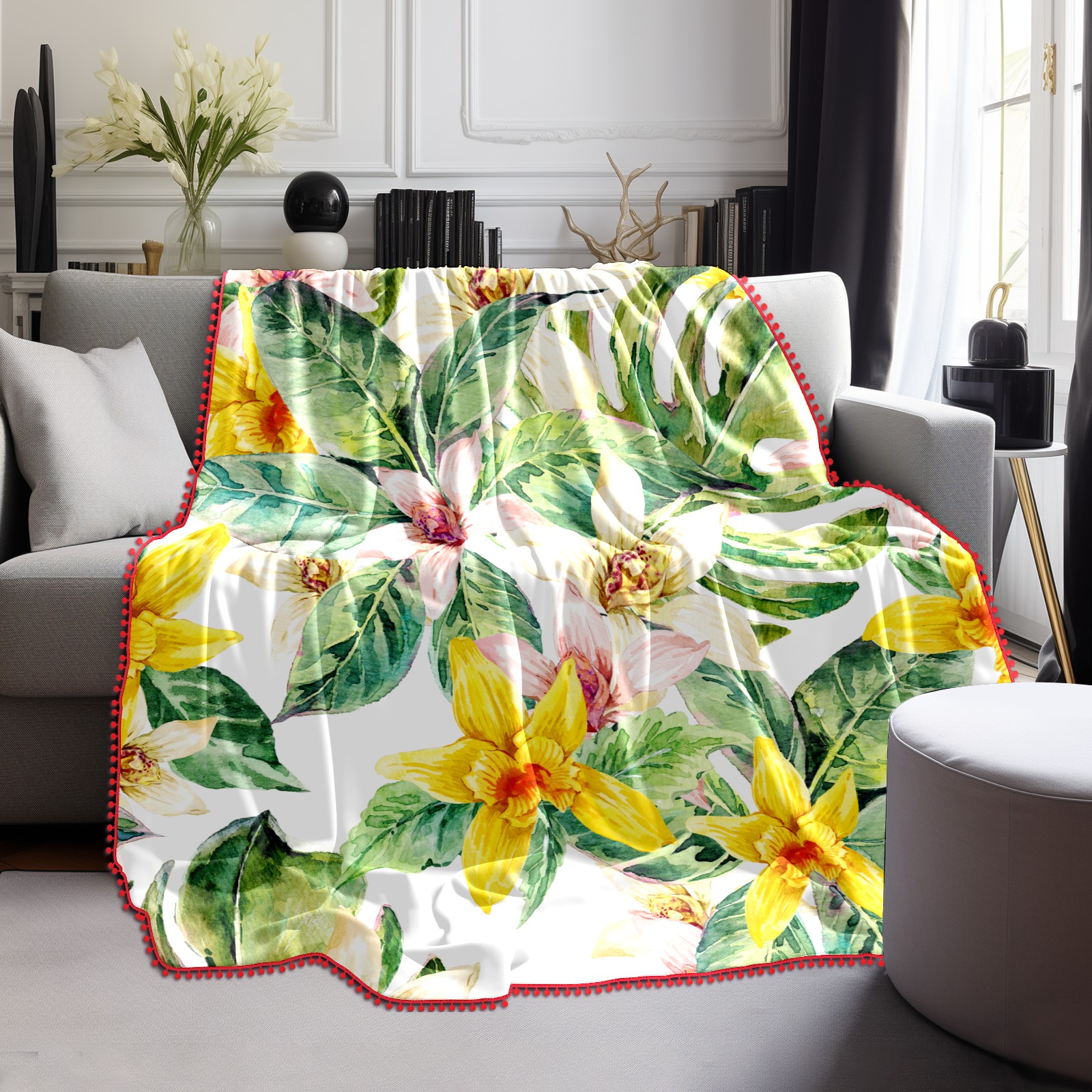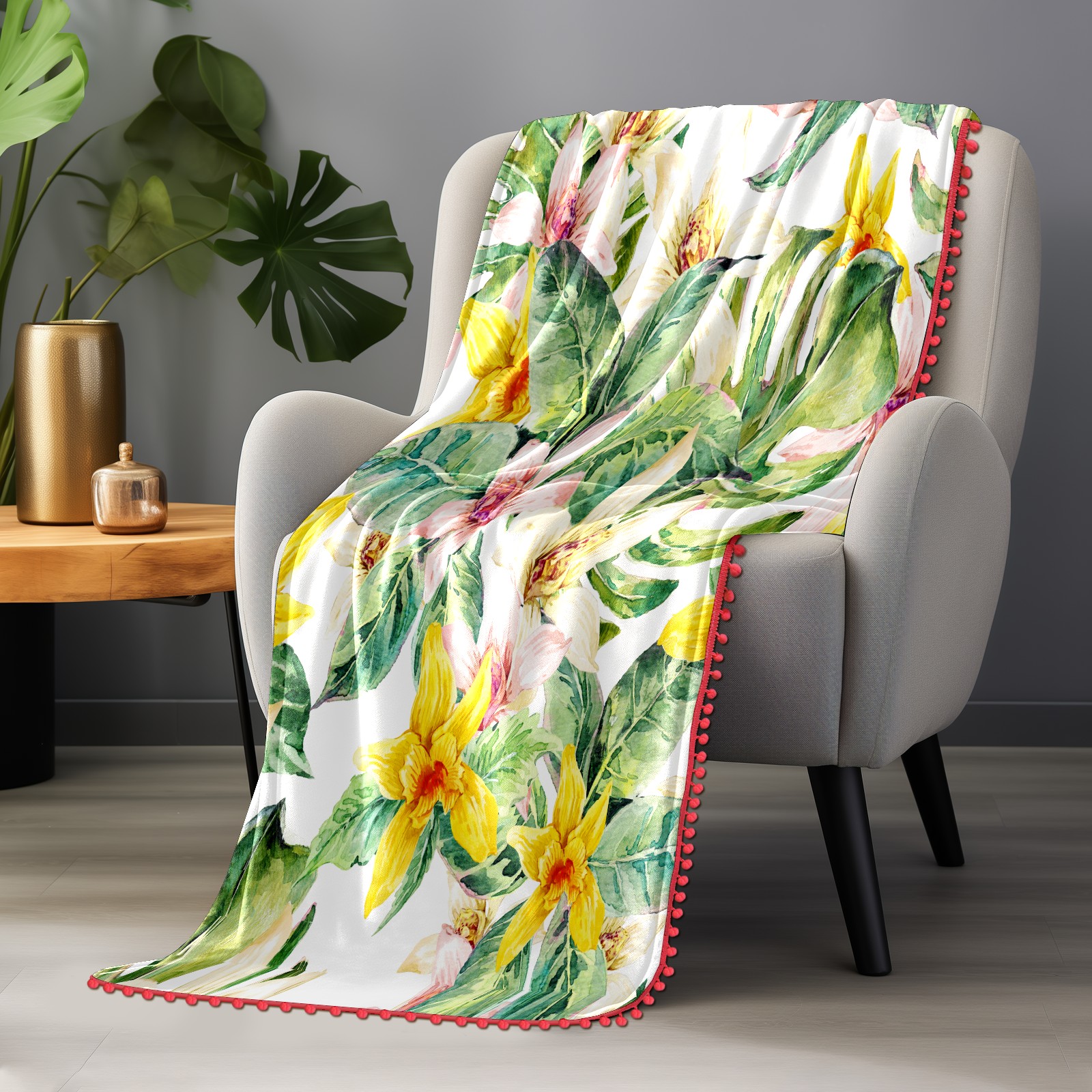 流苏毛毯 Natural Leaves Watercolor Flower Orchid
