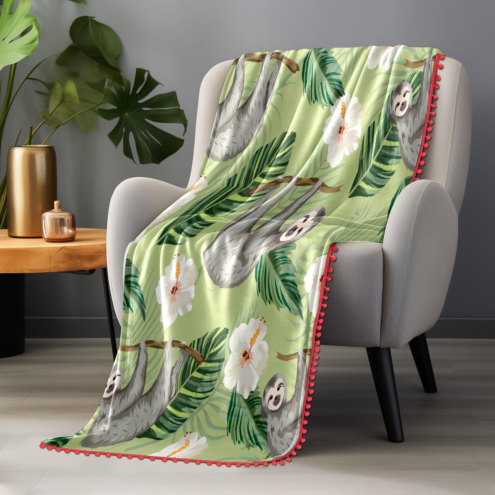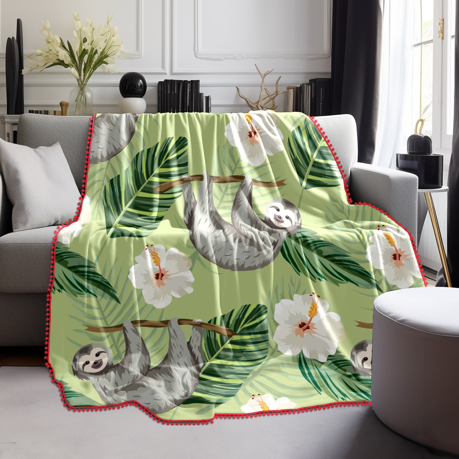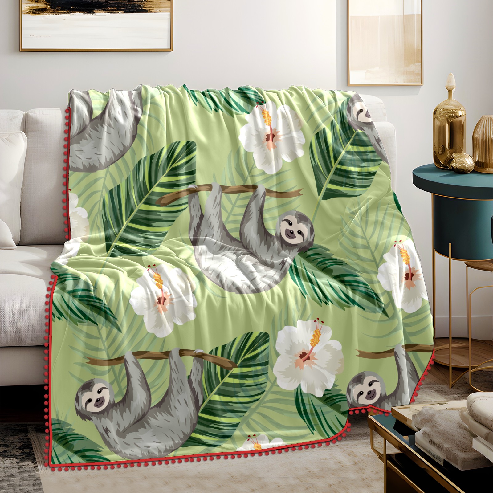 流苏毛毯 Sloth Tropical Flowers Leaves