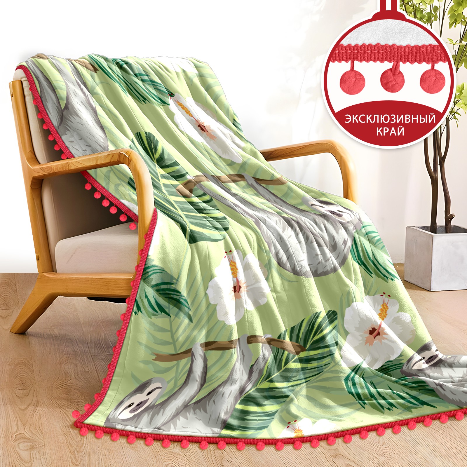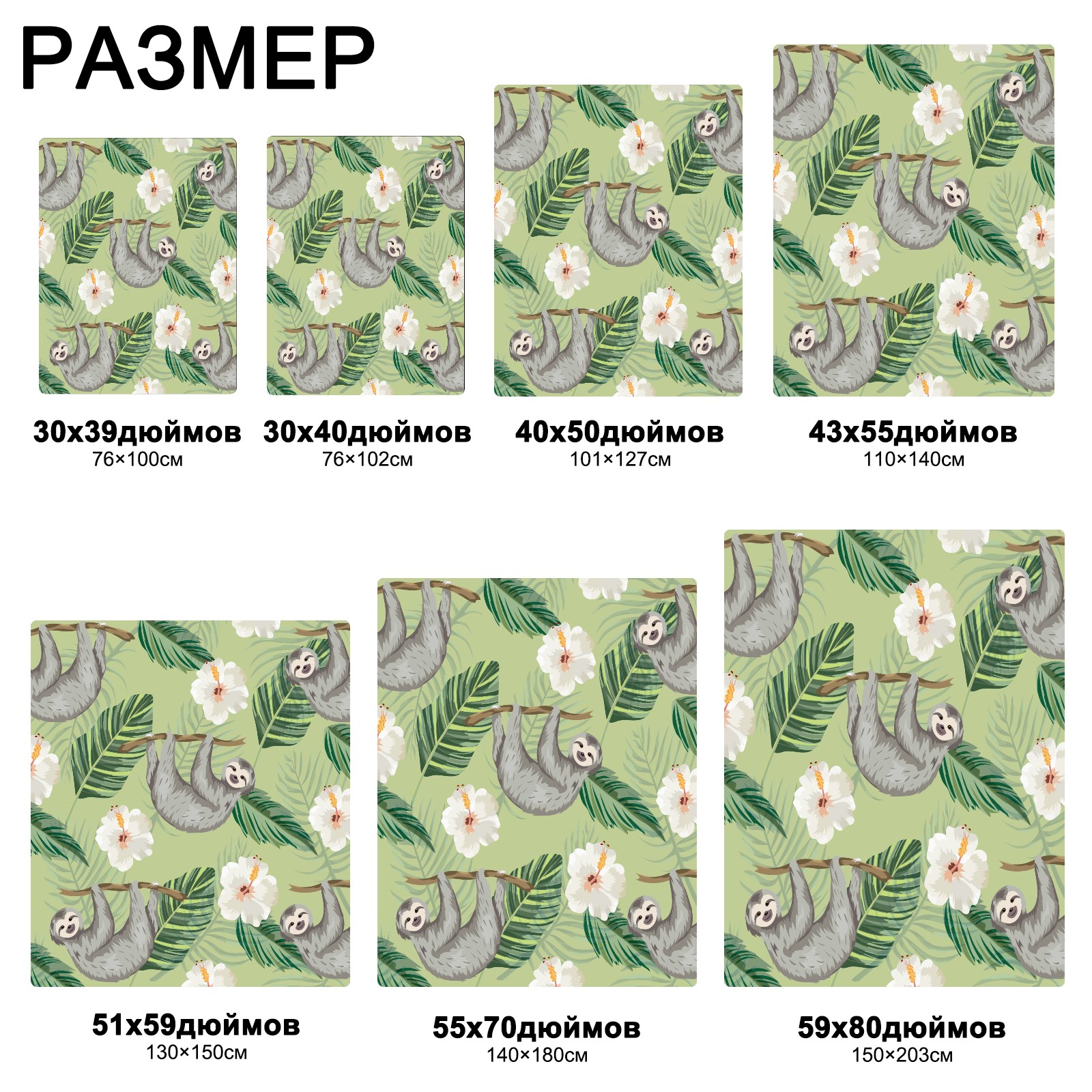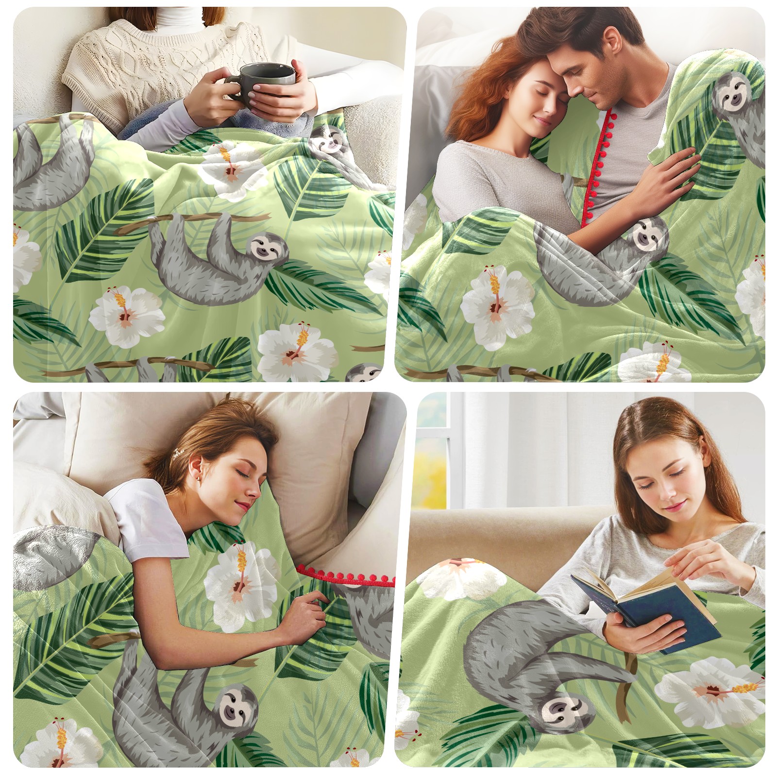 流苏毛毯 Sloth Tropical Flowers Leaves