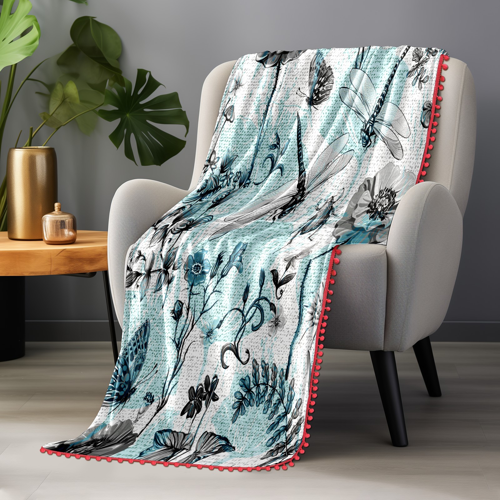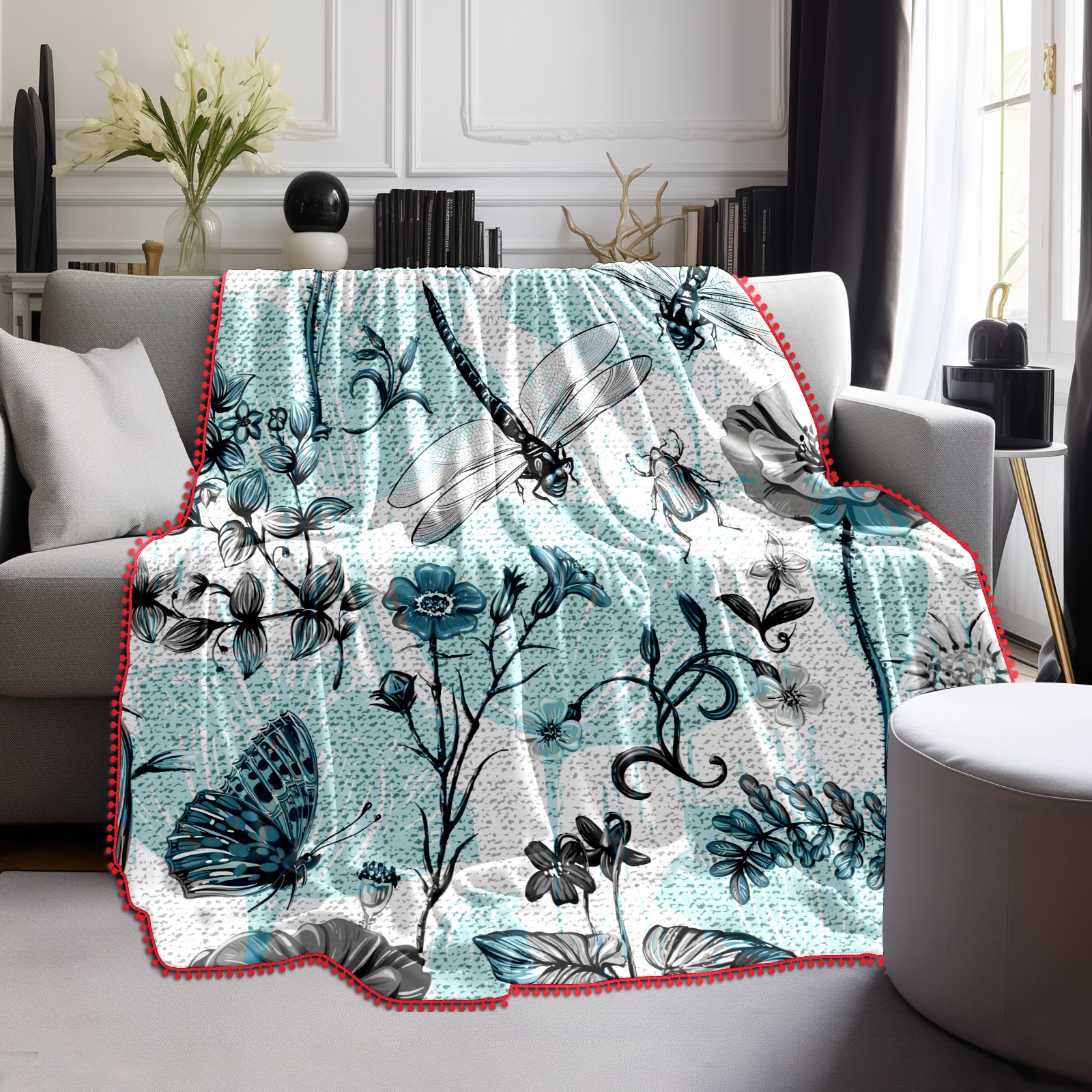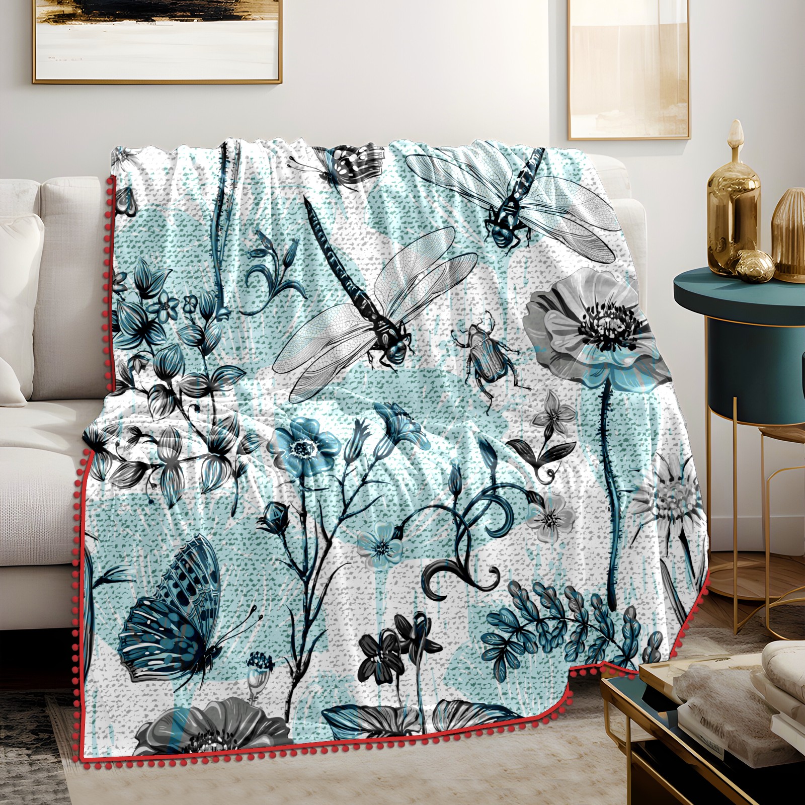 流苏毛毯 Dragonfly Leaves Blue Trees