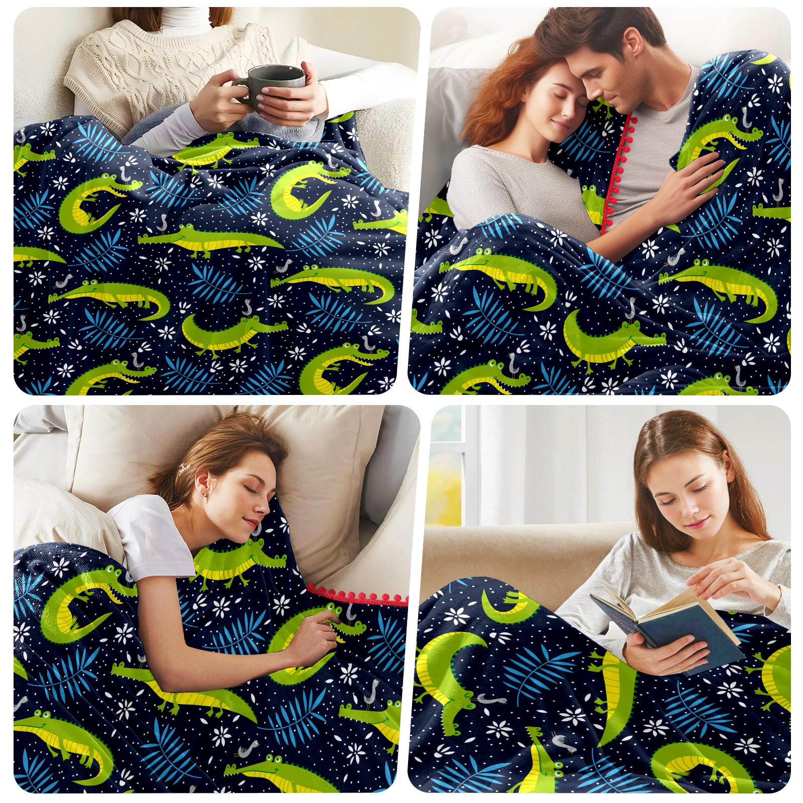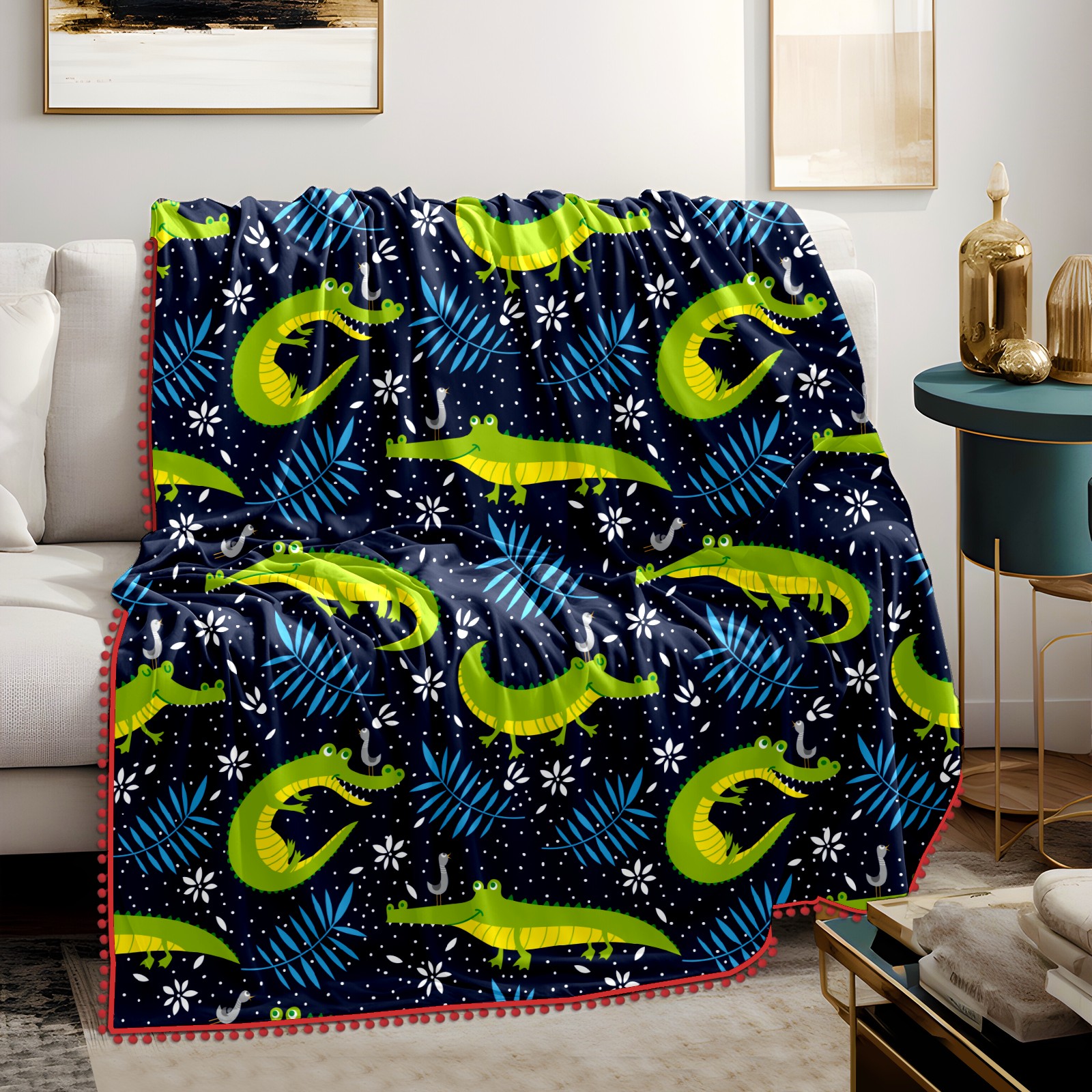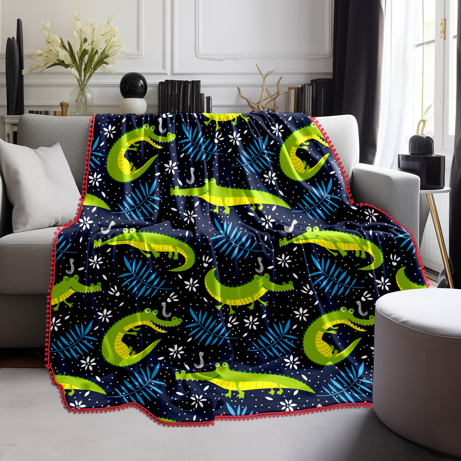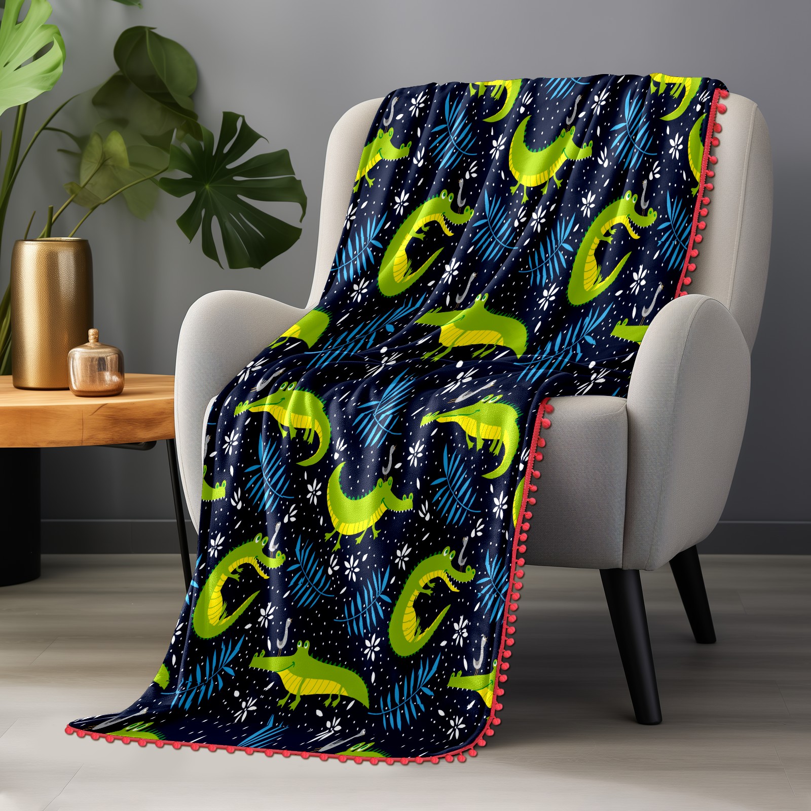 流苏毛毯 Dinosaur Lizard Green Leaves
