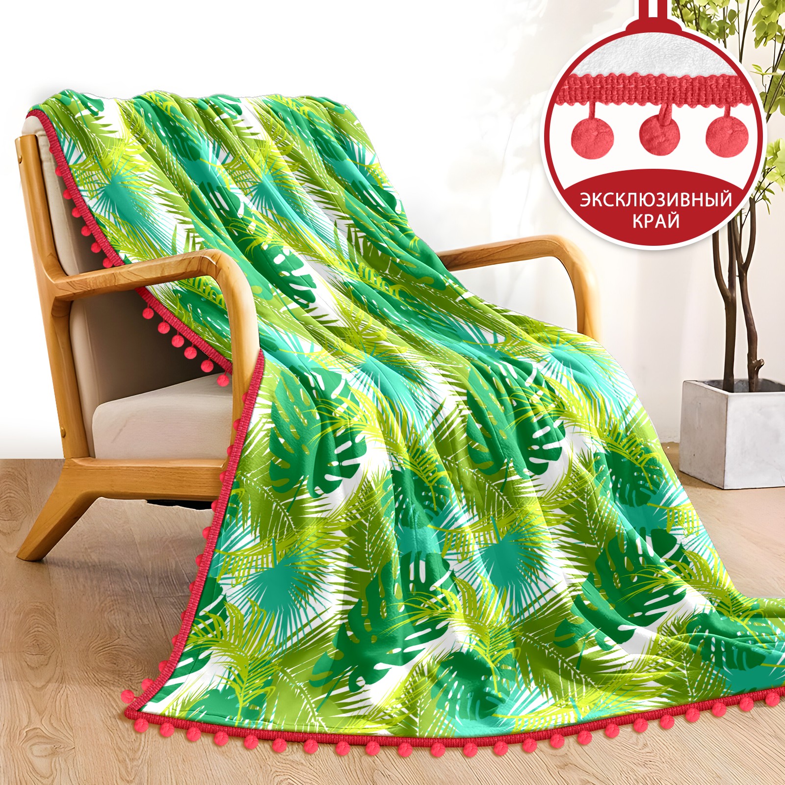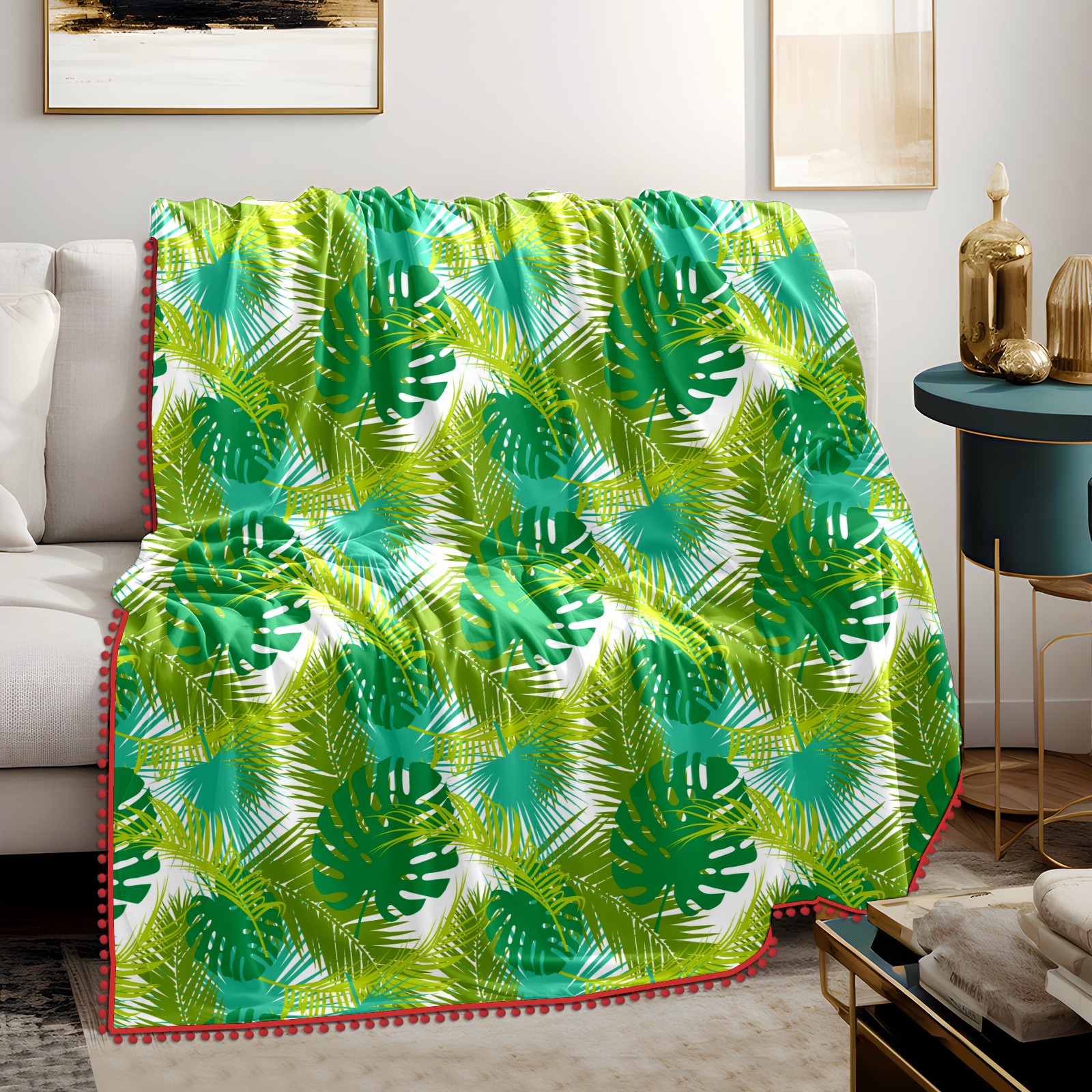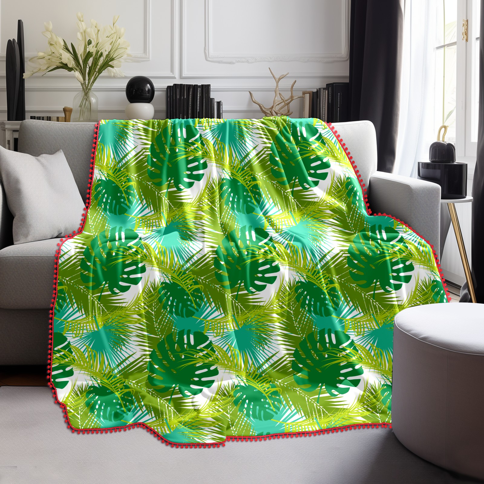 流苏毛毯 Aloha Green Palm Leaves Pattern