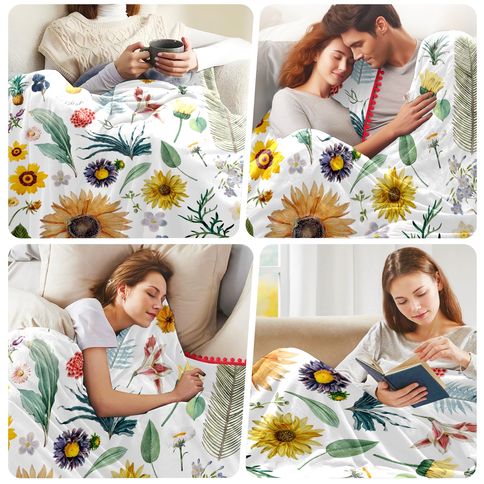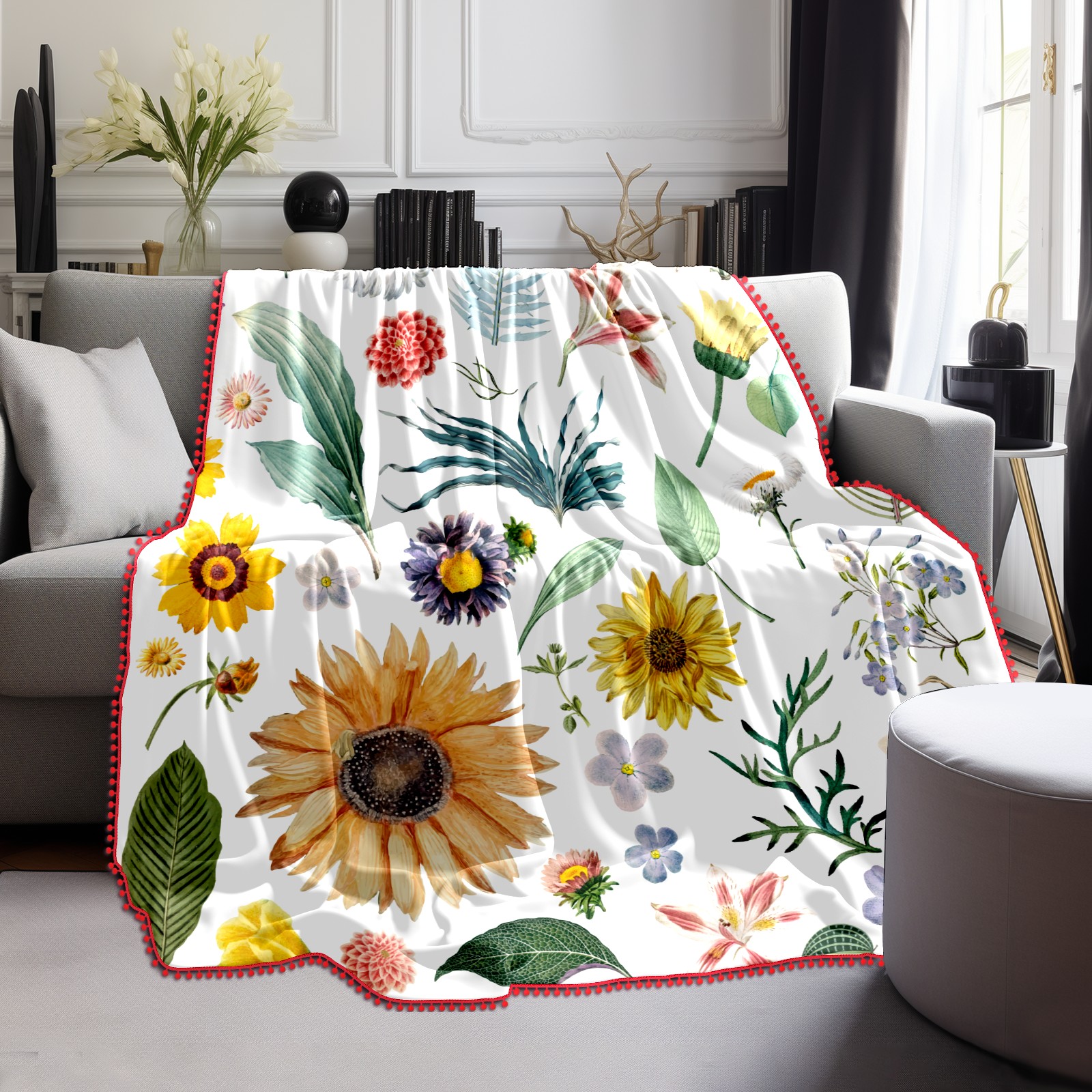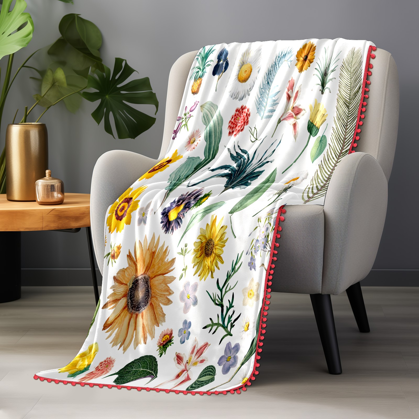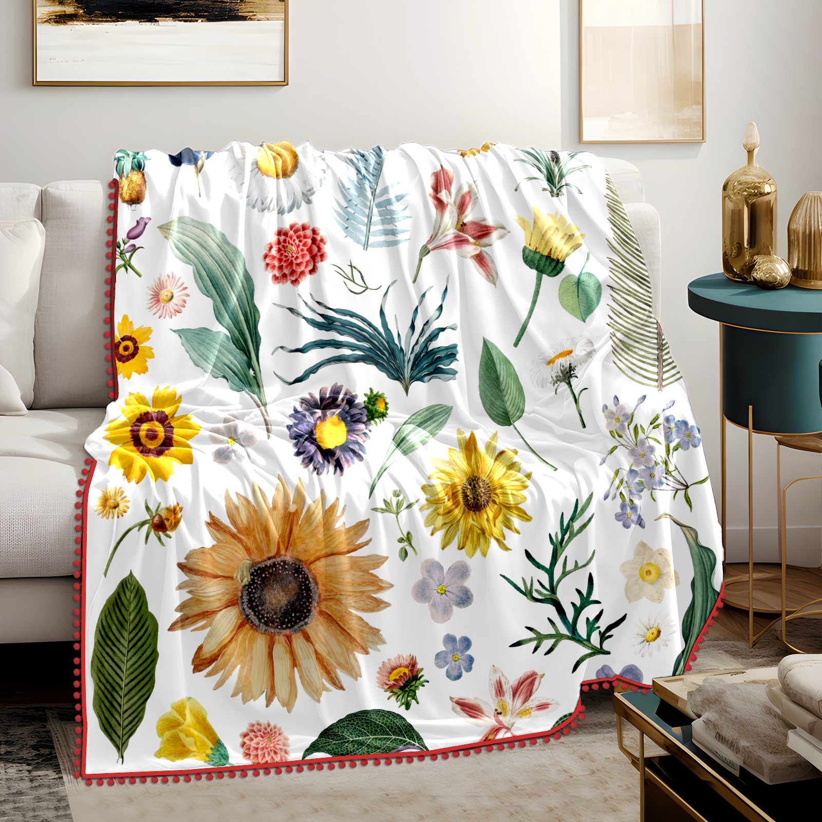 流苏毛毯 Summer Sunflowers Leaves