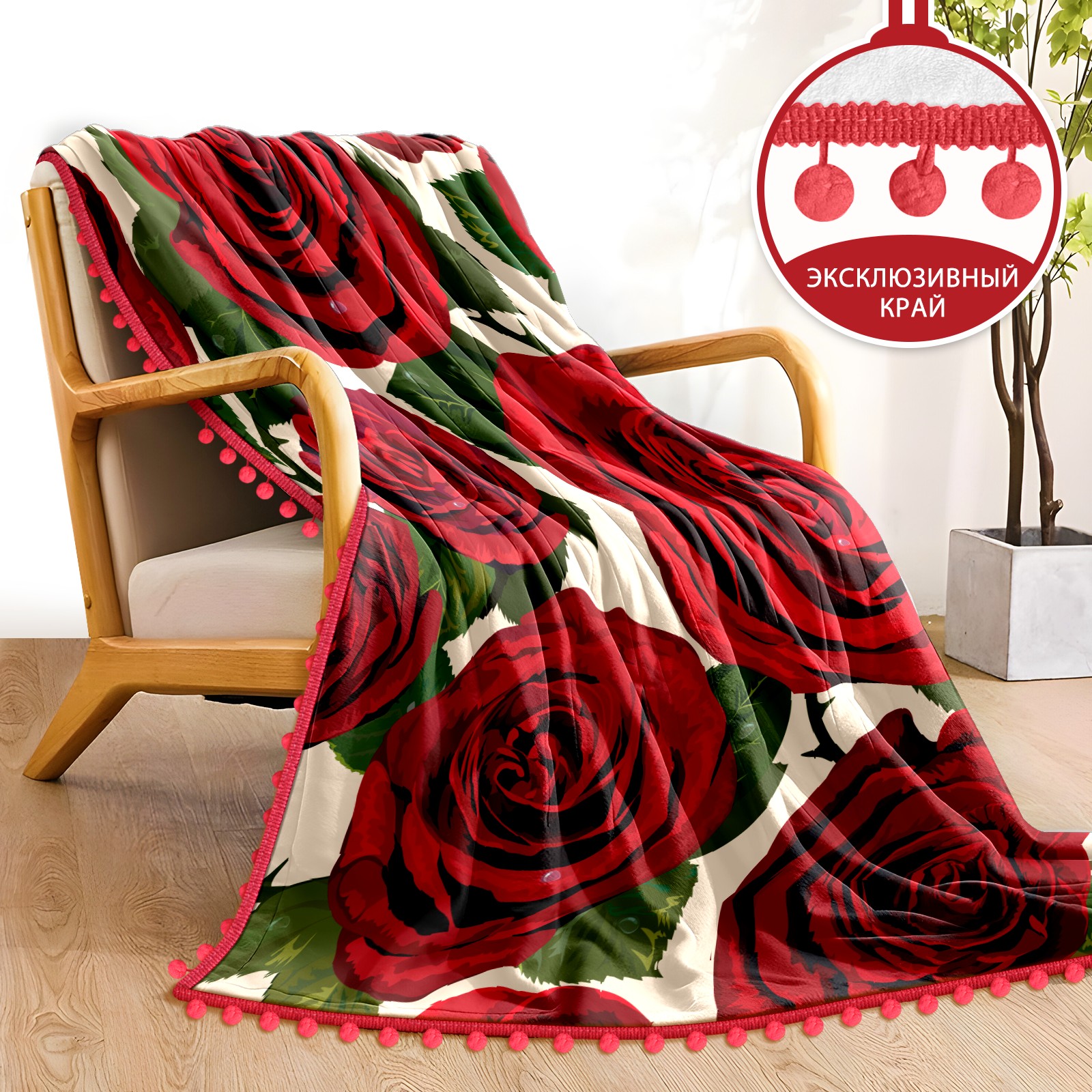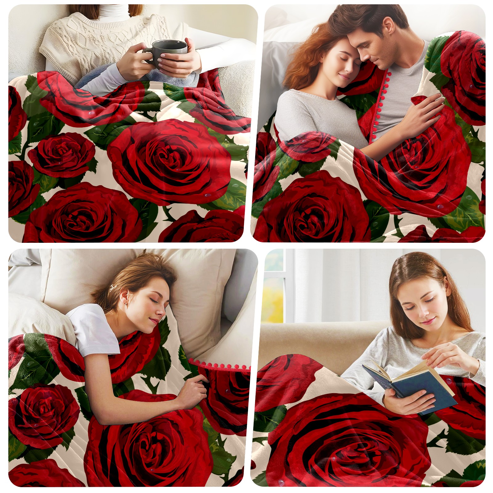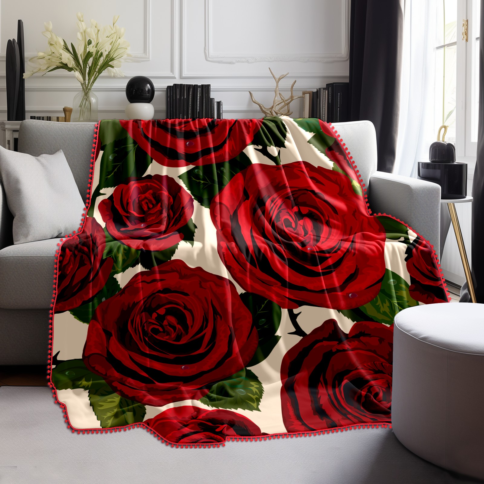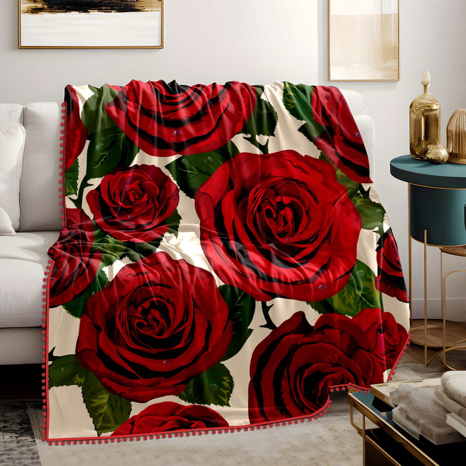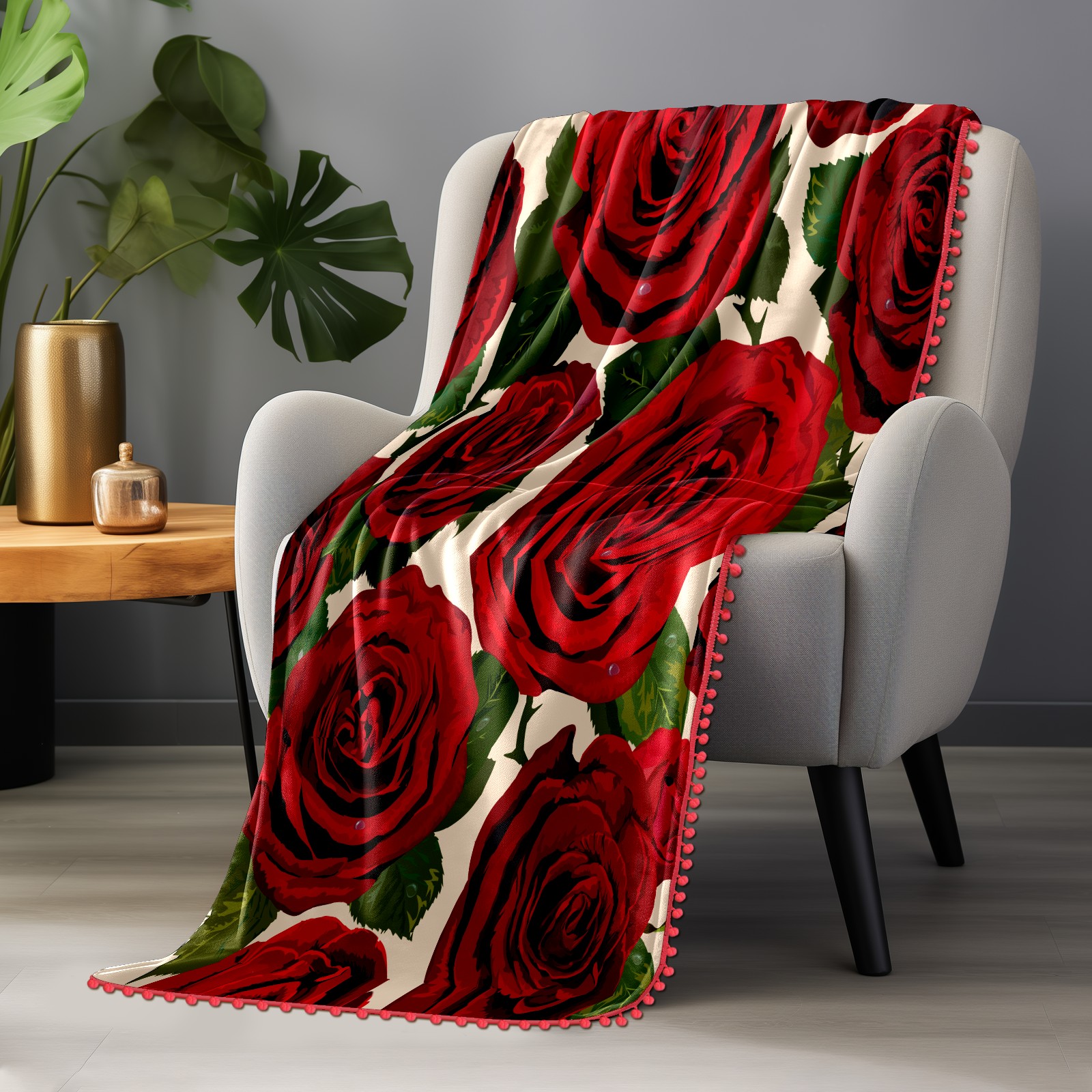 流苏毛毯 Beautiful Red Roses With Green Leaves Pattern
