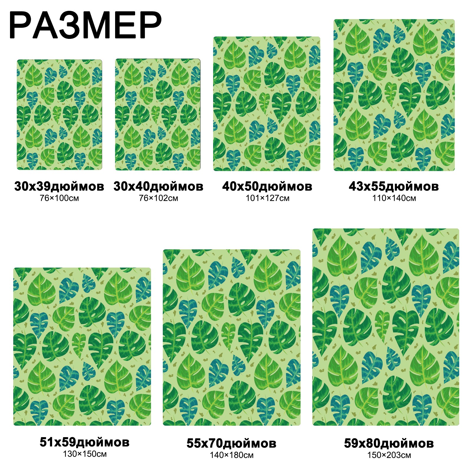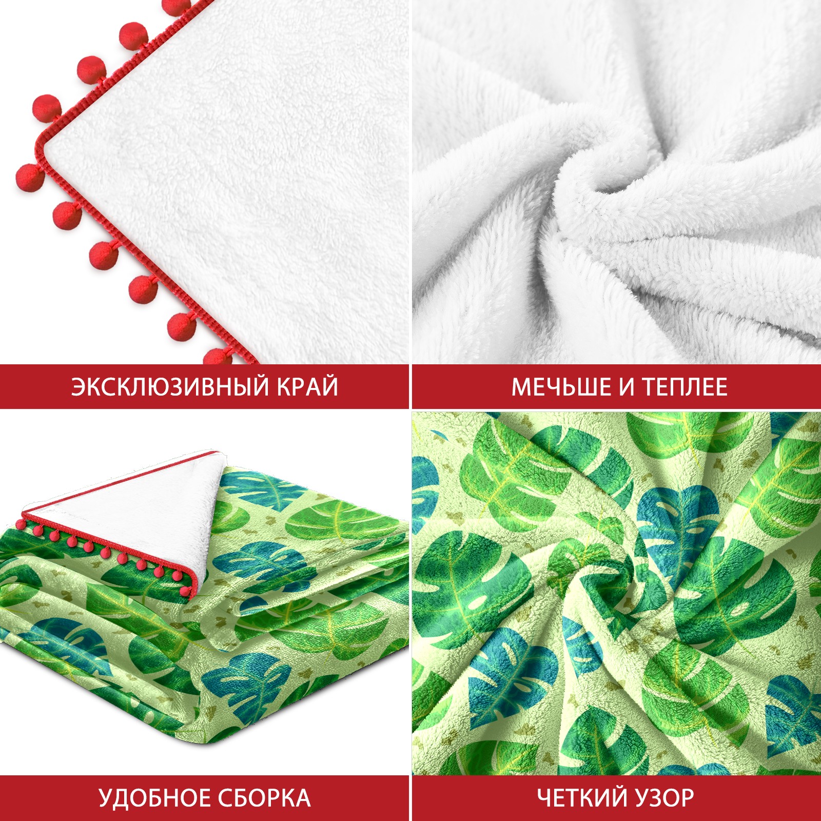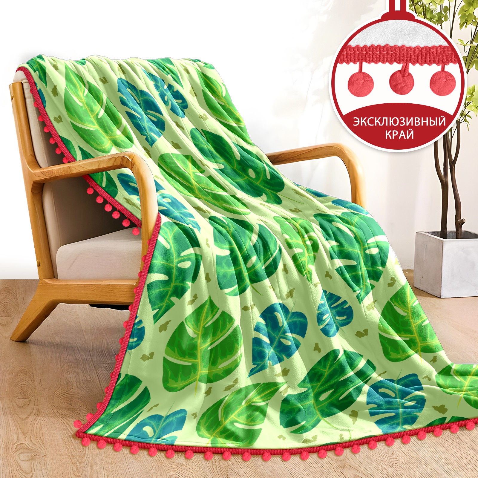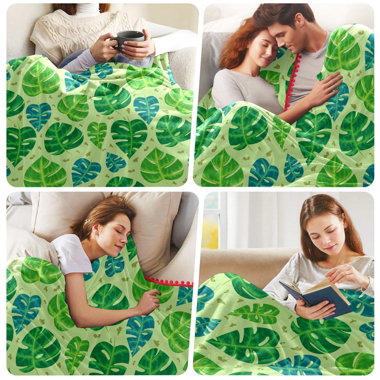 流苏毛毯 Green Blue Monstera Leaves Pattern