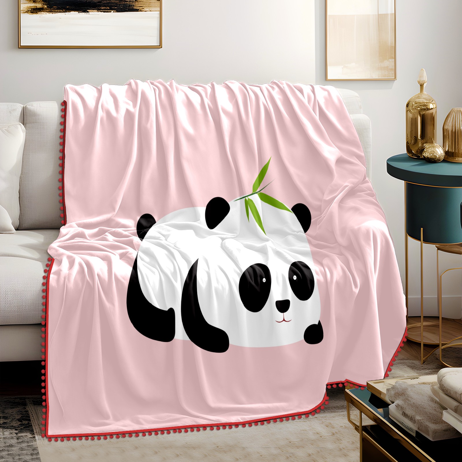 流苏毛毯 Cartoon Panda Head Bamboo Leaves
