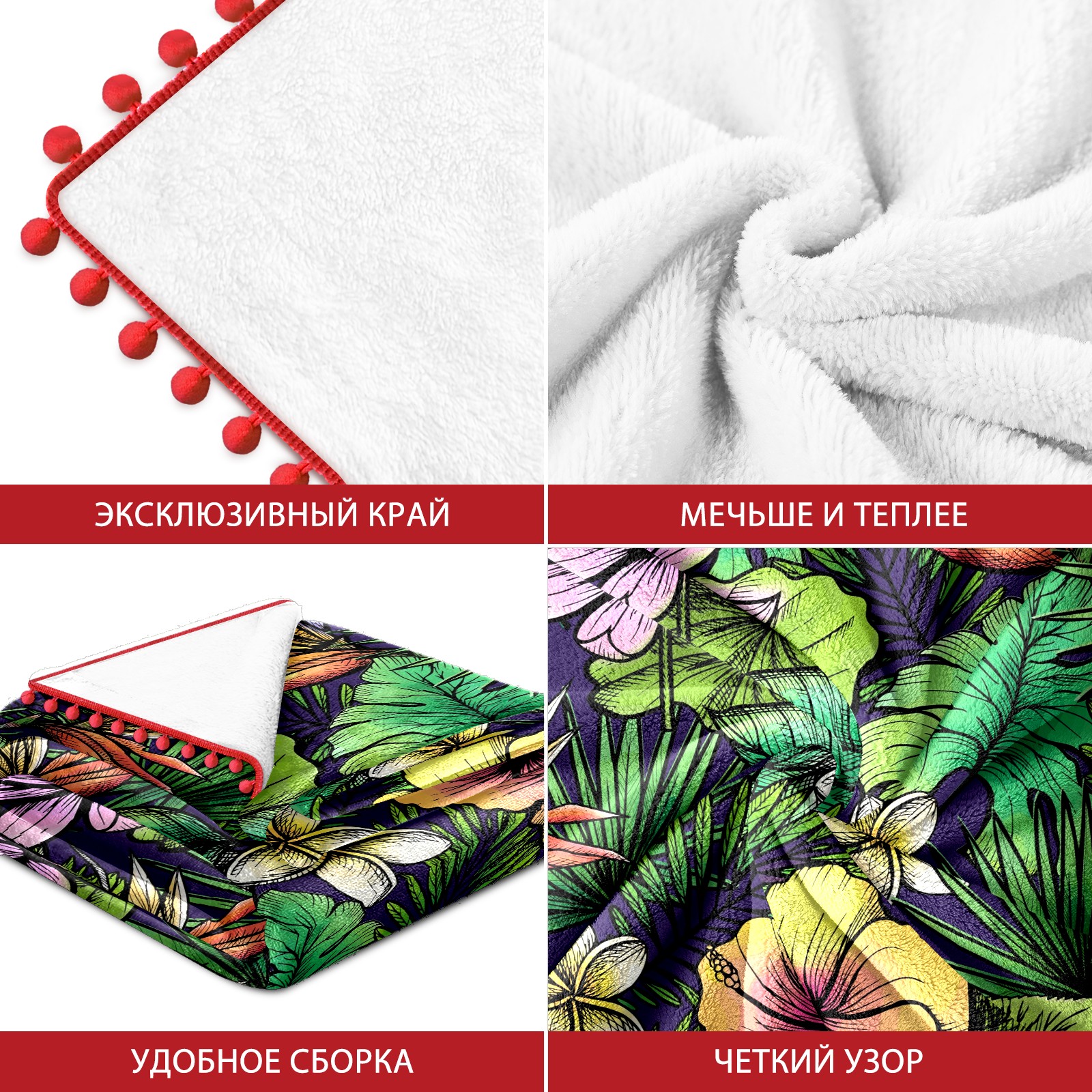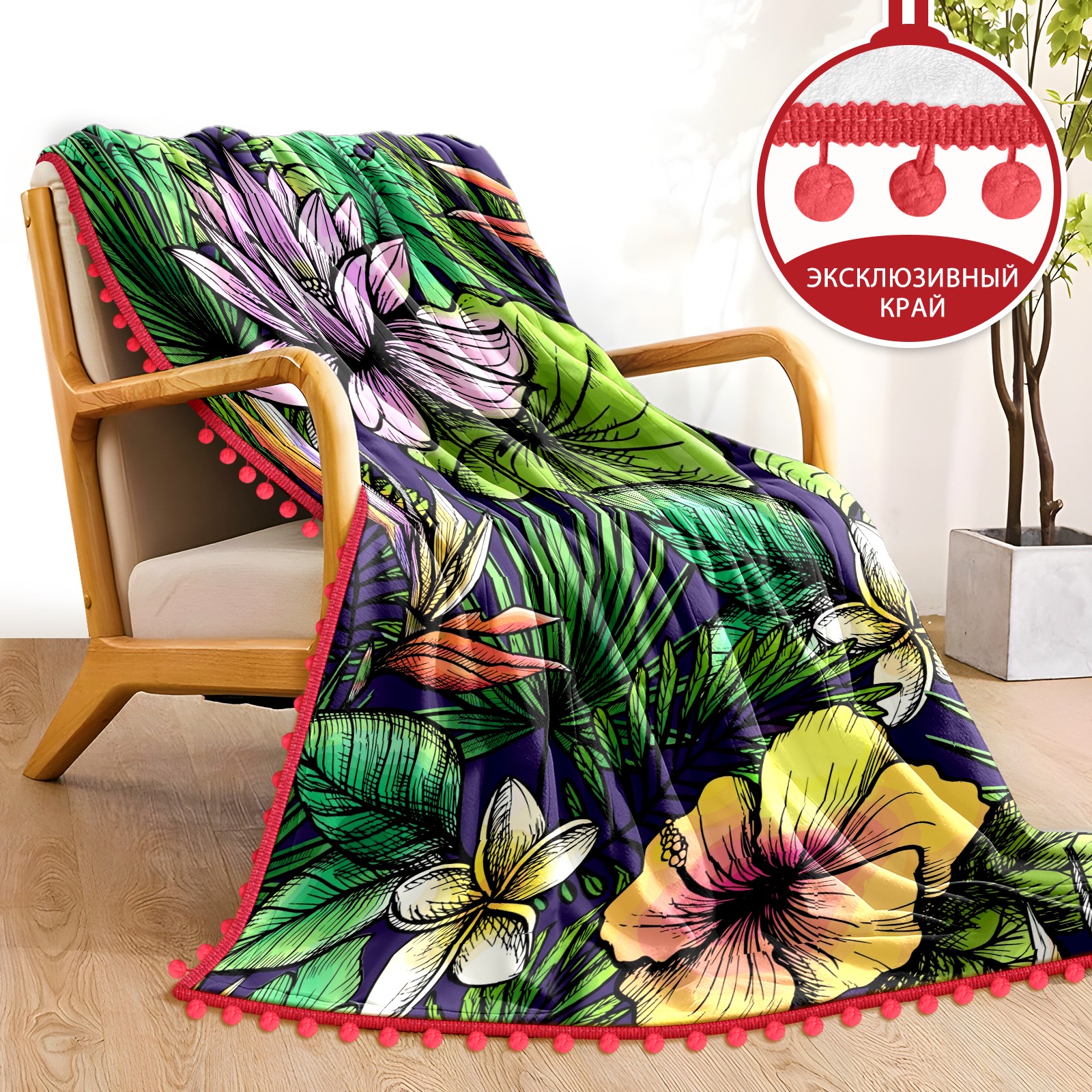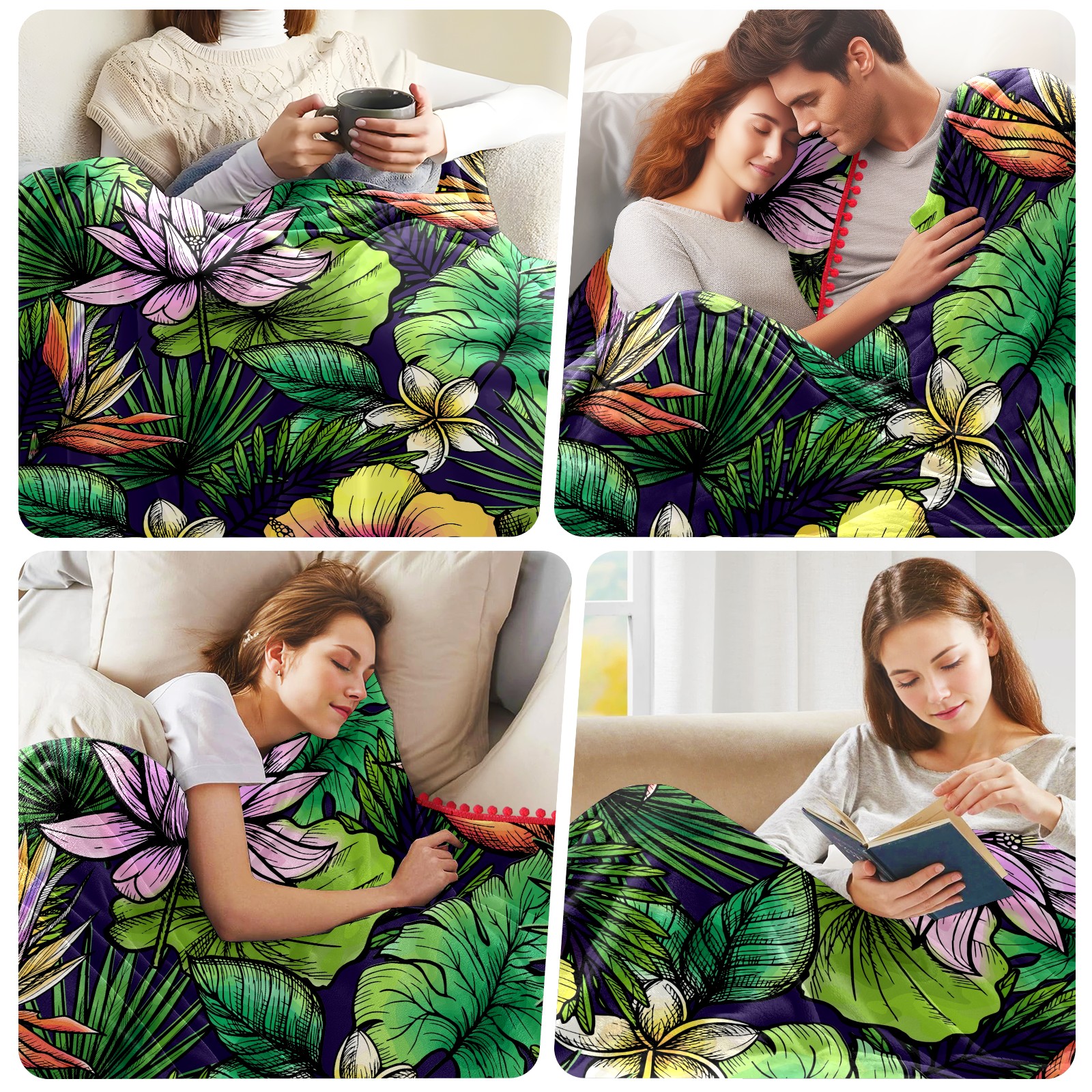 流苏毛毯 Tropical Palm Leaves Floral Lotus