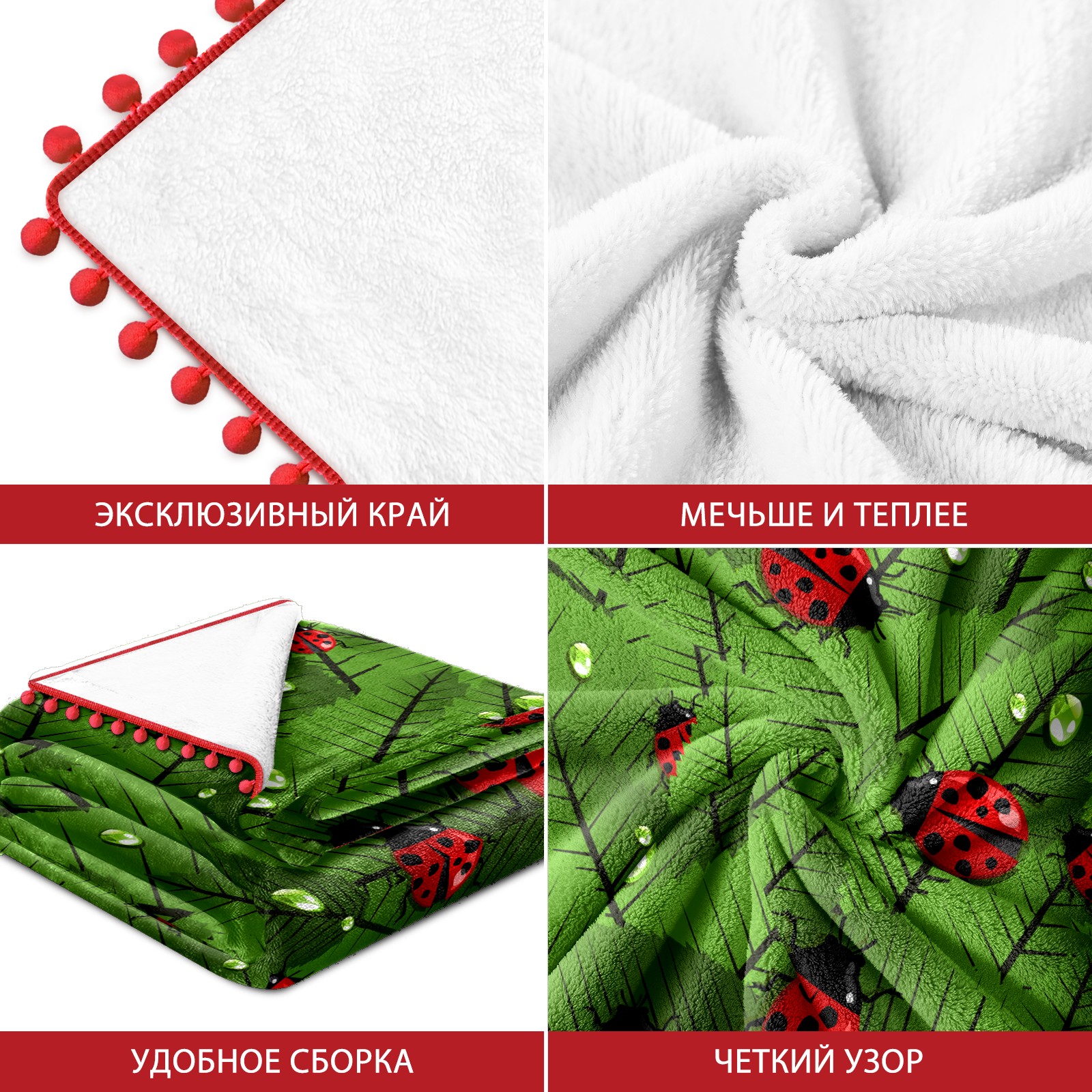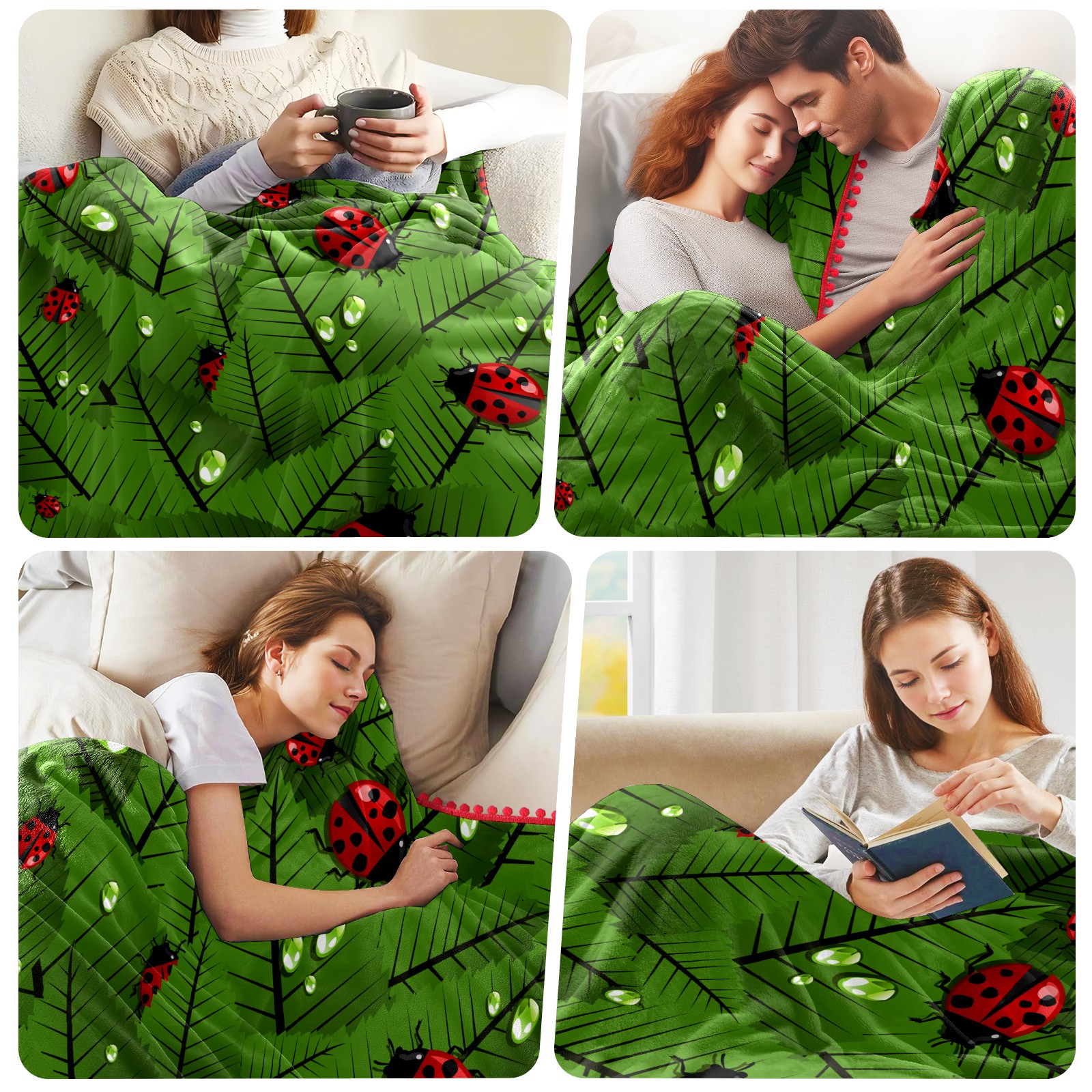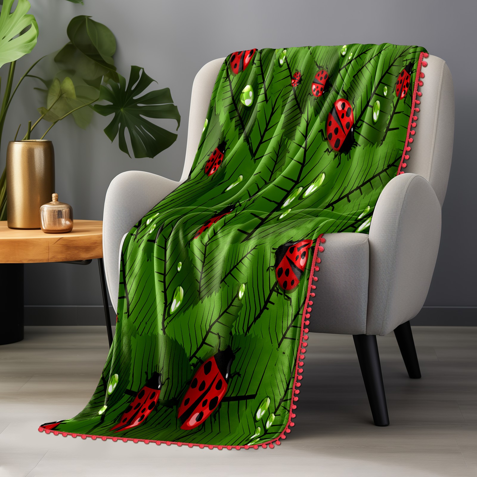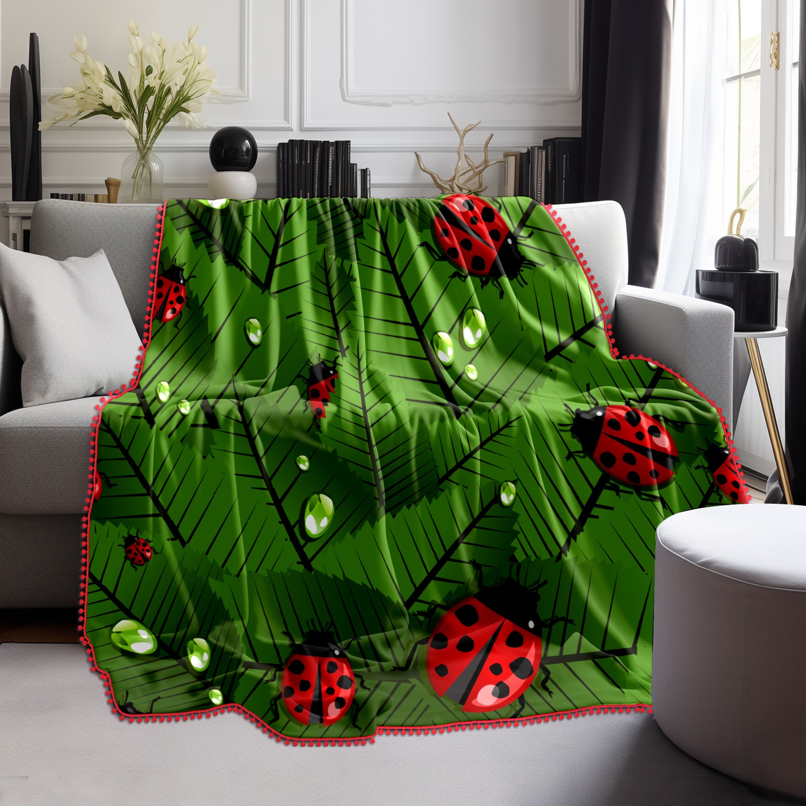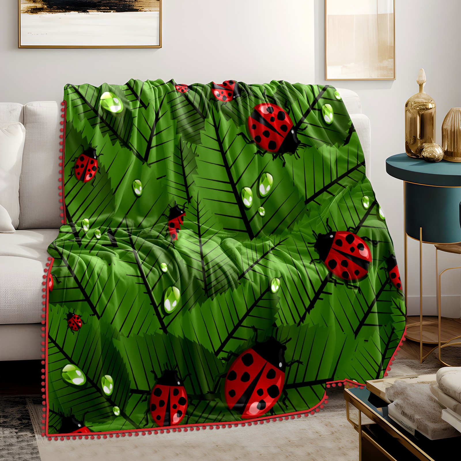 流苏毛毯 Insects Ladybug Ladybirds In The Jungle Leaves
