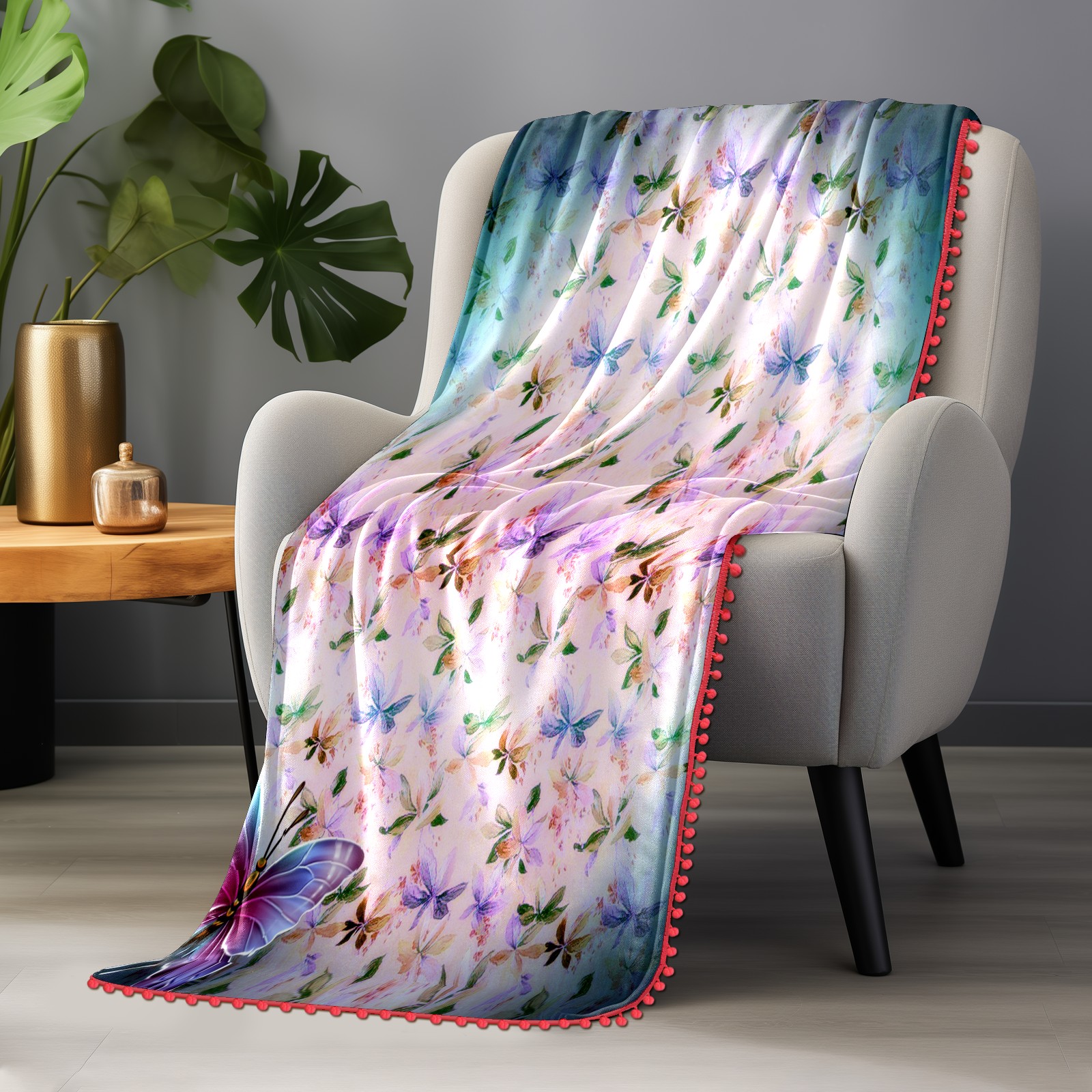 流苏毛毯 Purple Butterfly Plant Leaves Retro