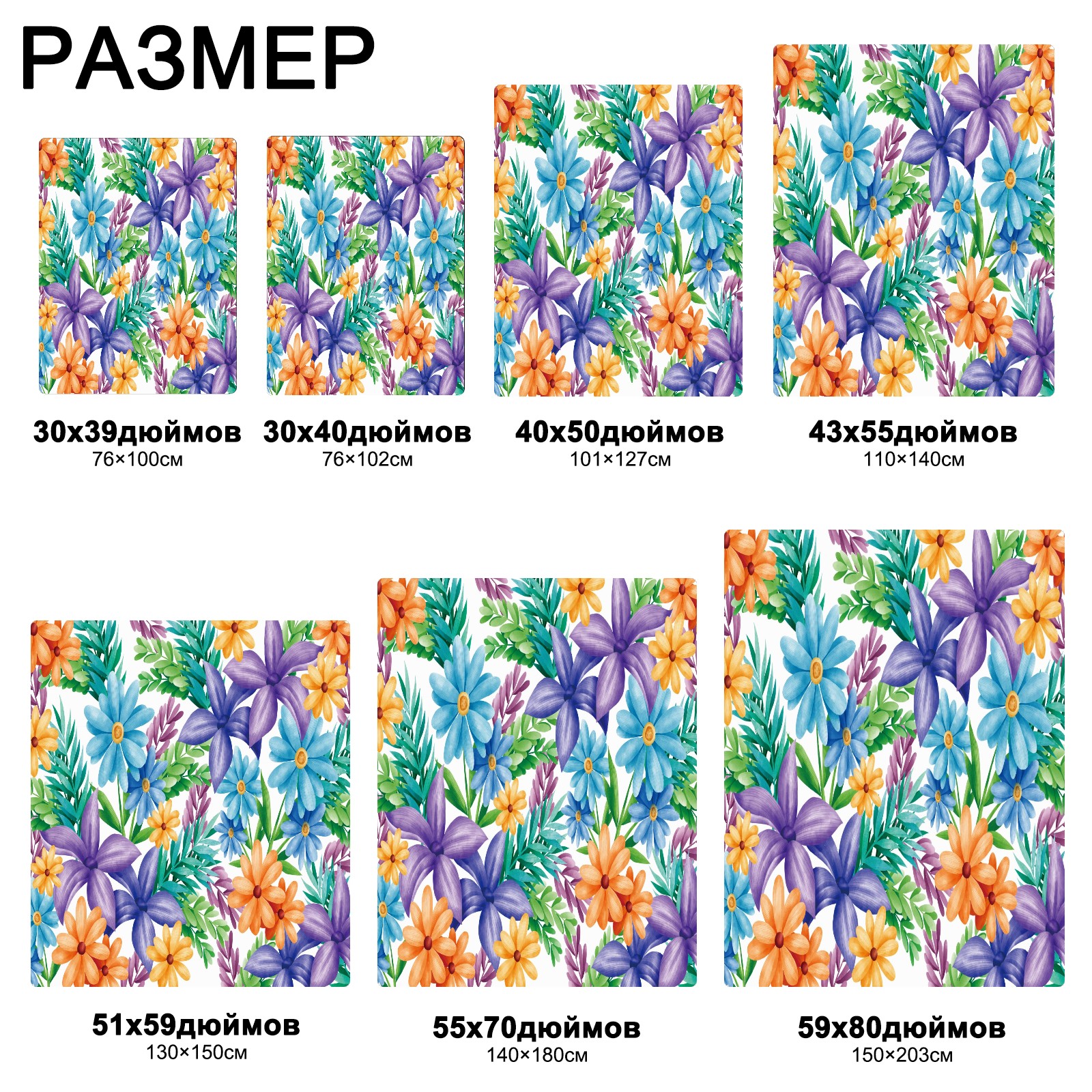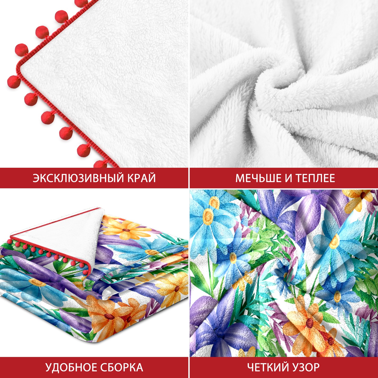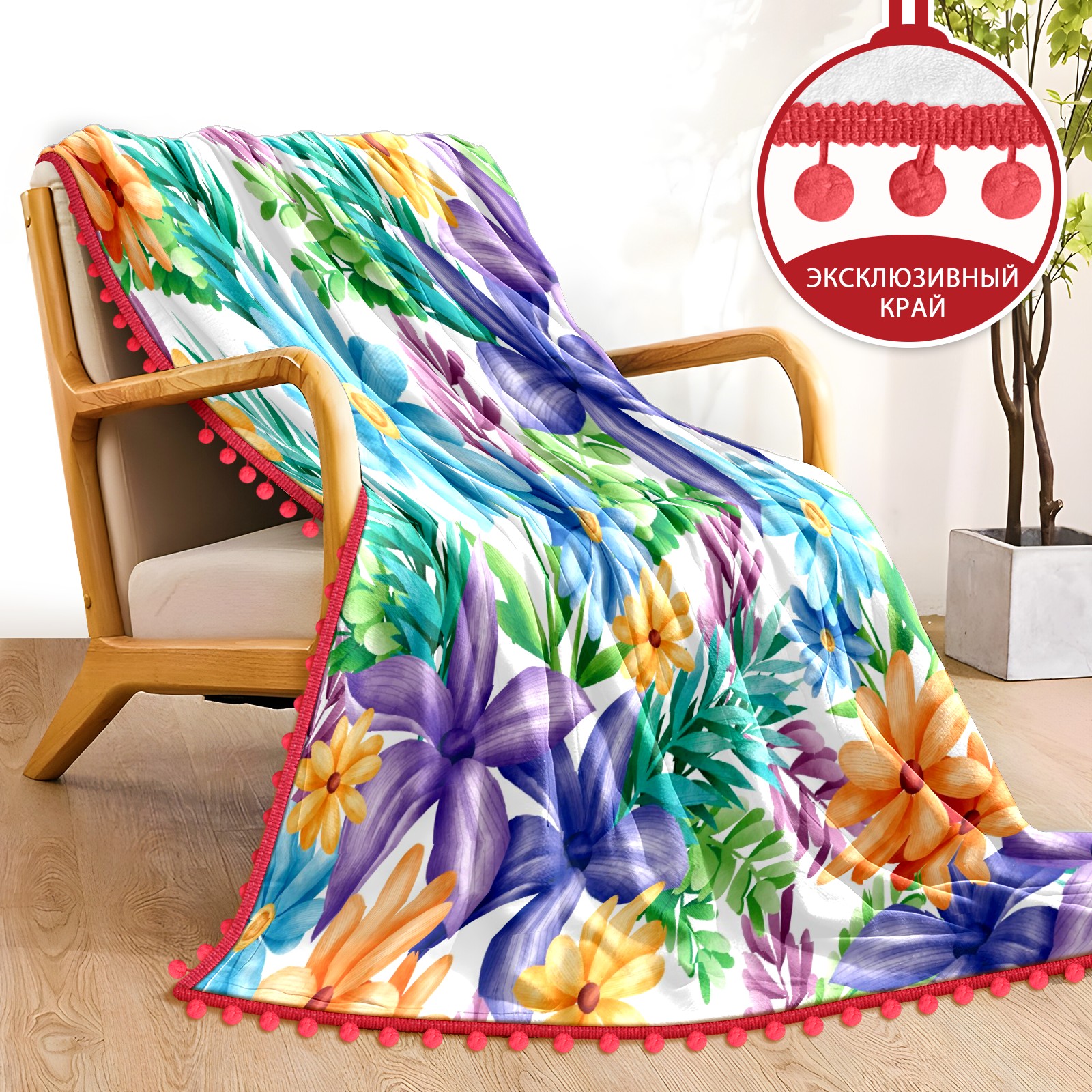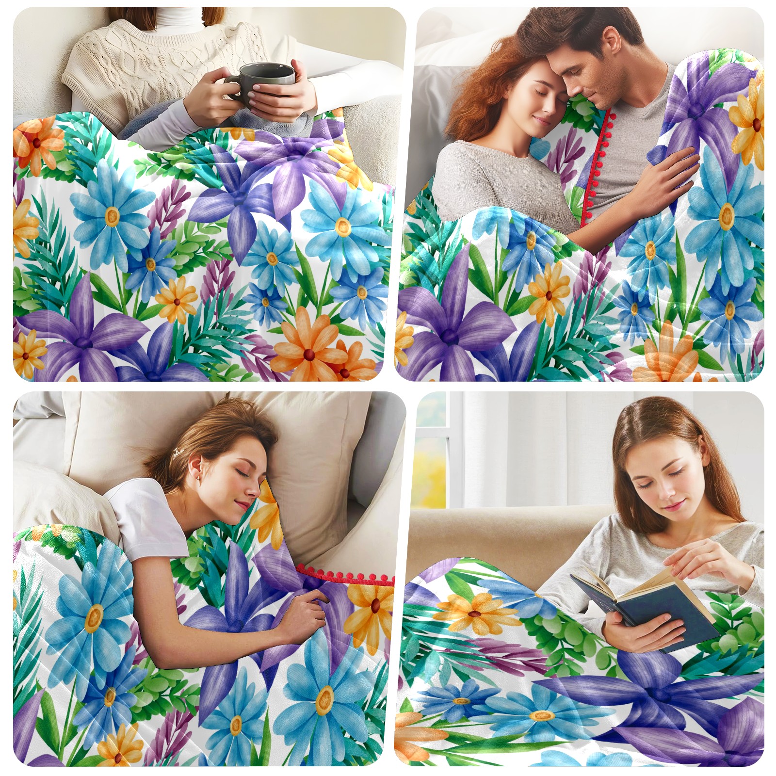流苏毛毯 Blue Yellow Purple Florals Green Leaves