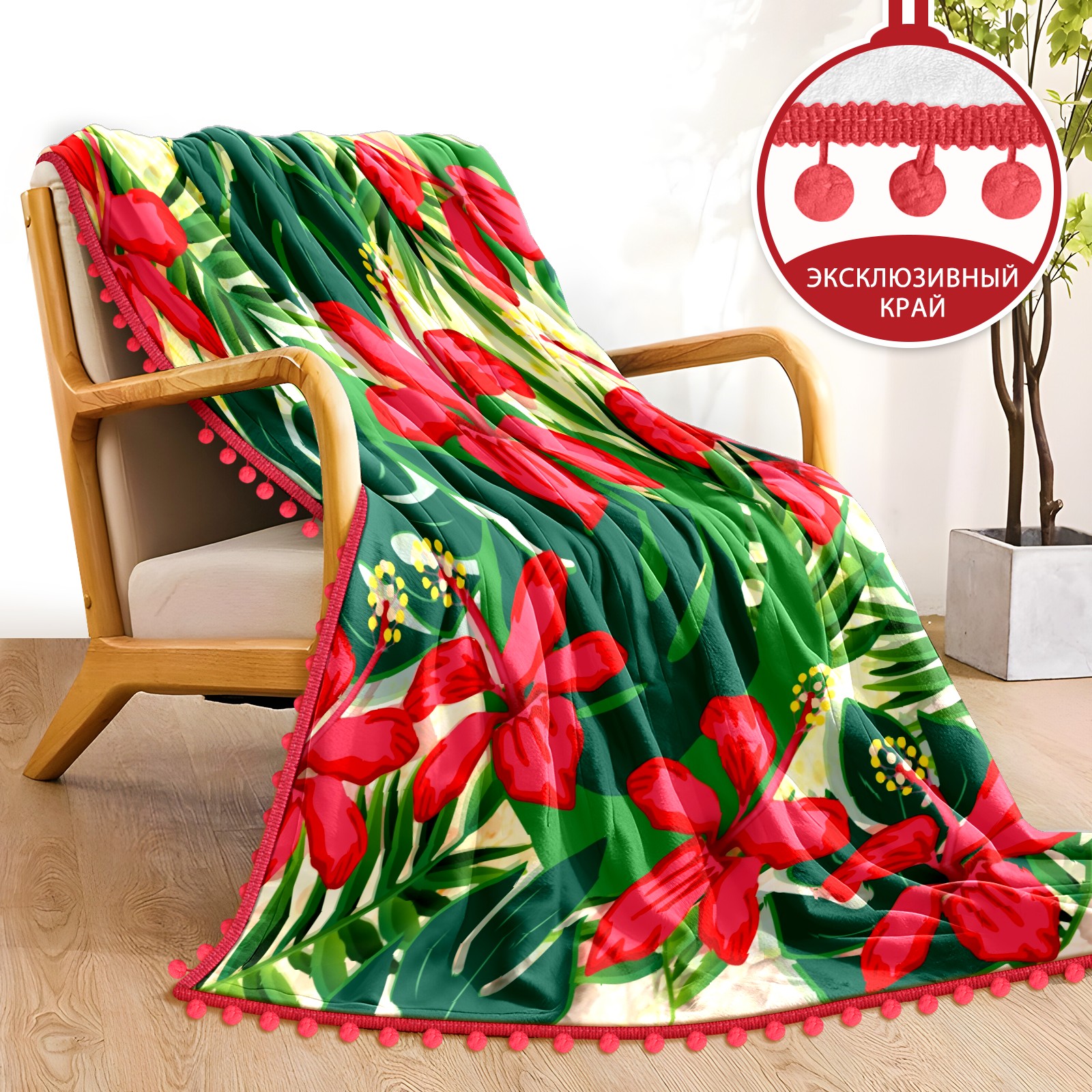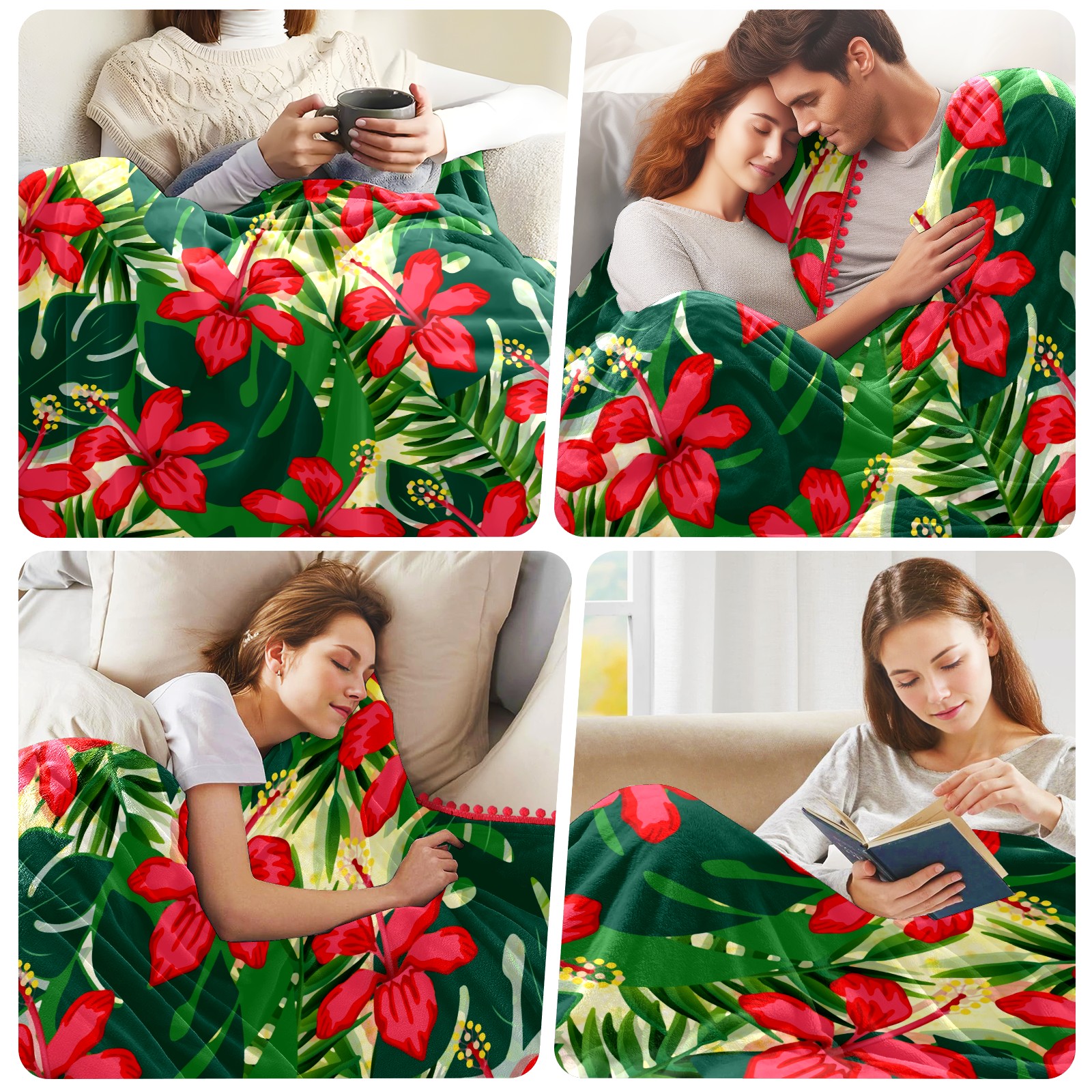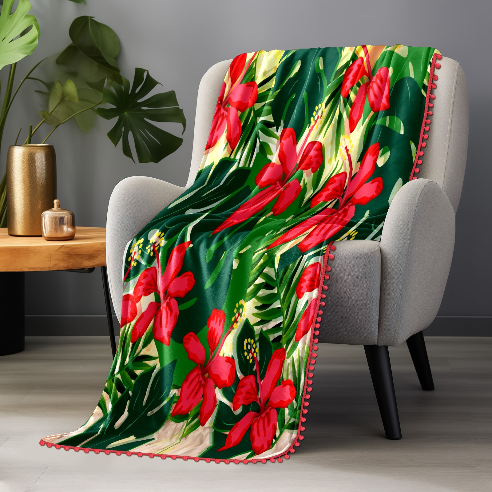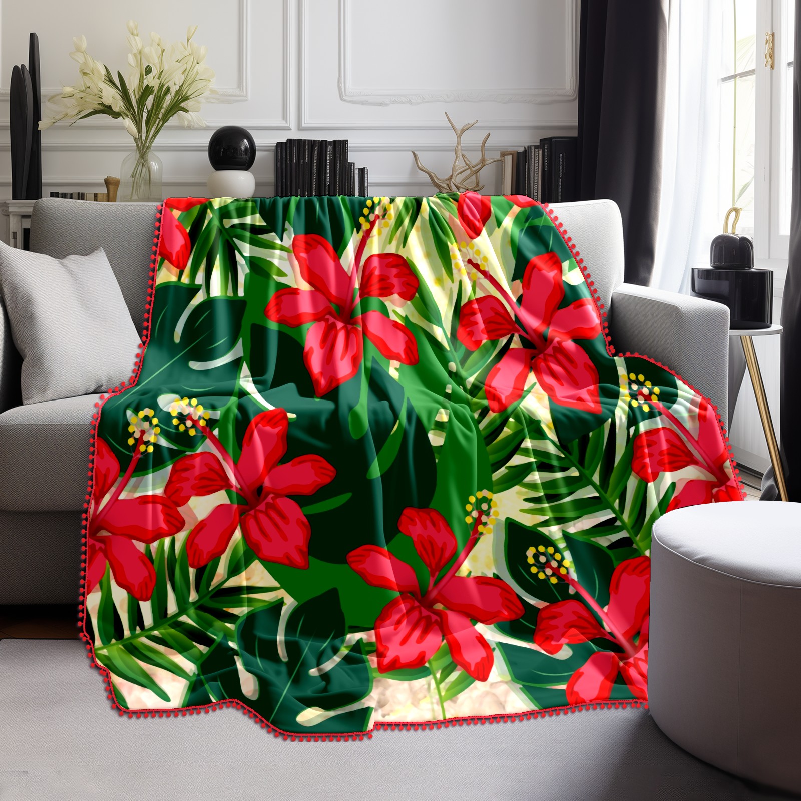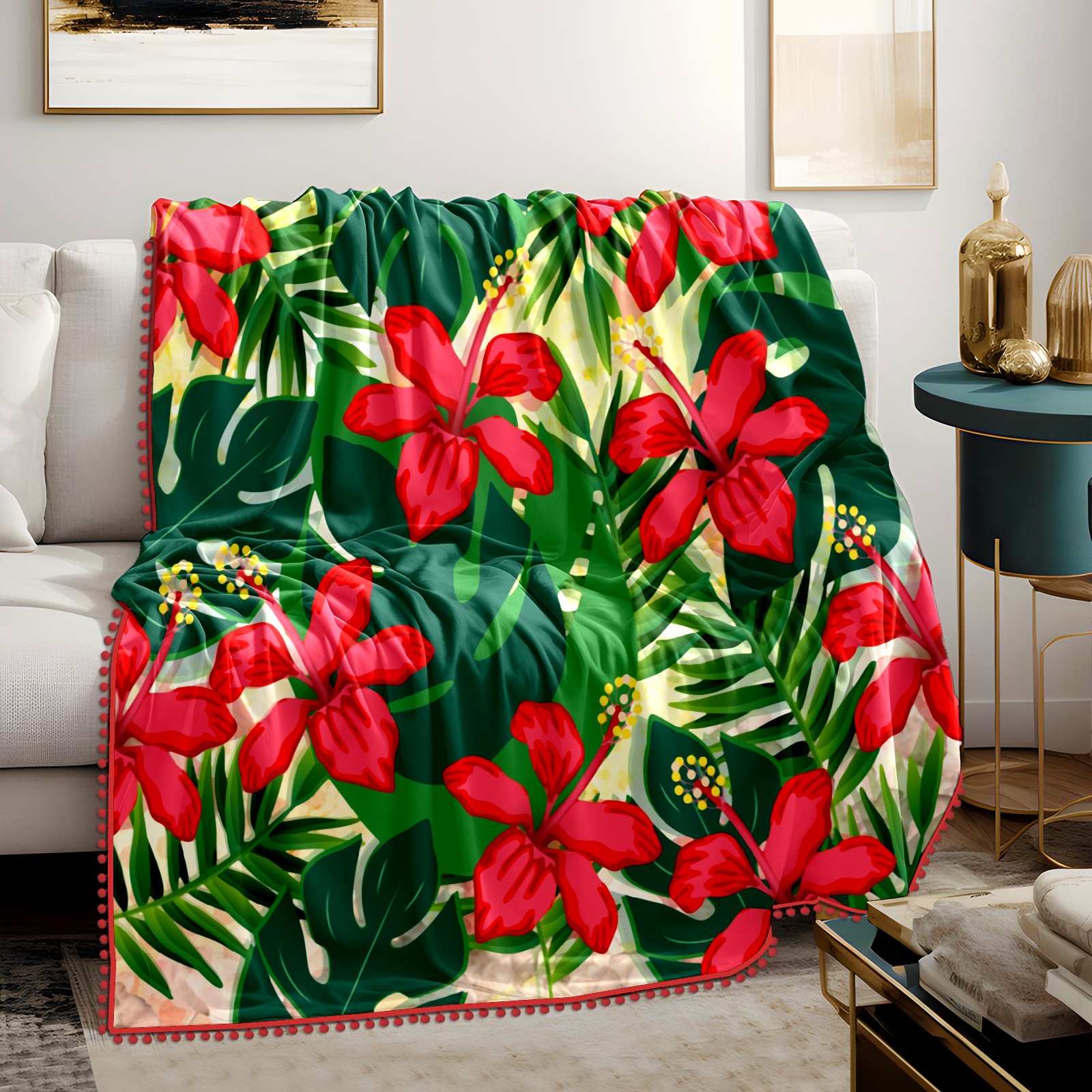 流苏毛毯 China Rose Flower Red Tropical Leaves