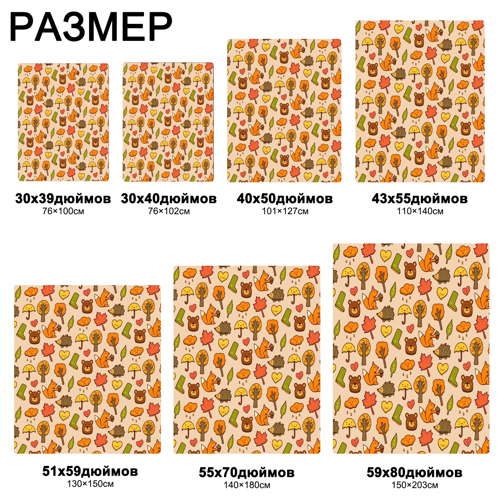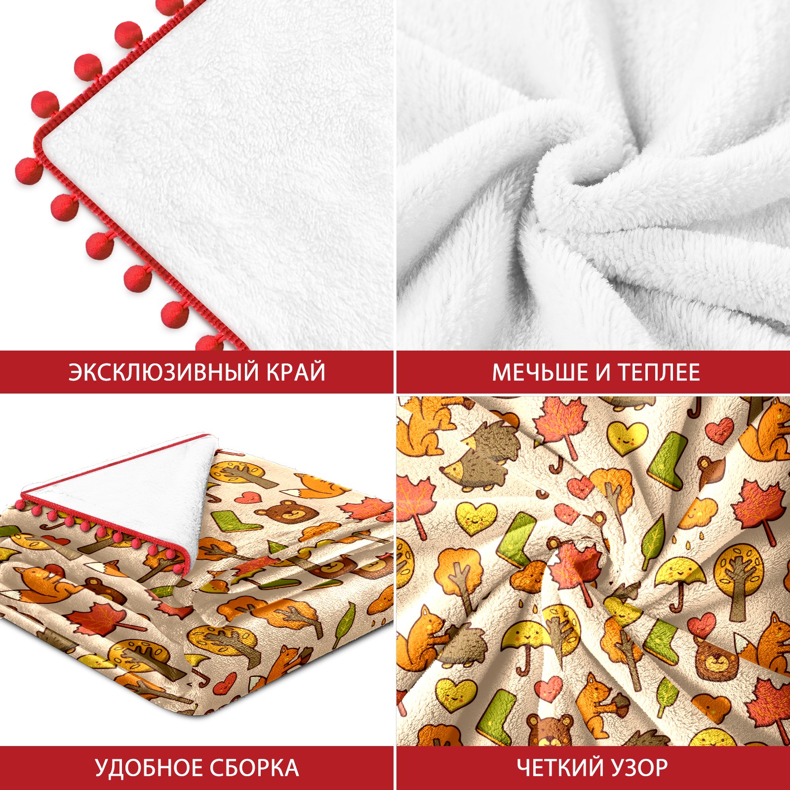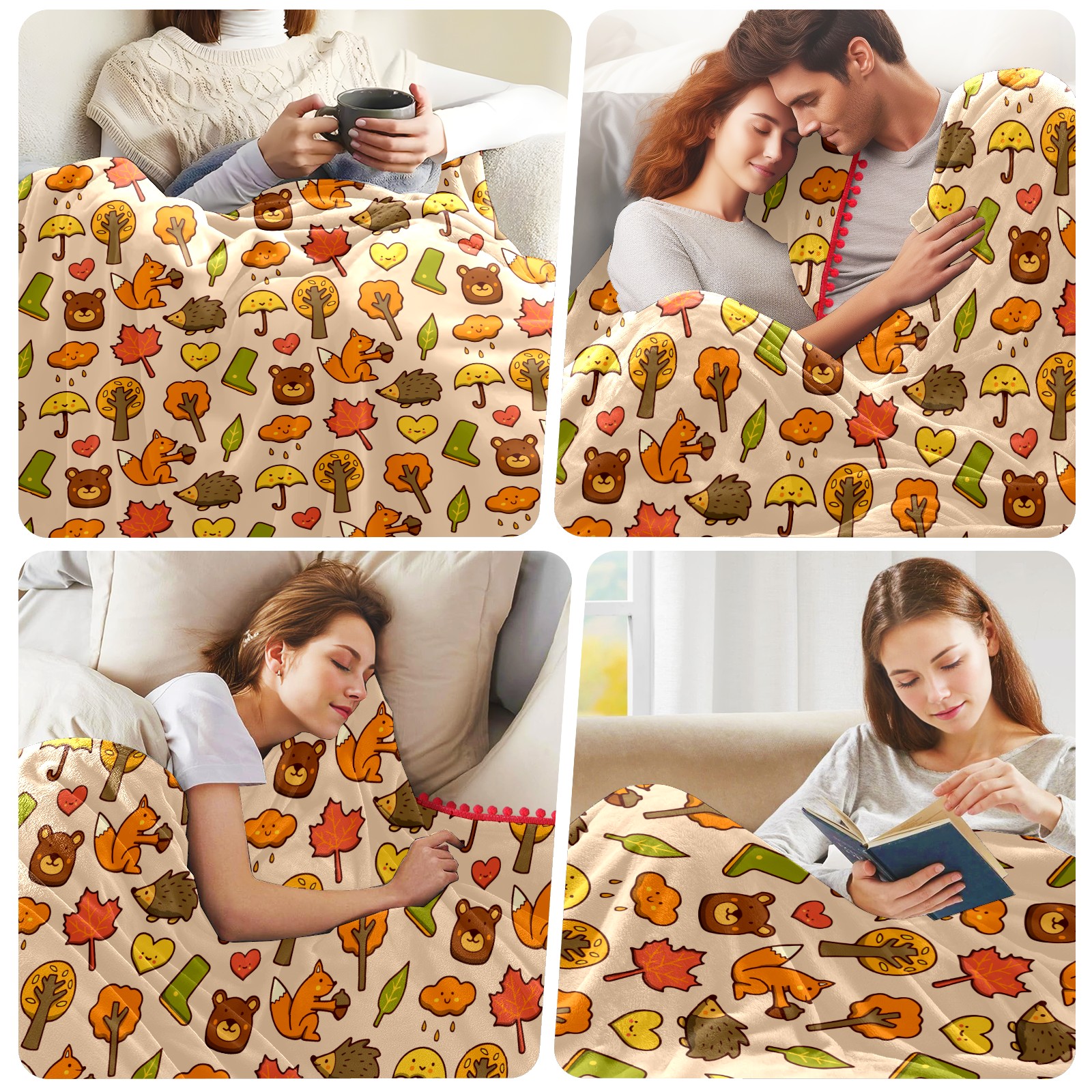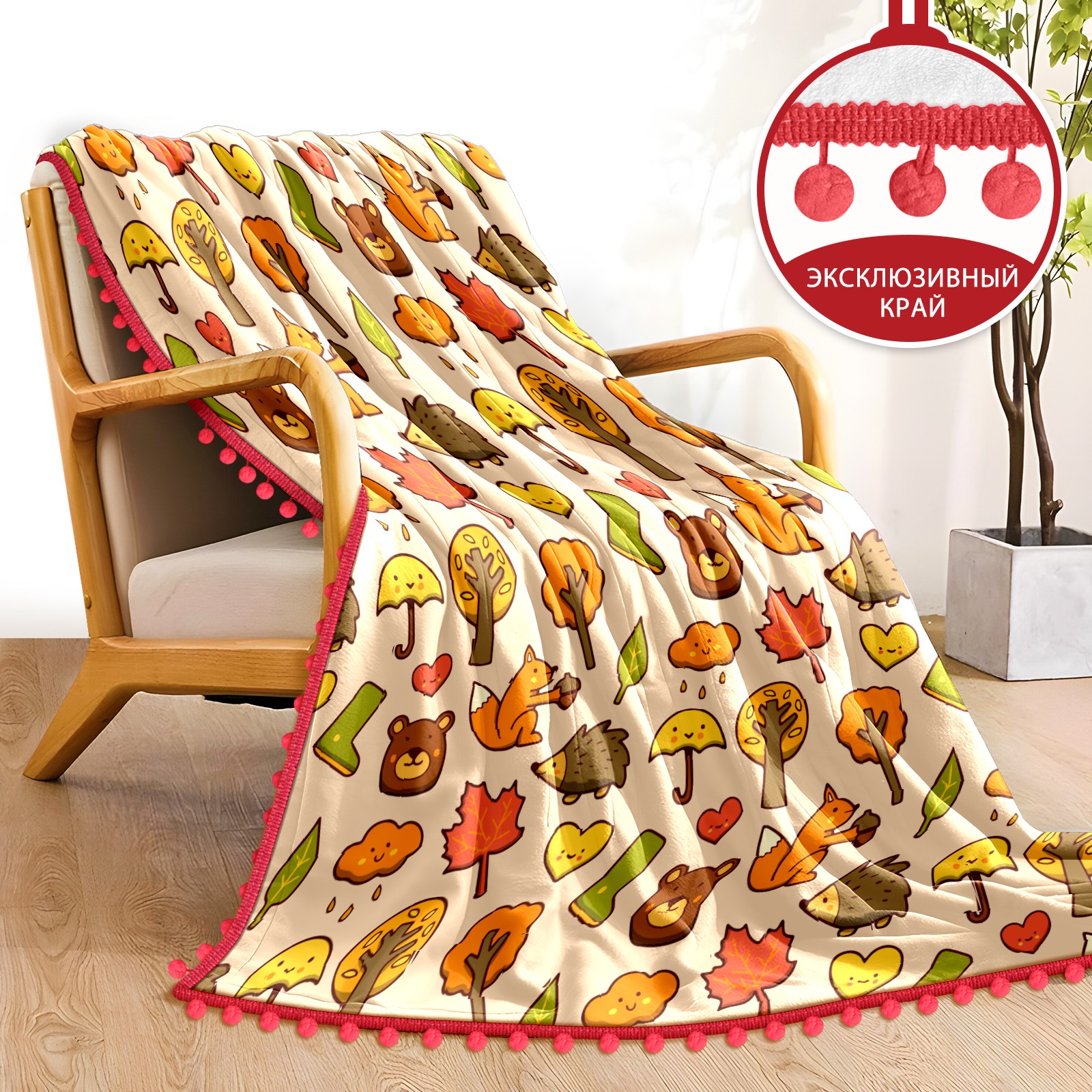 流苏毛毯 Autumn Hedgehog Fox Leaves Rainy Tree Doodle Pattern