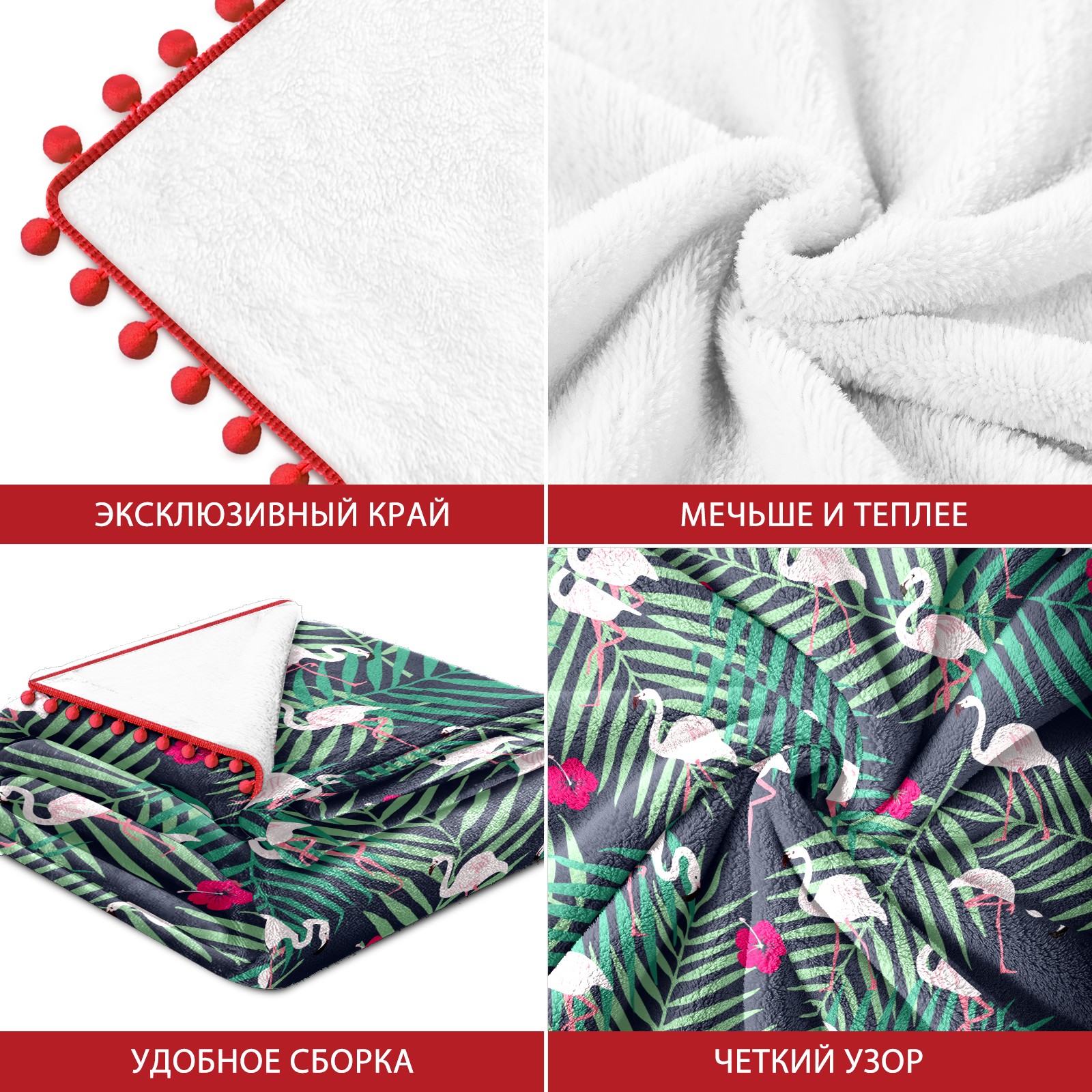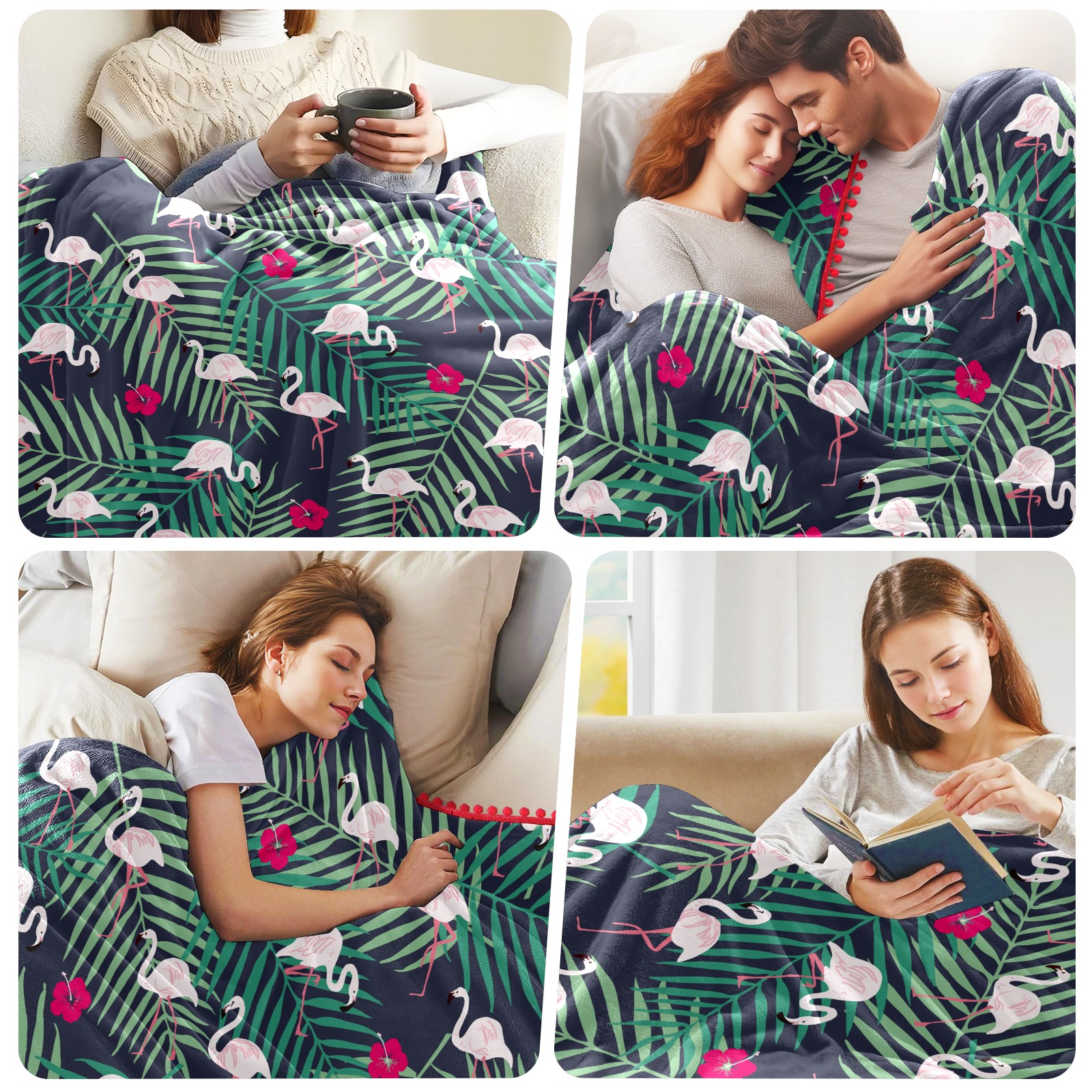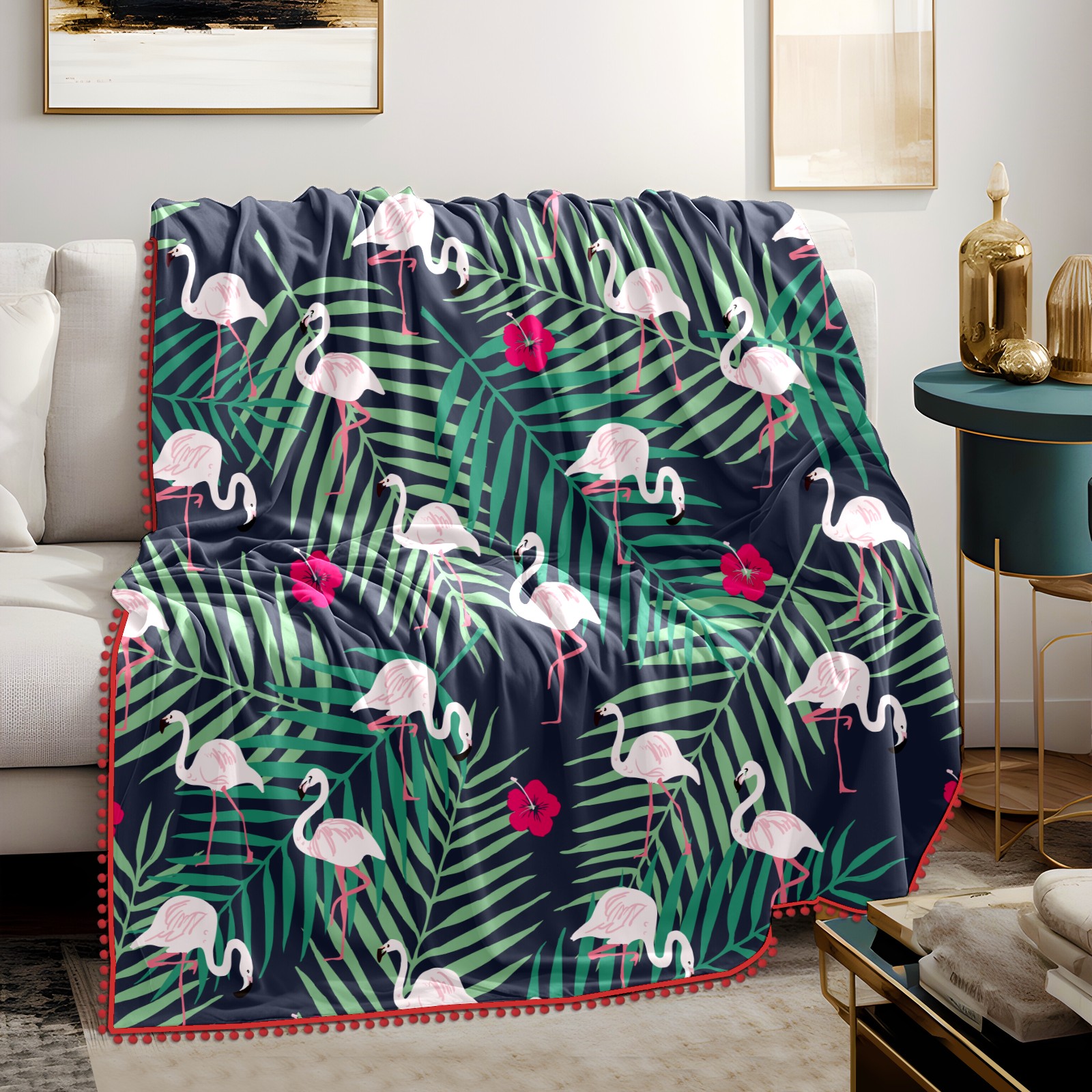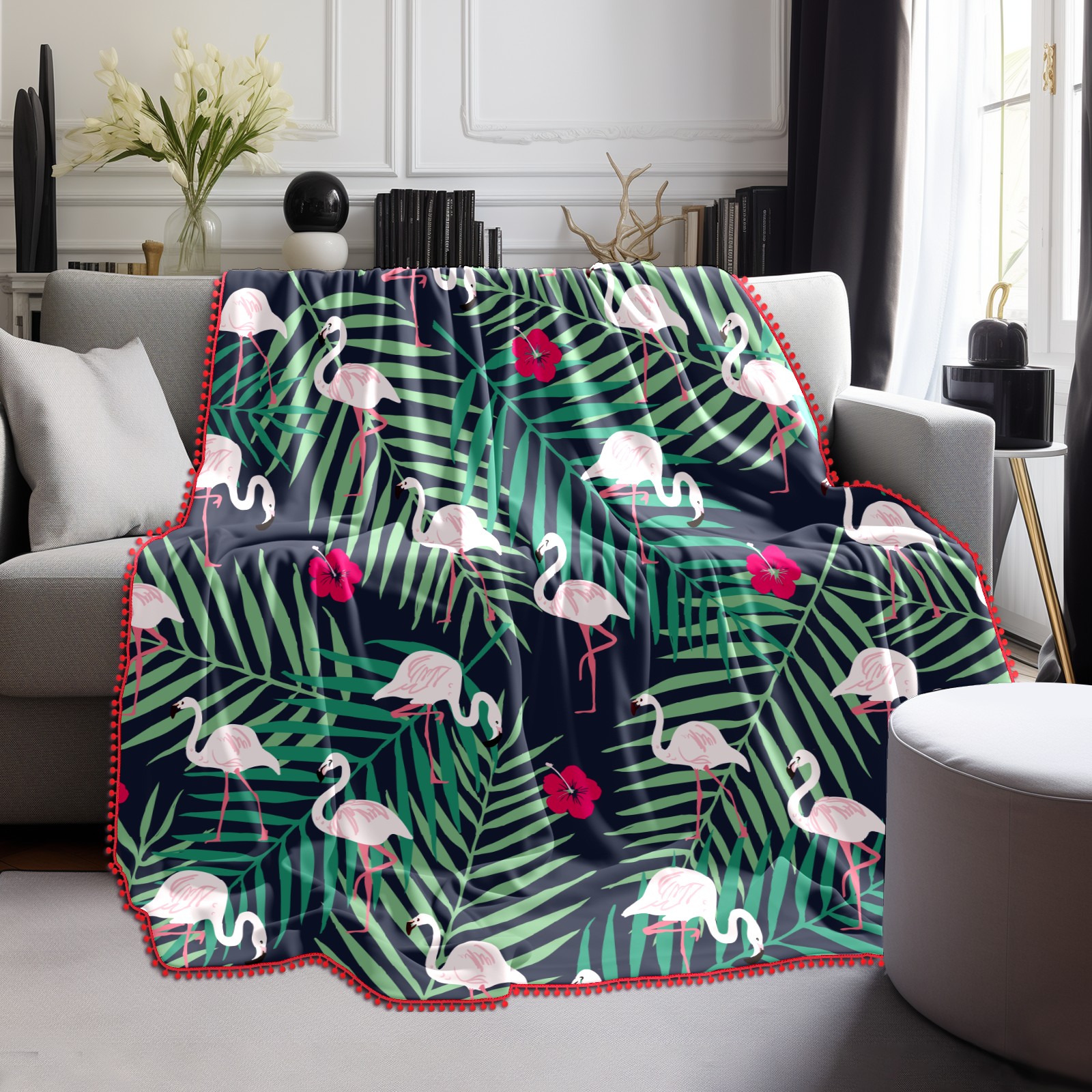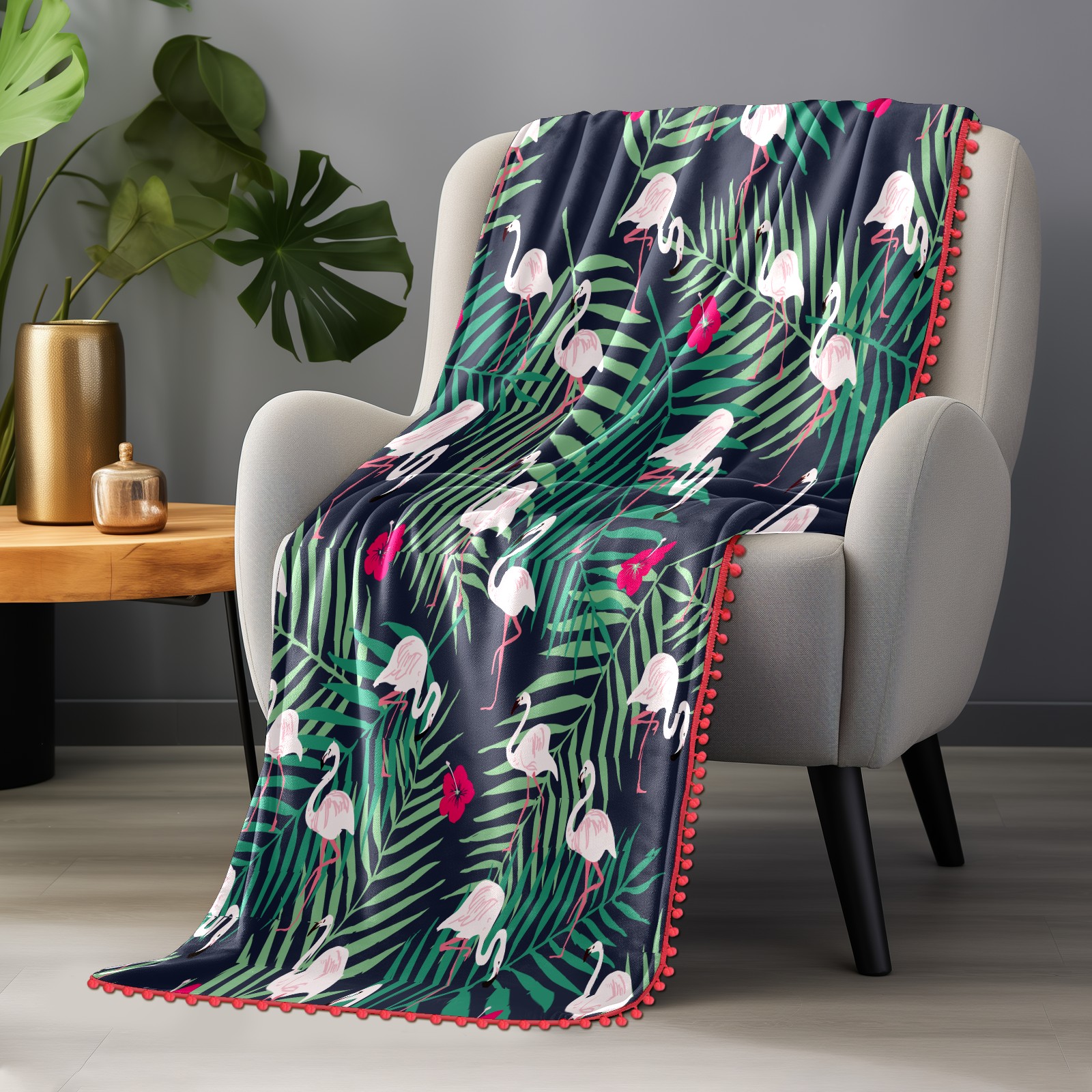 流苏毛毯 Flamingo Palm Leaves Pattern