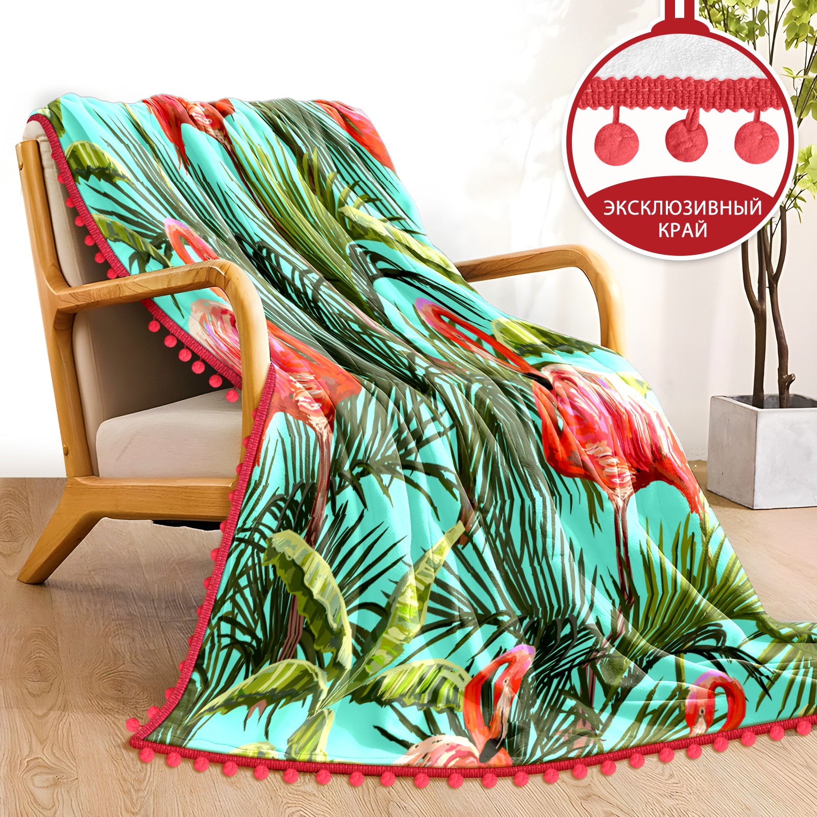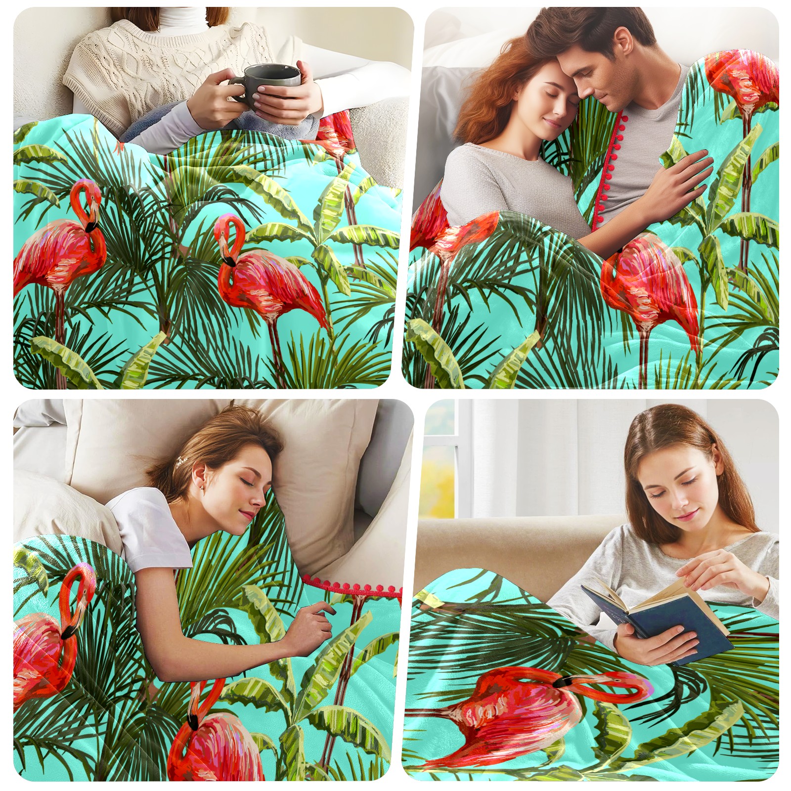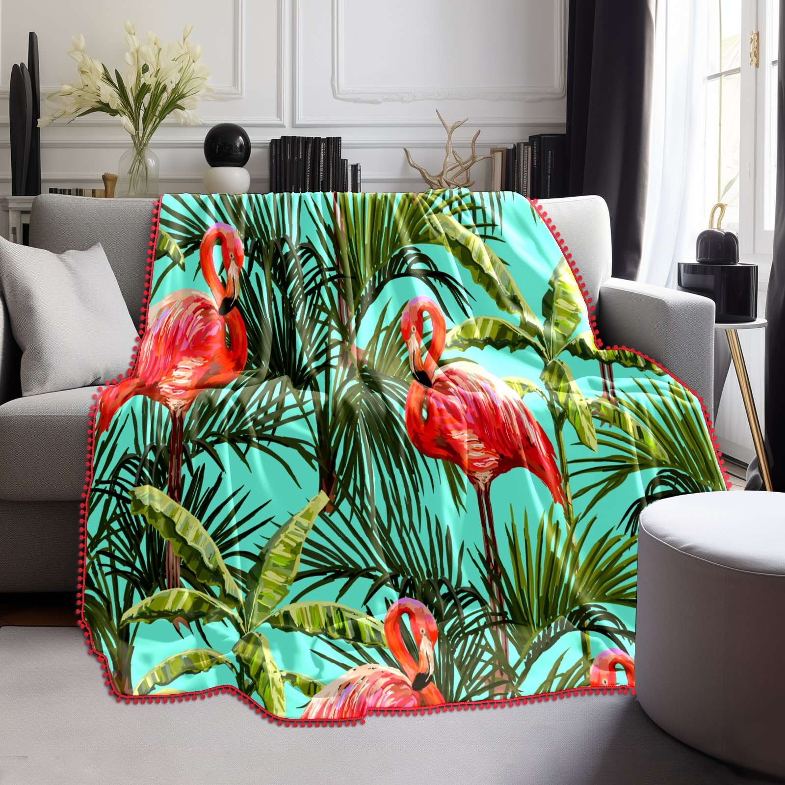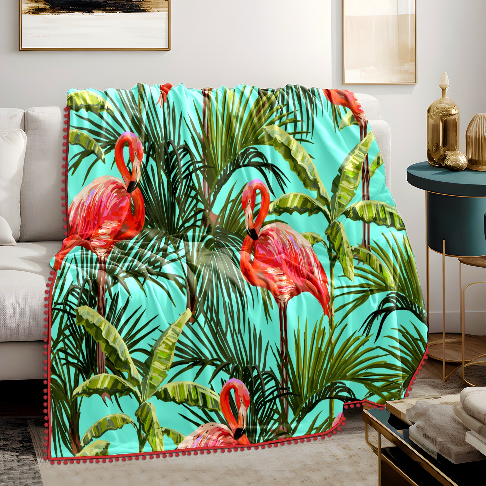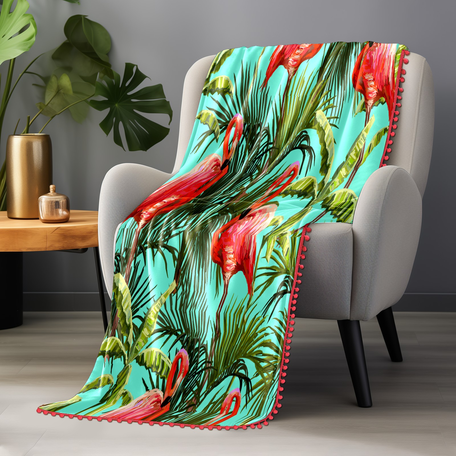 流苏毛毯 Tropiacal Flamingo Green Leaves