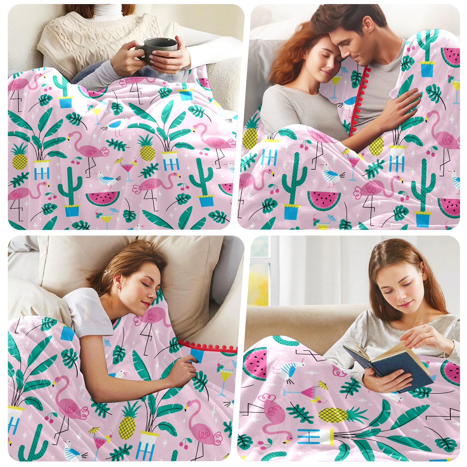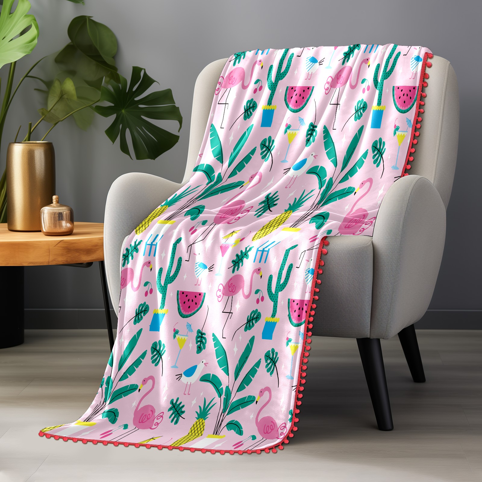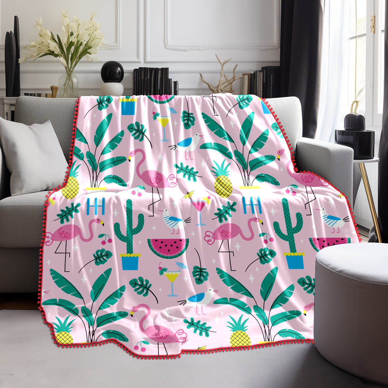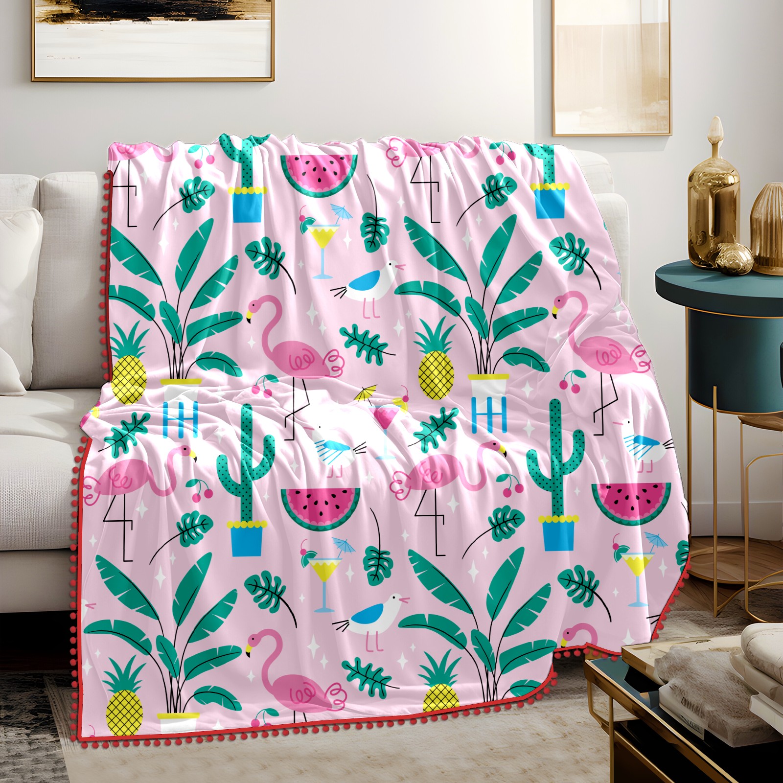 流苏毛毯 Flamingo Pineapple Watermelon Leaves