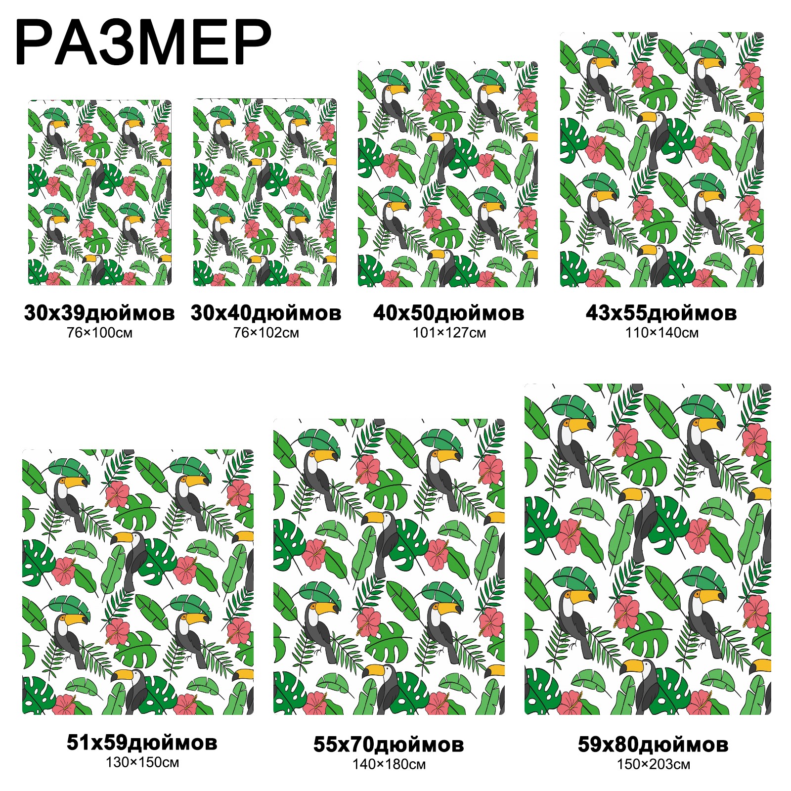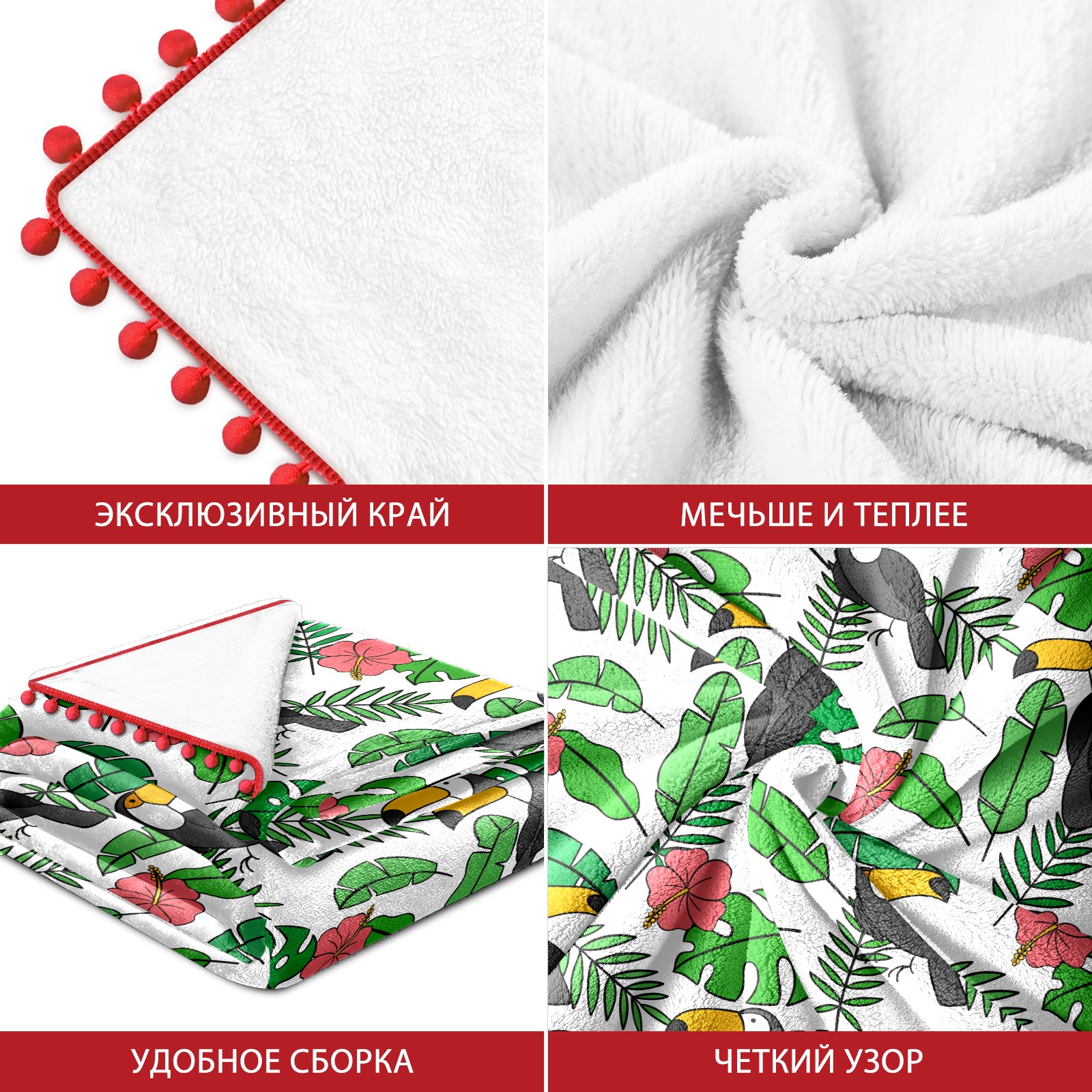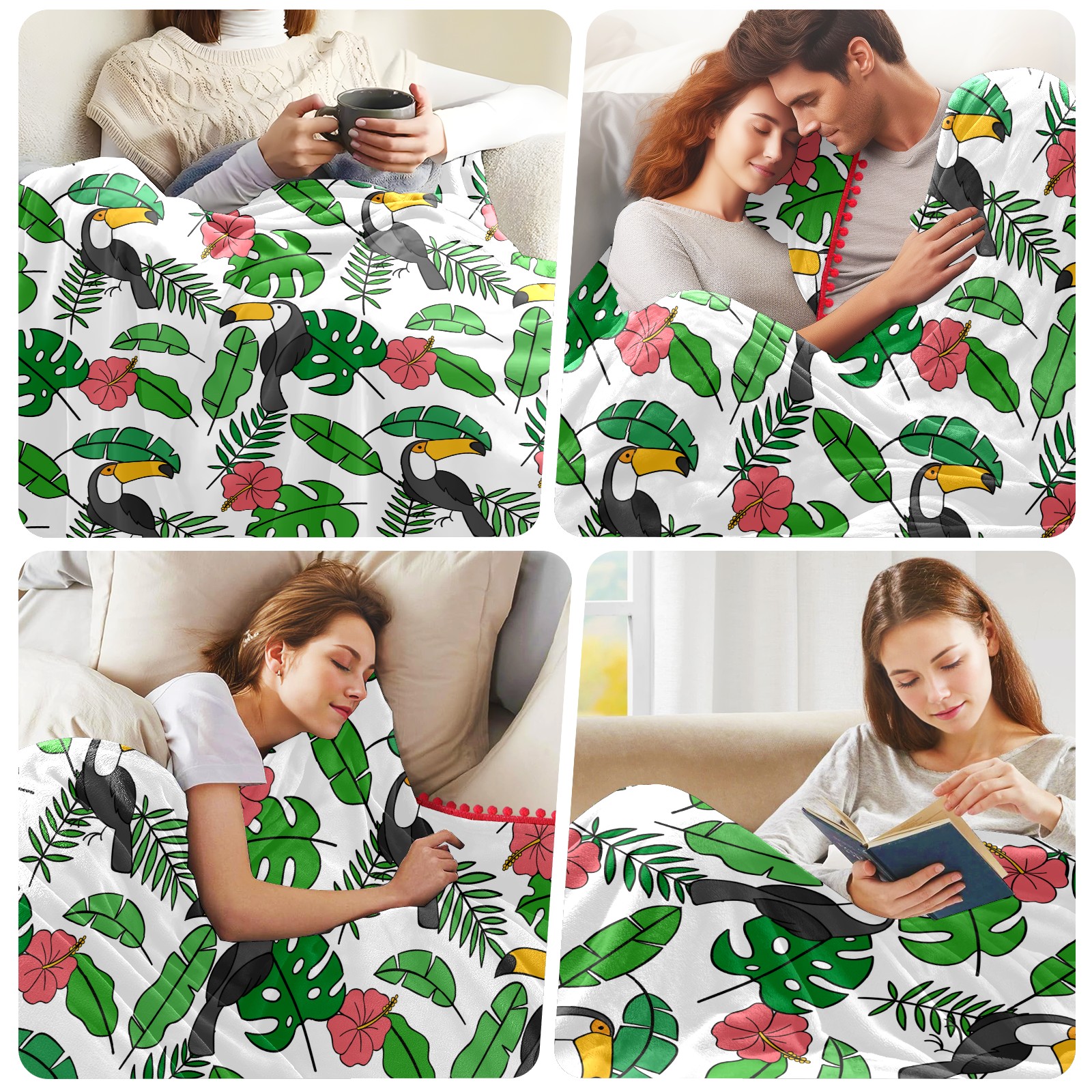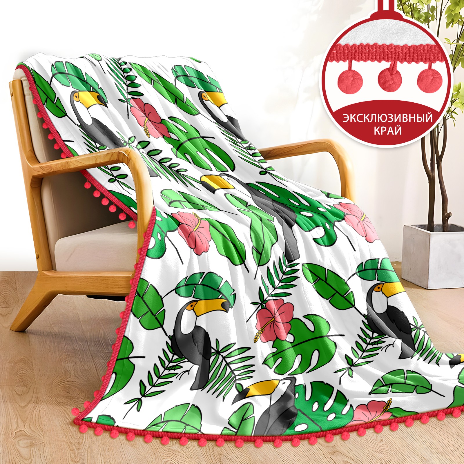 流苏毛毯 Toucan Birds Tropical Palm Leaves