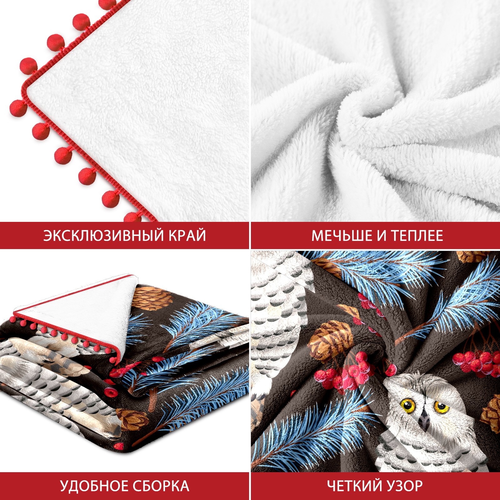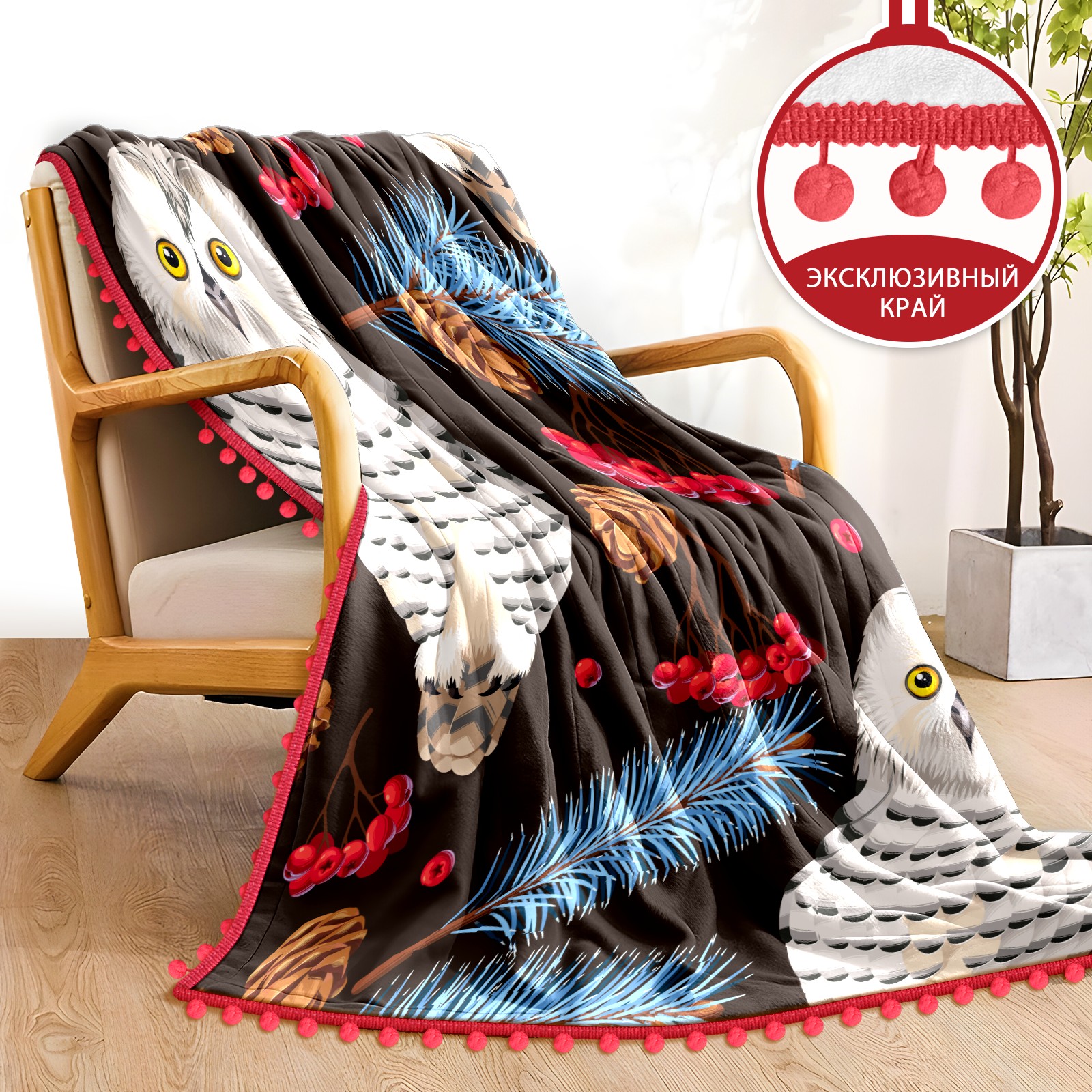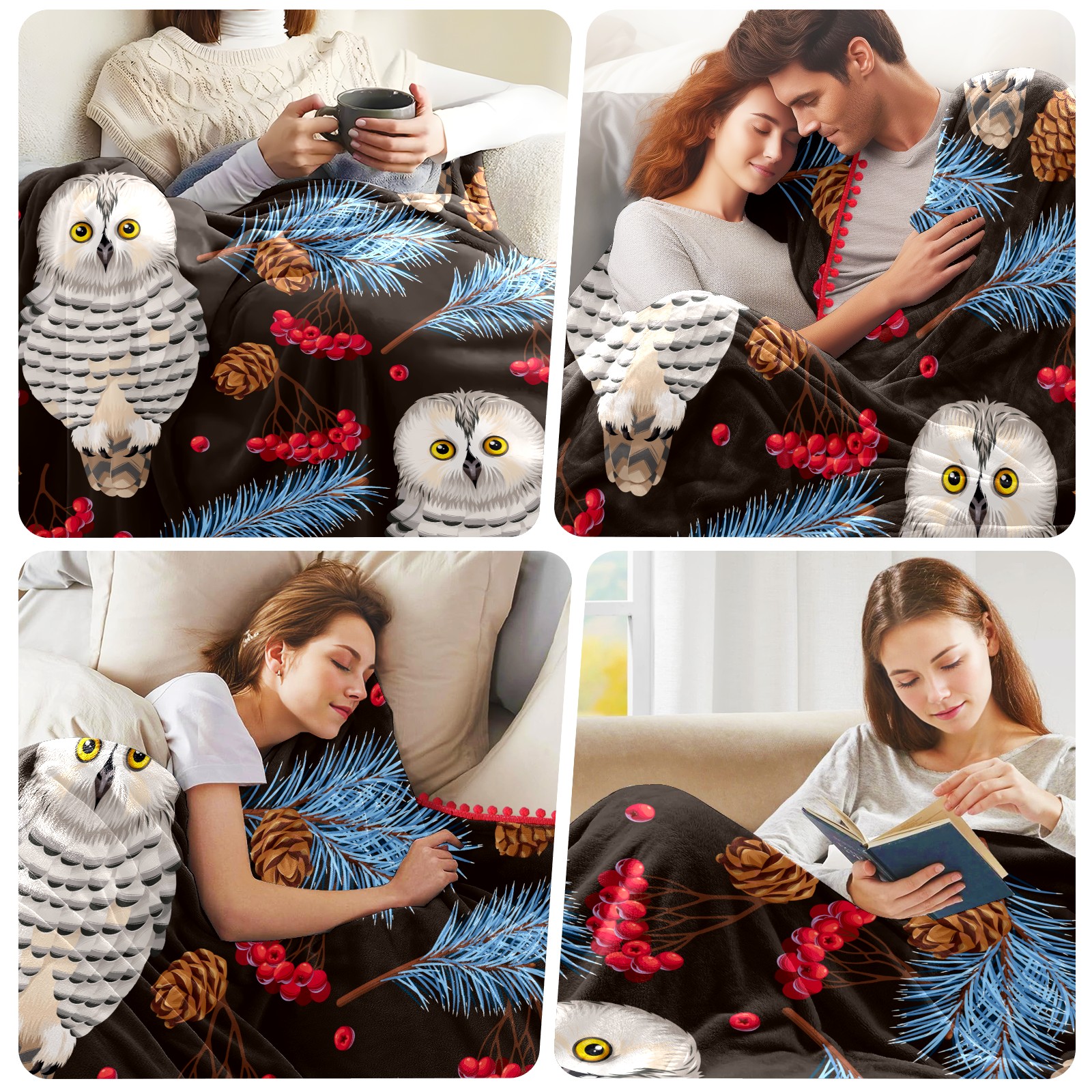 流苏毛毯 Retro Owl Leaves Floral