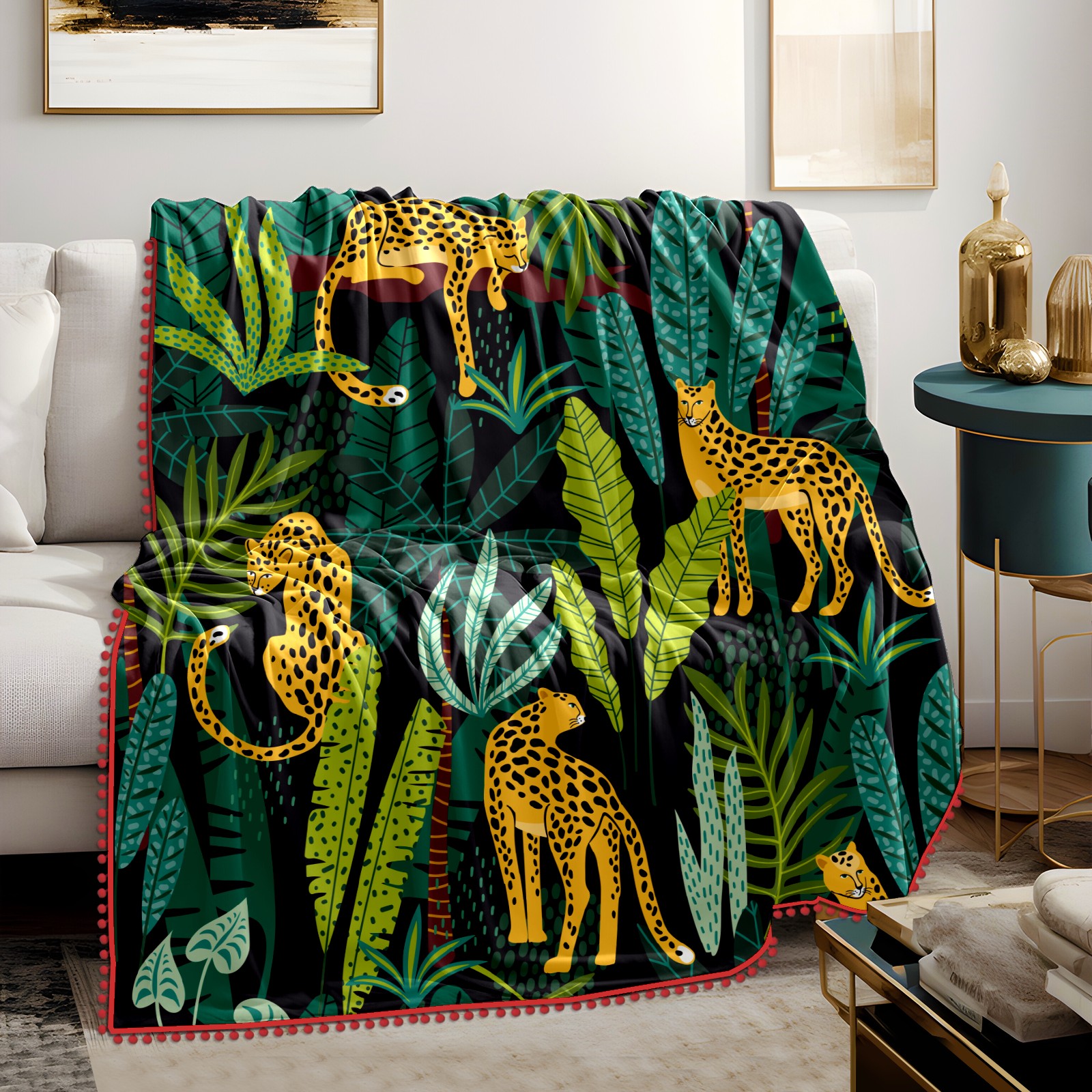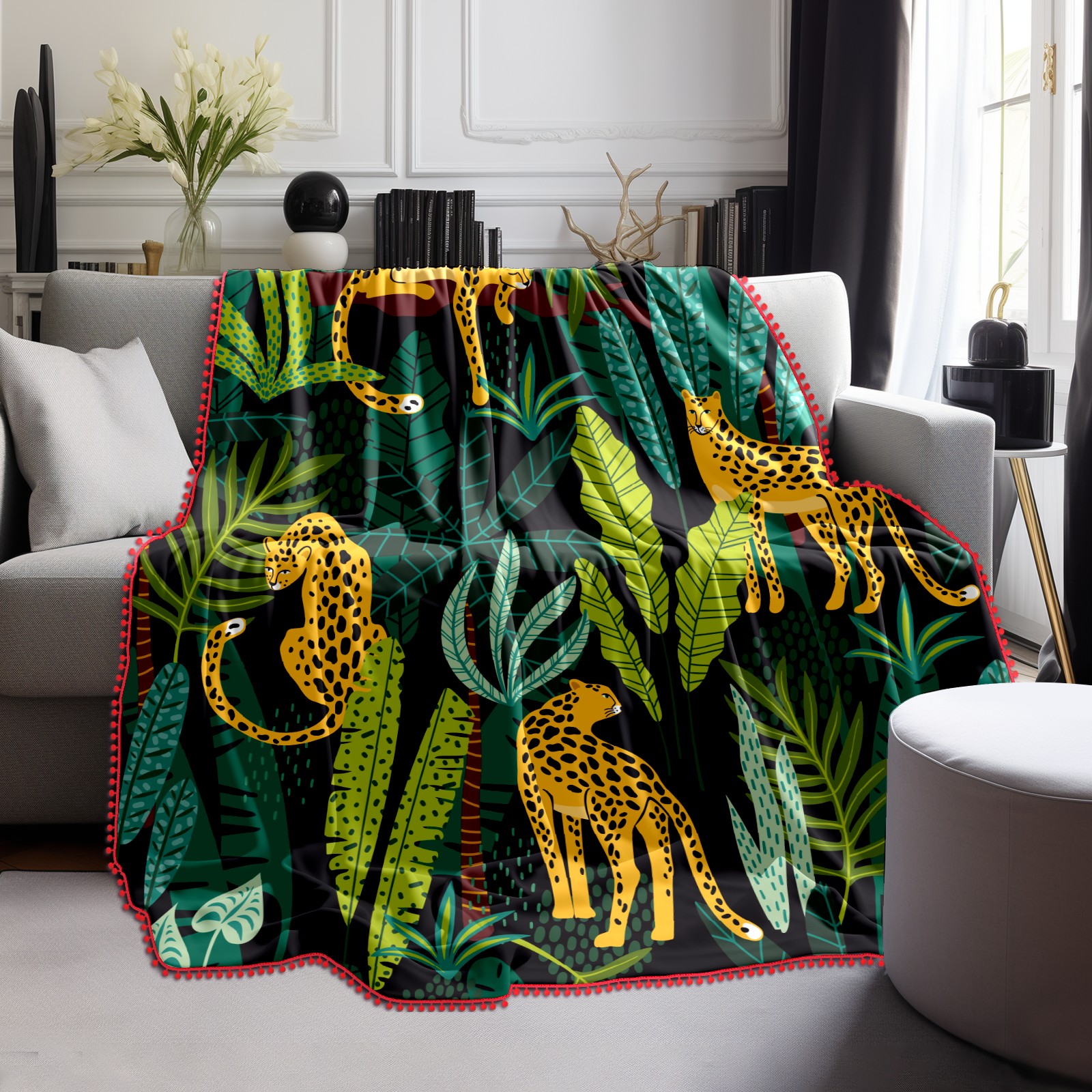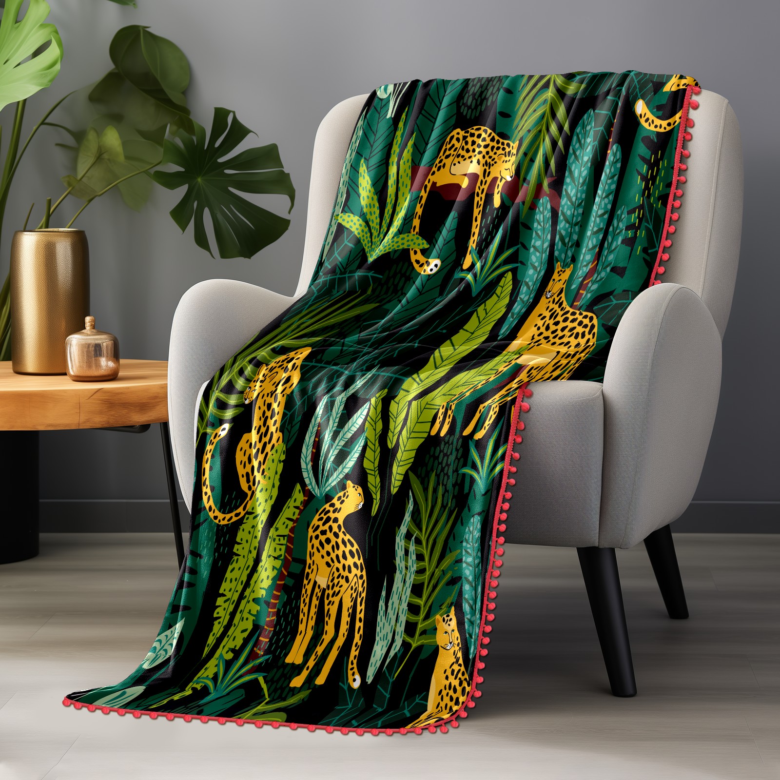 流苏毛毯 Leopard Tropical Jungle Leaves