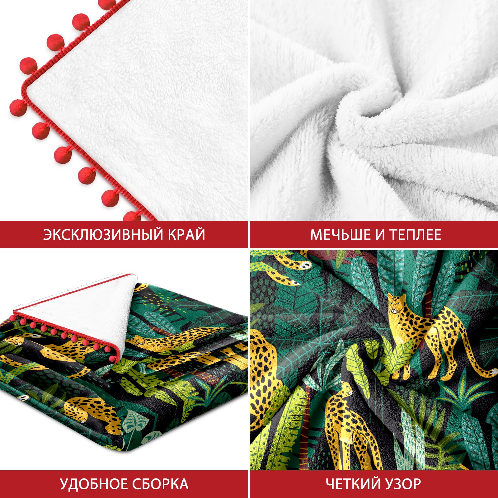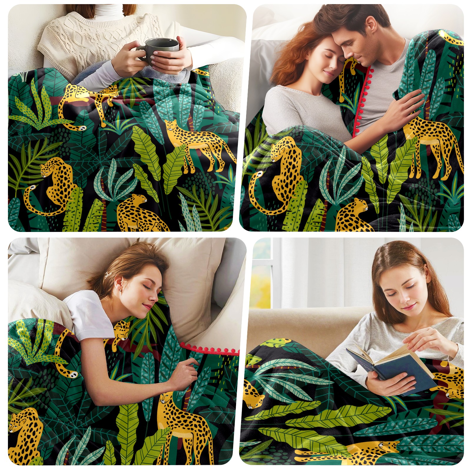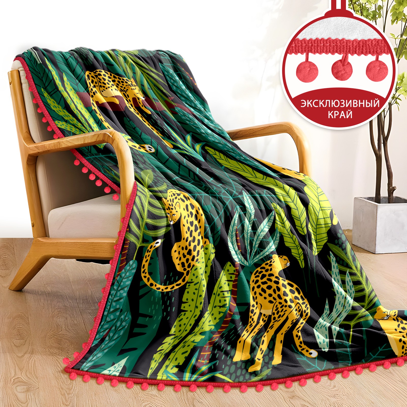 流苏毛毯 Leopard Tropical Jungle Leaves