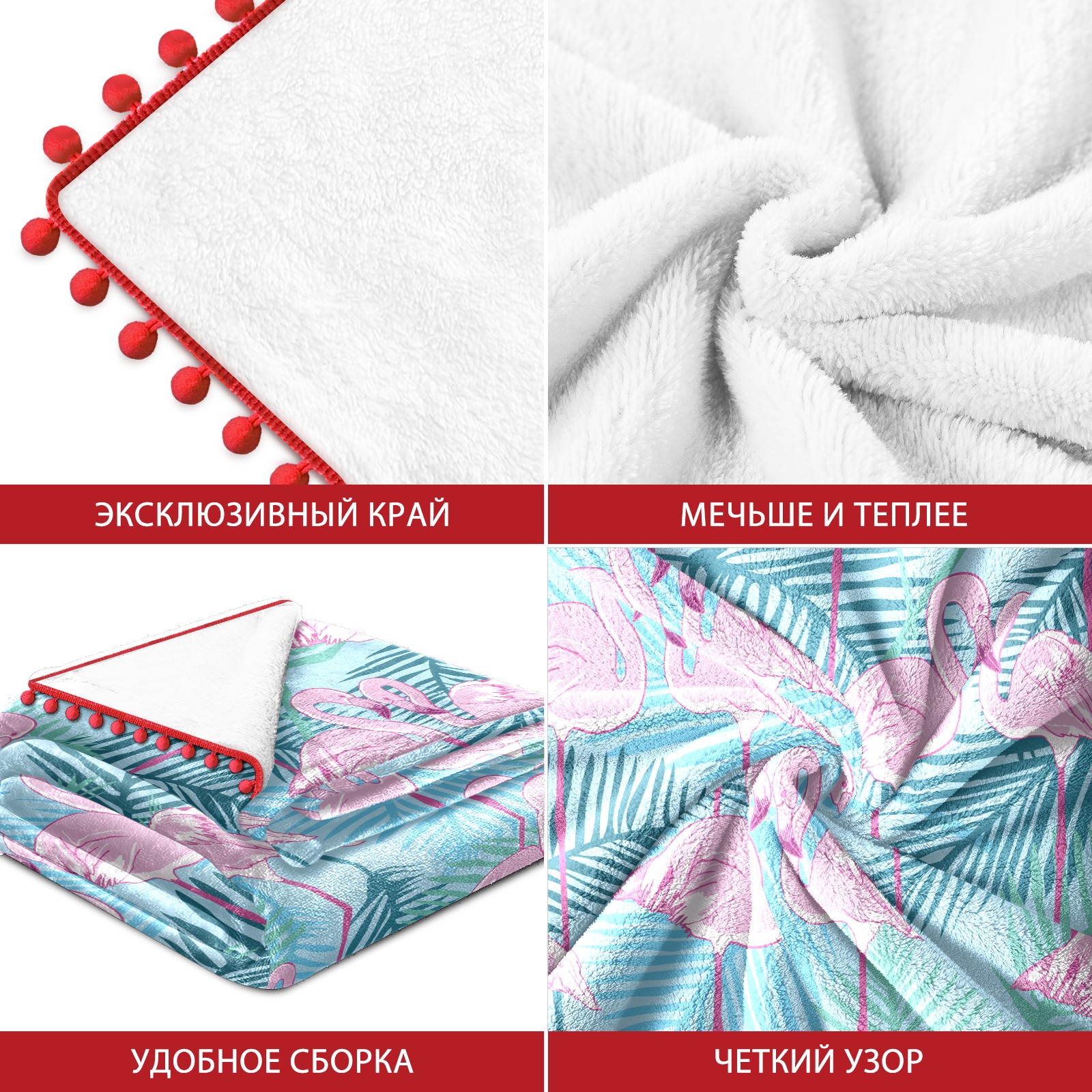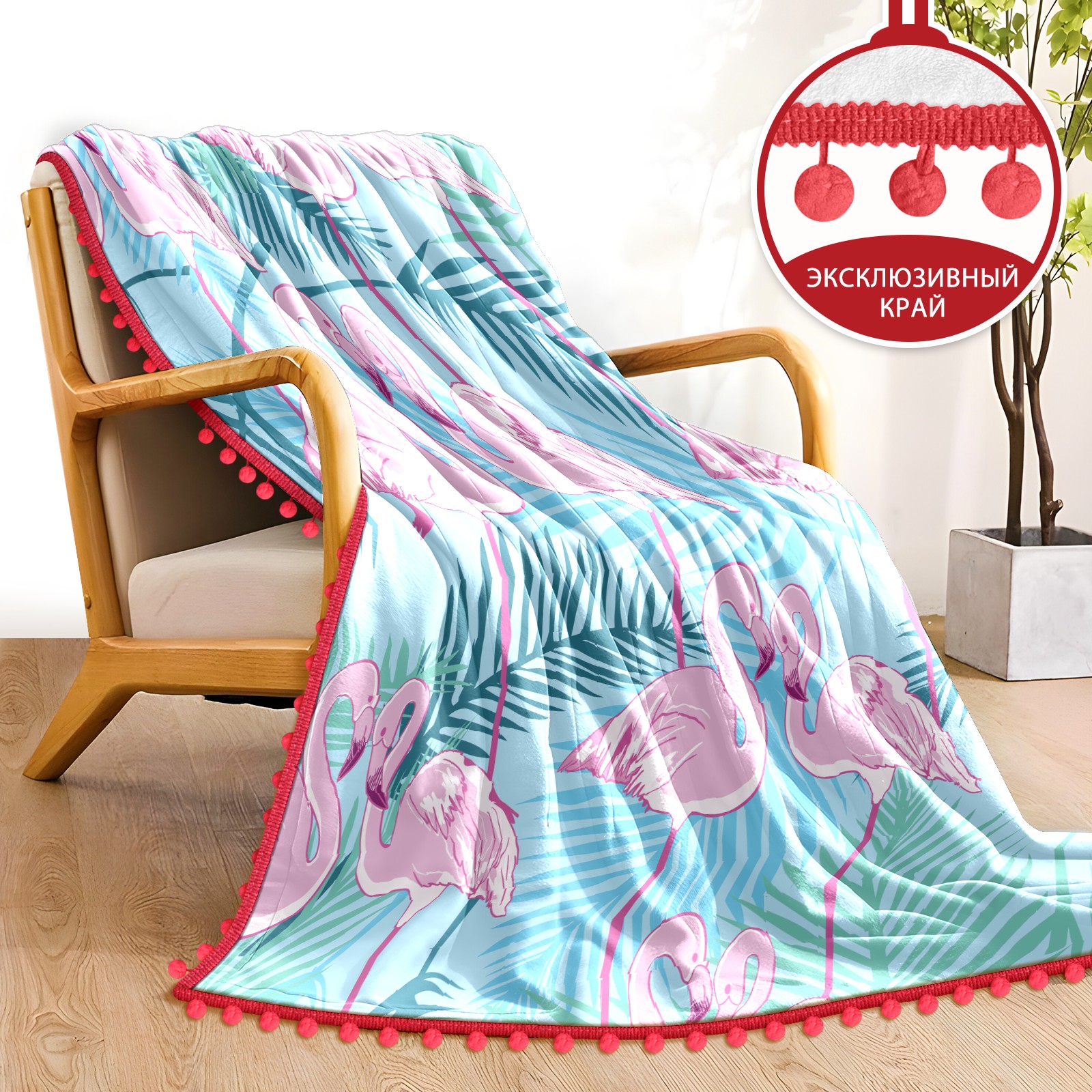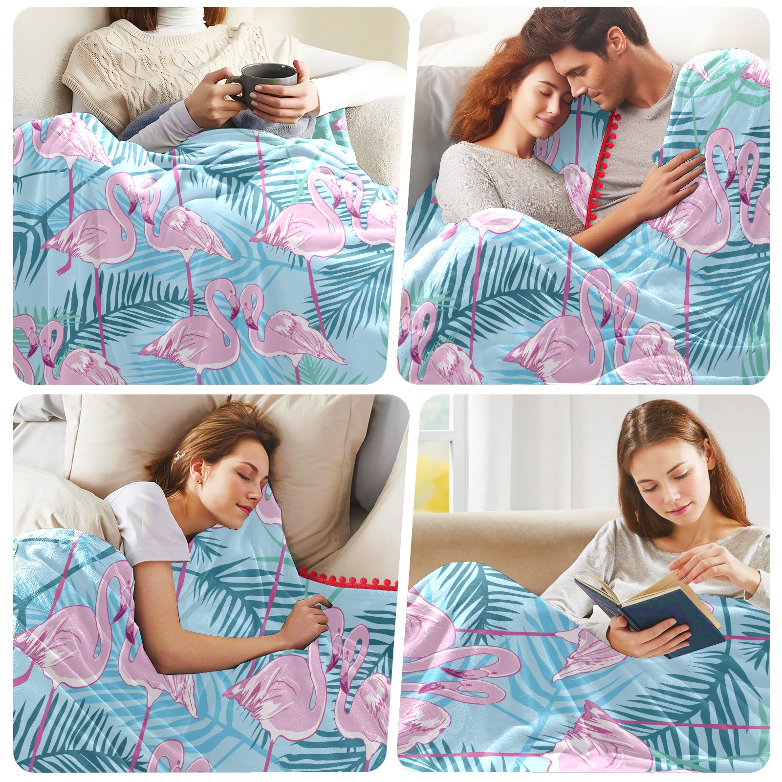 流苏毛毯 Pink Flamingos Green Forest Leaves