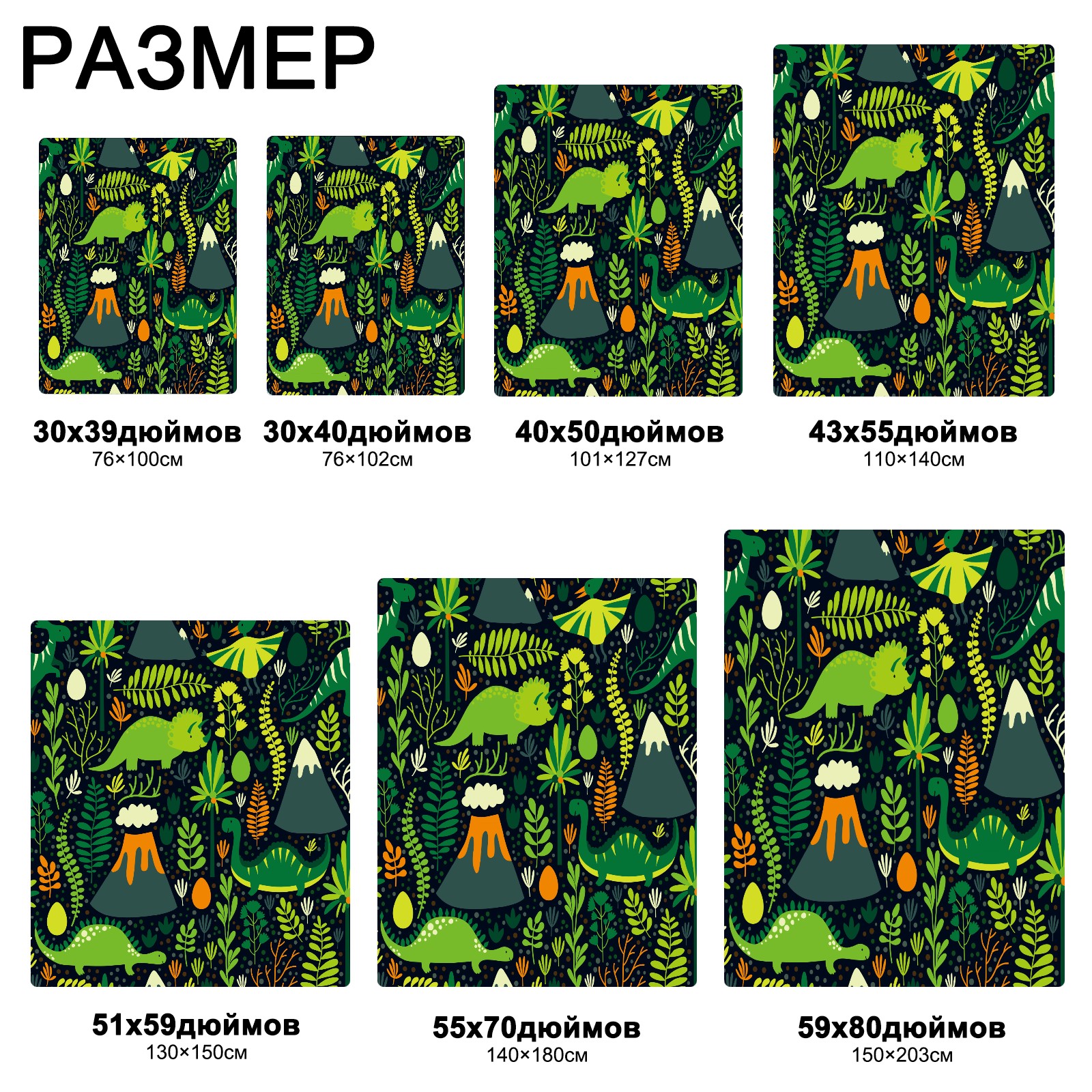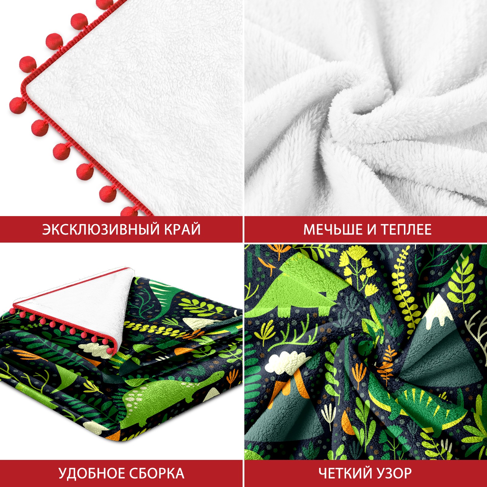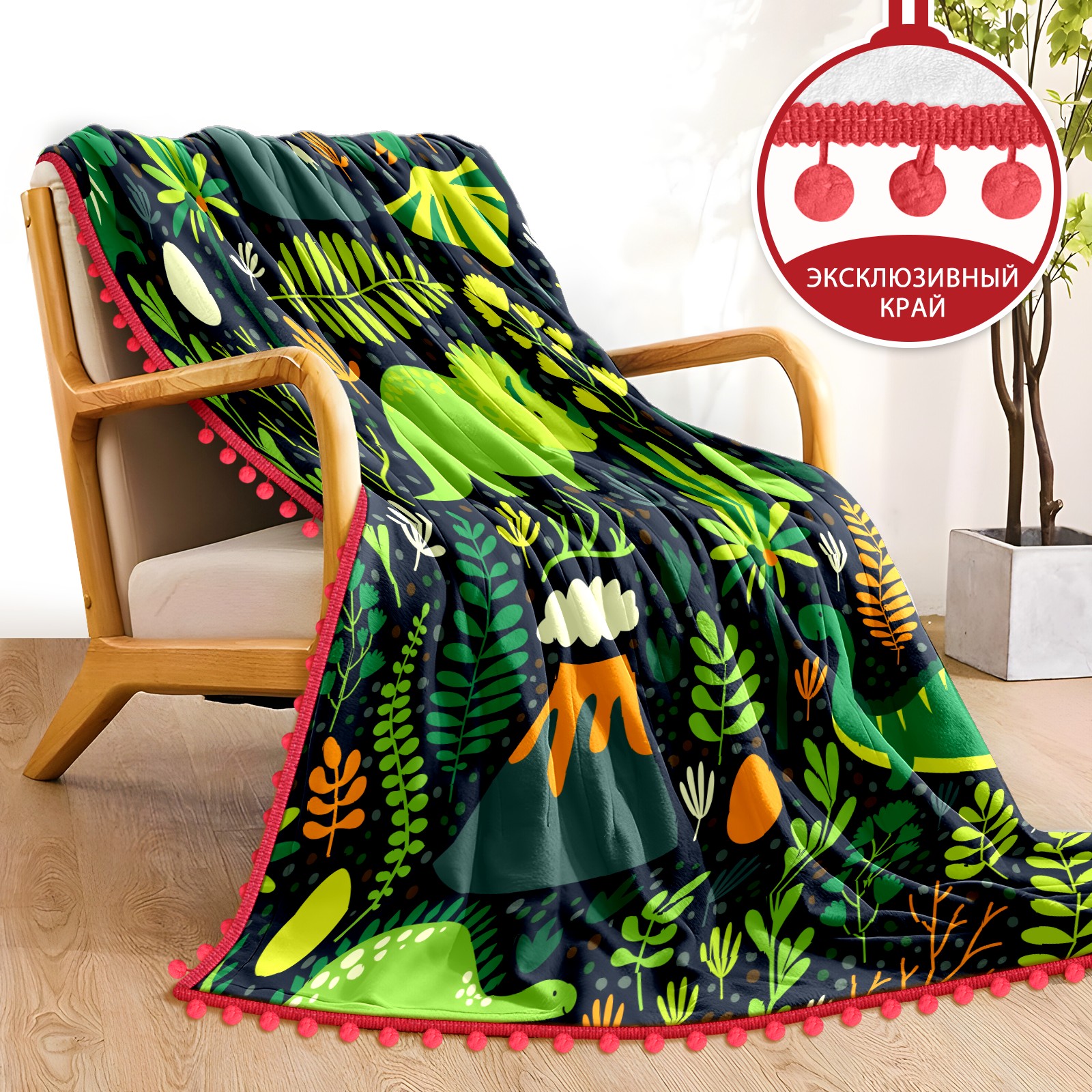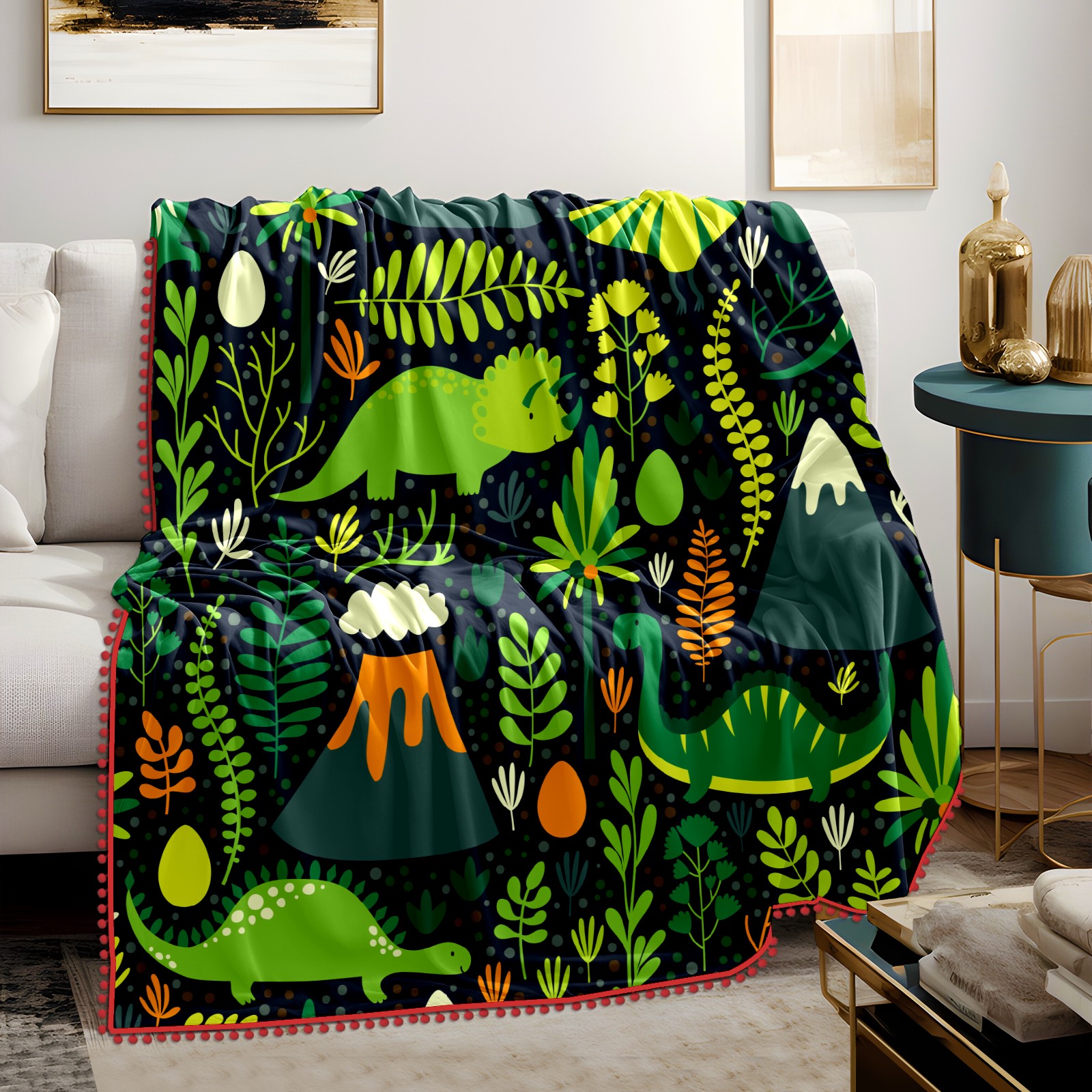 流苏毛毯 Green Dinosaurs Stegosaurus Leaves Tree