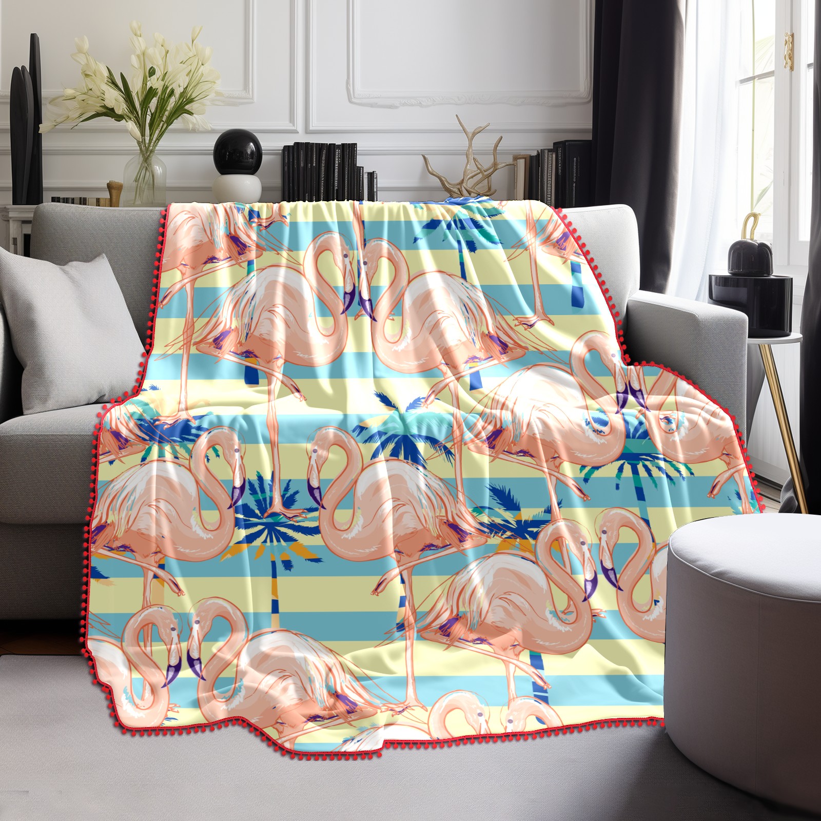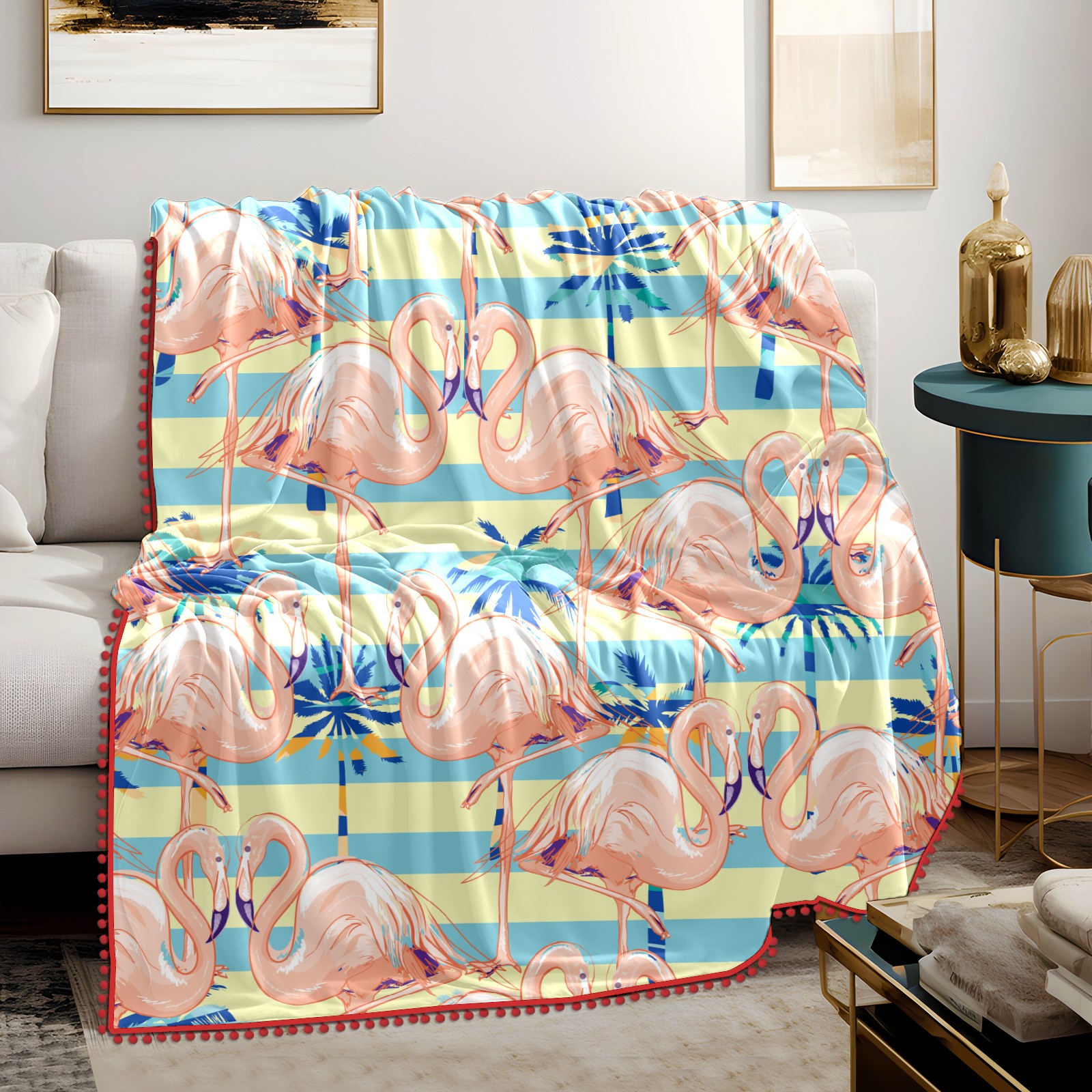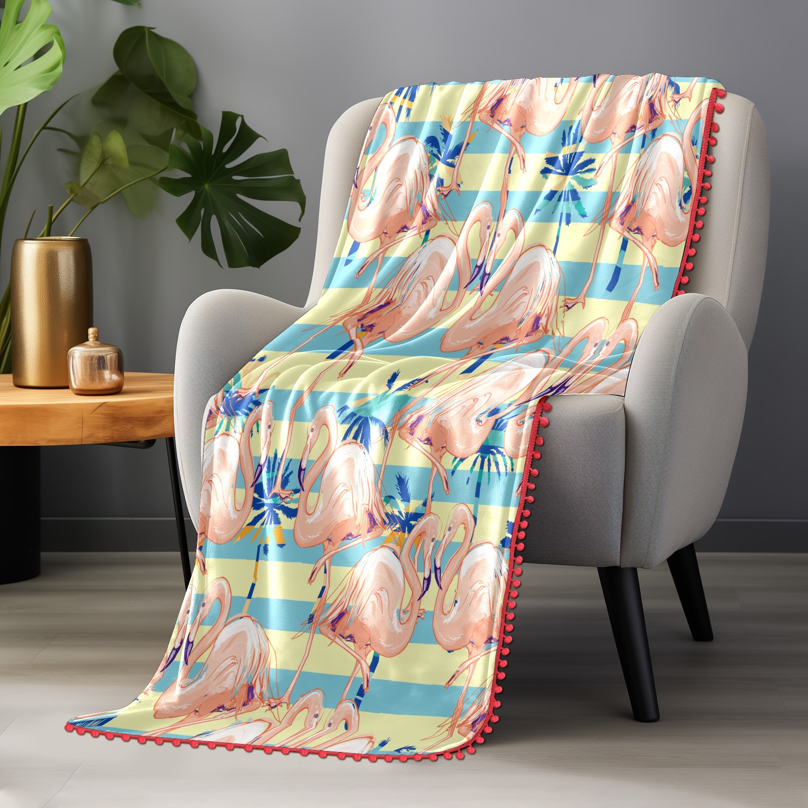 流苏毛毯 Pink Flamingos Rainforest Leaves