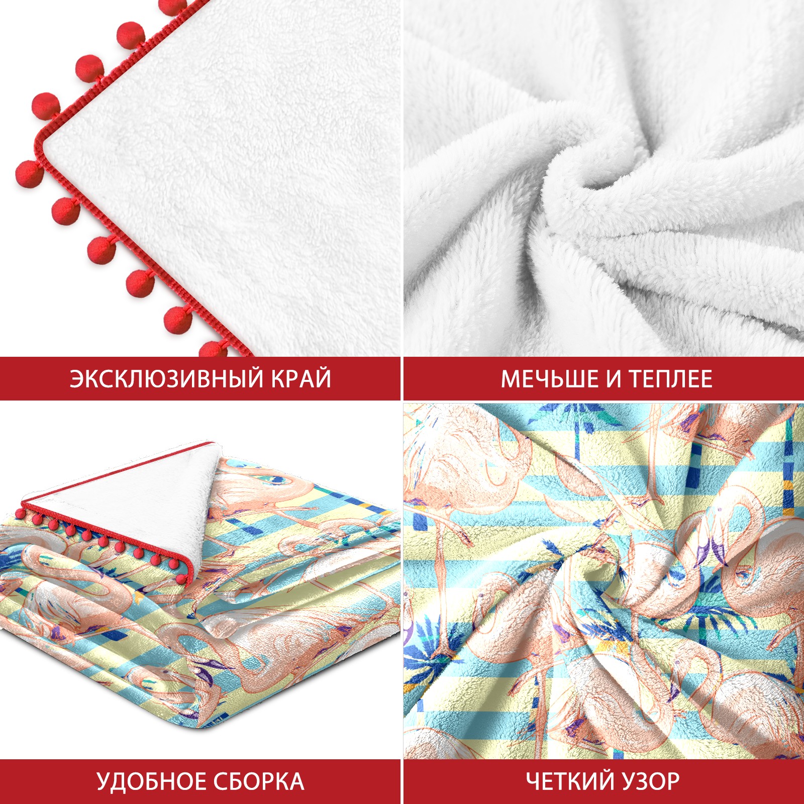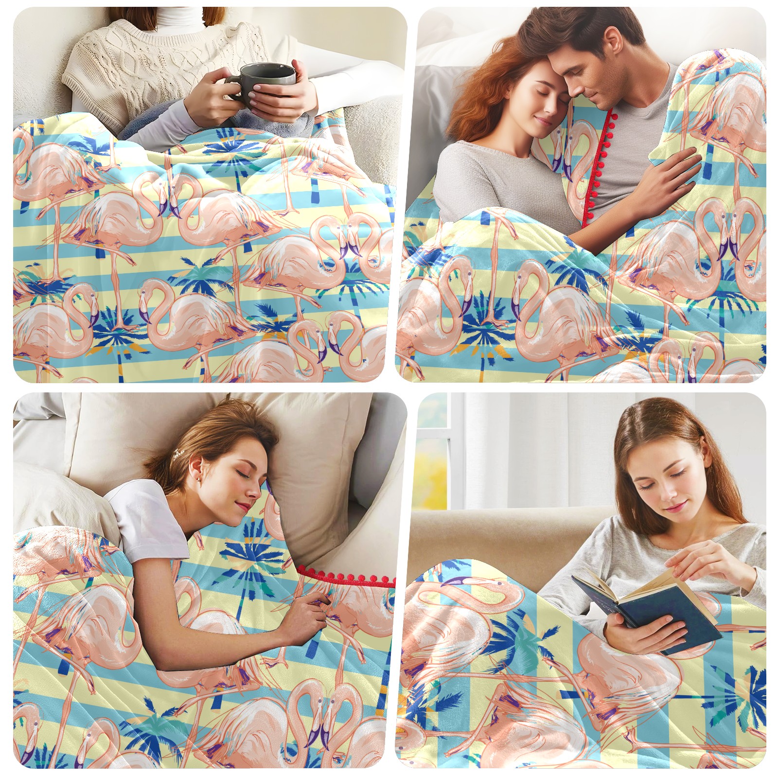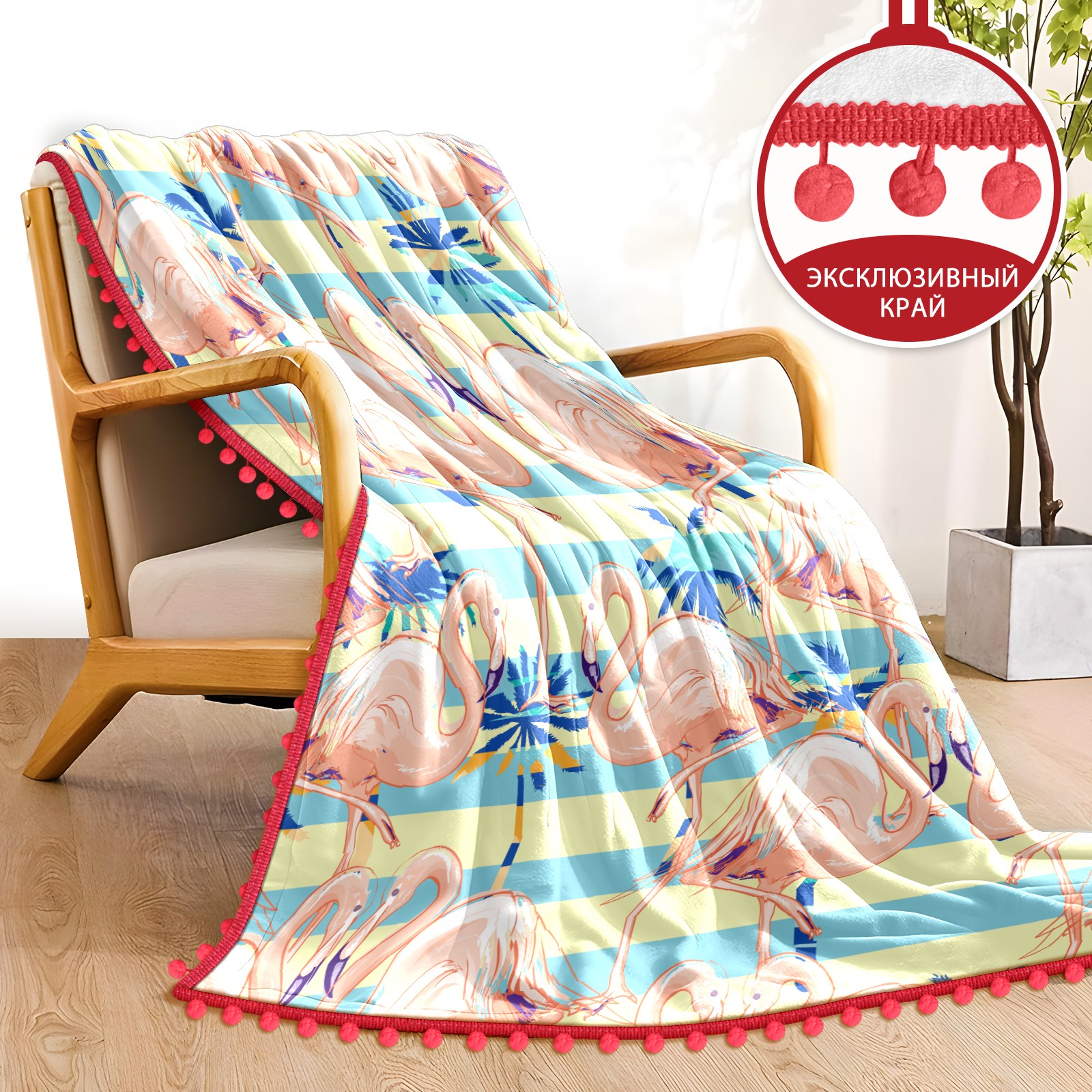 流苏毛毯 Pink Flamingos Rainforest Leaves