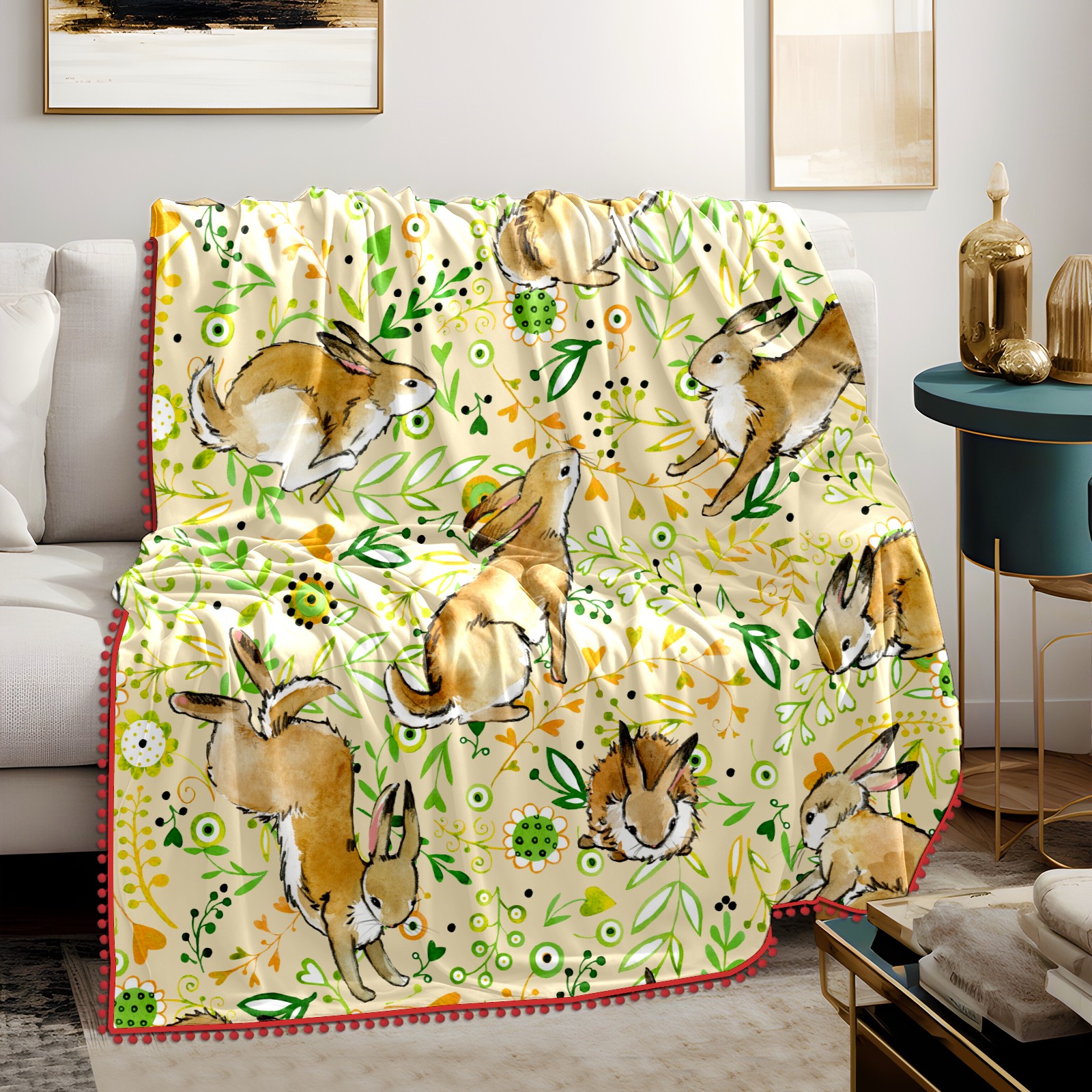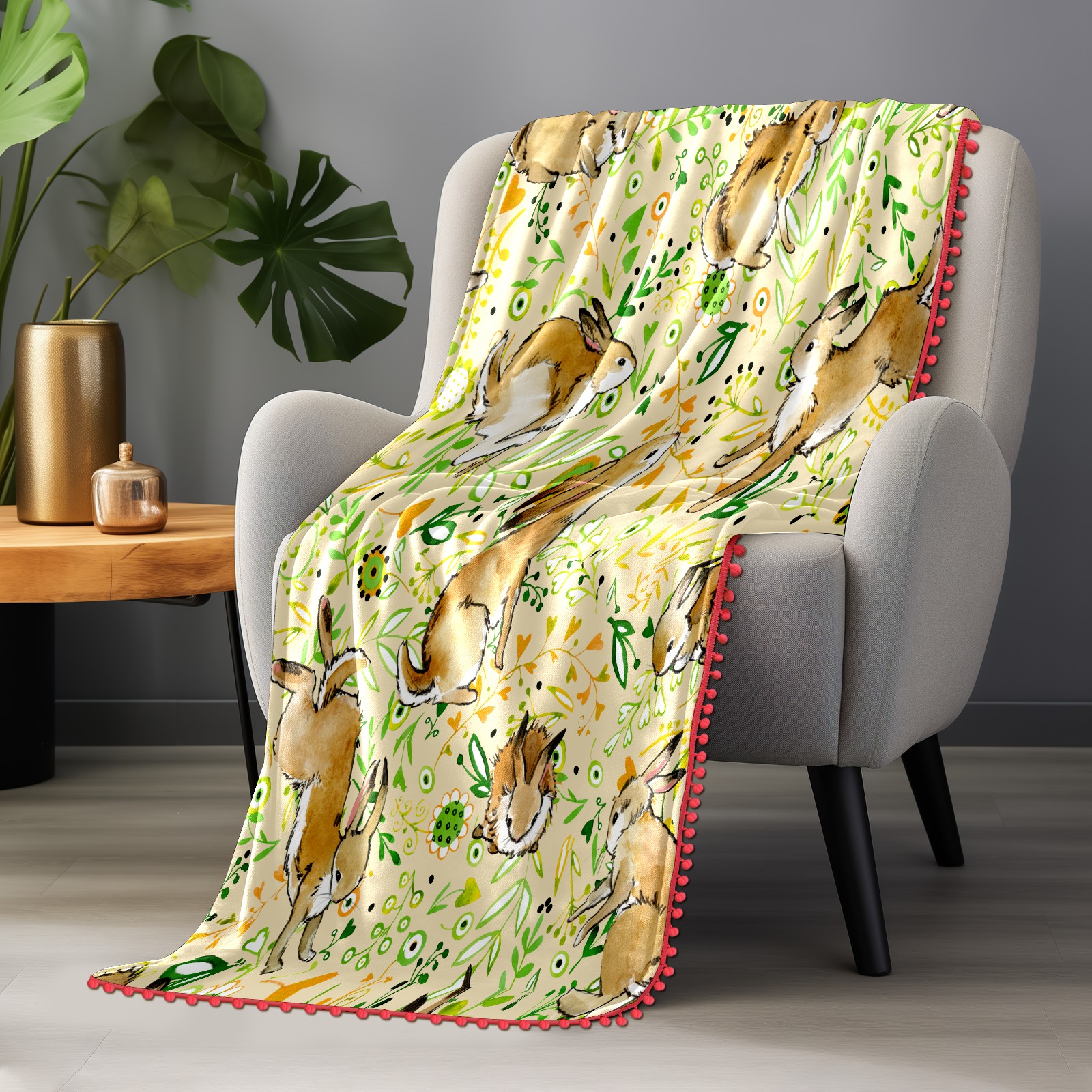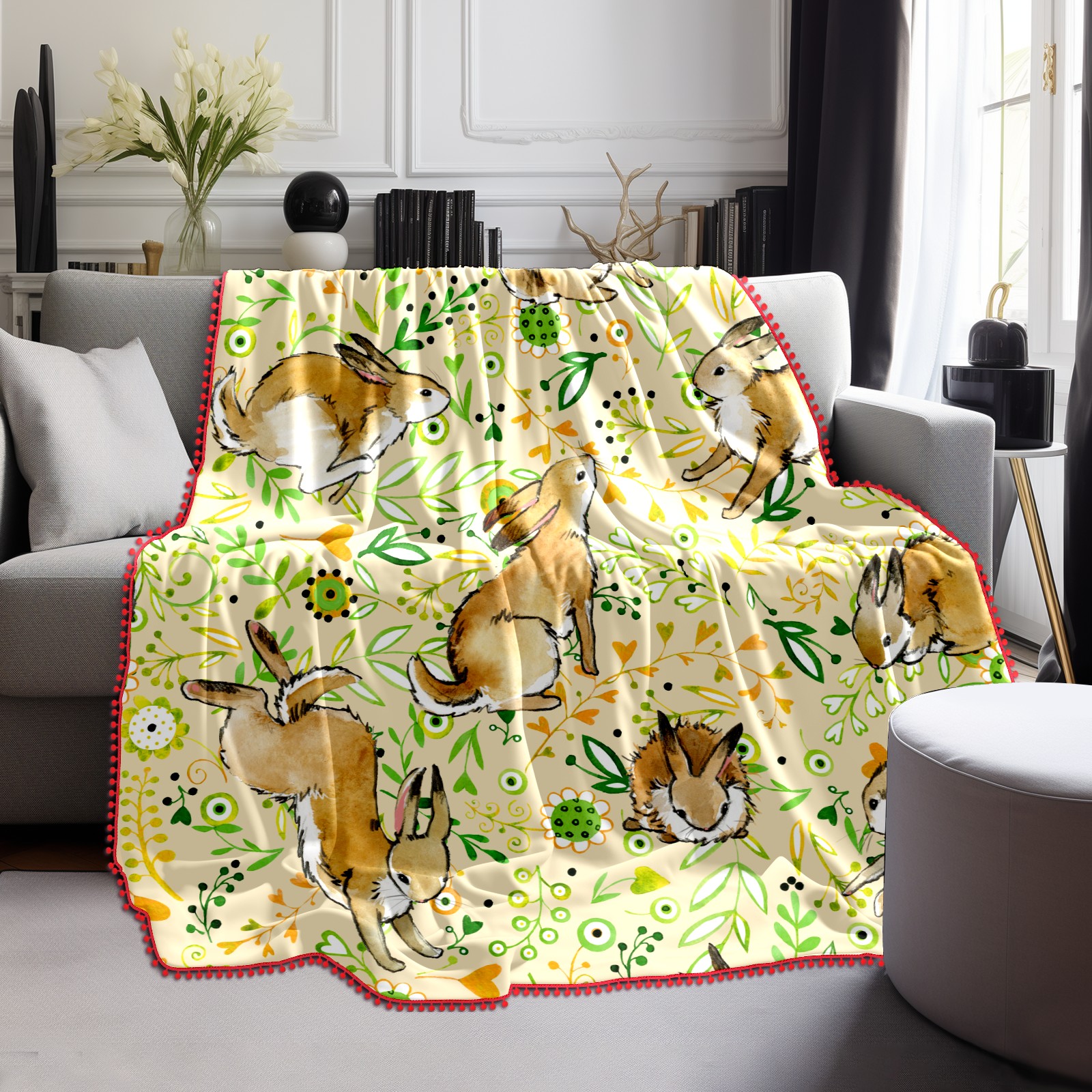 流苏毛毯 Rabbit leaves cartoon cute