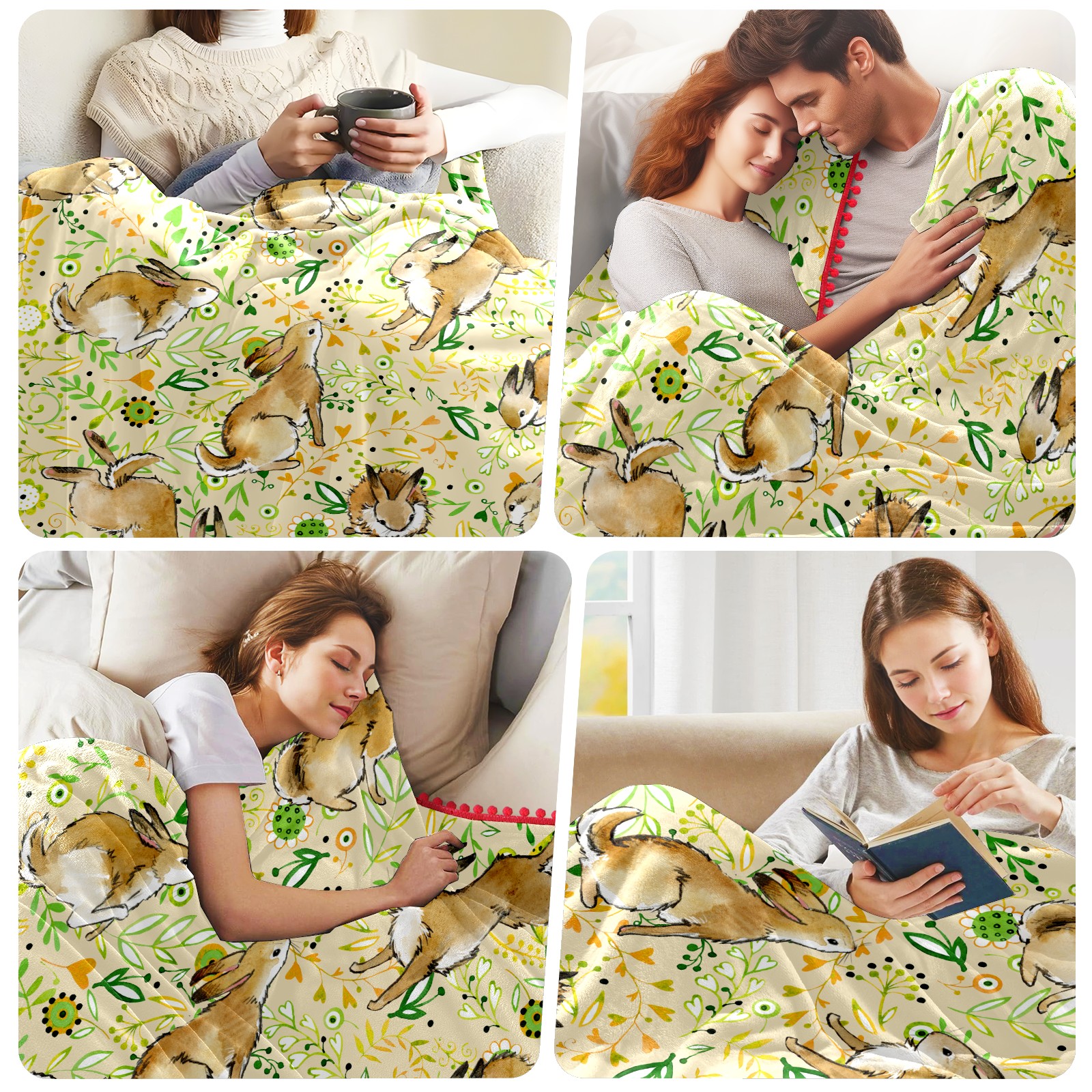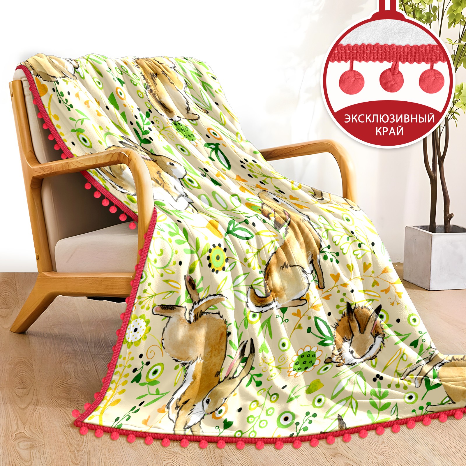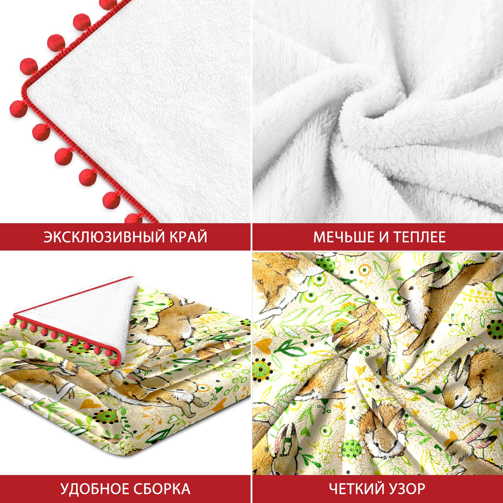 流苏毛毯 Rabbit leaves cartoon cute