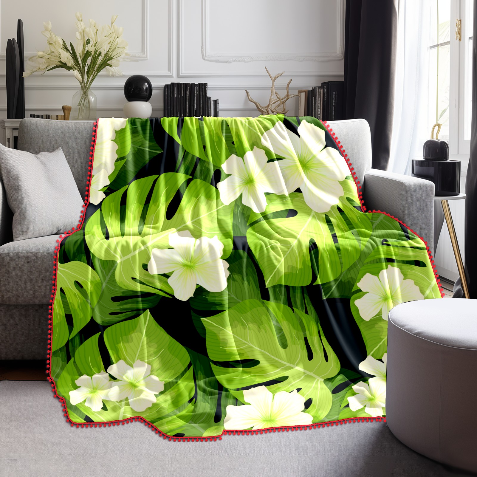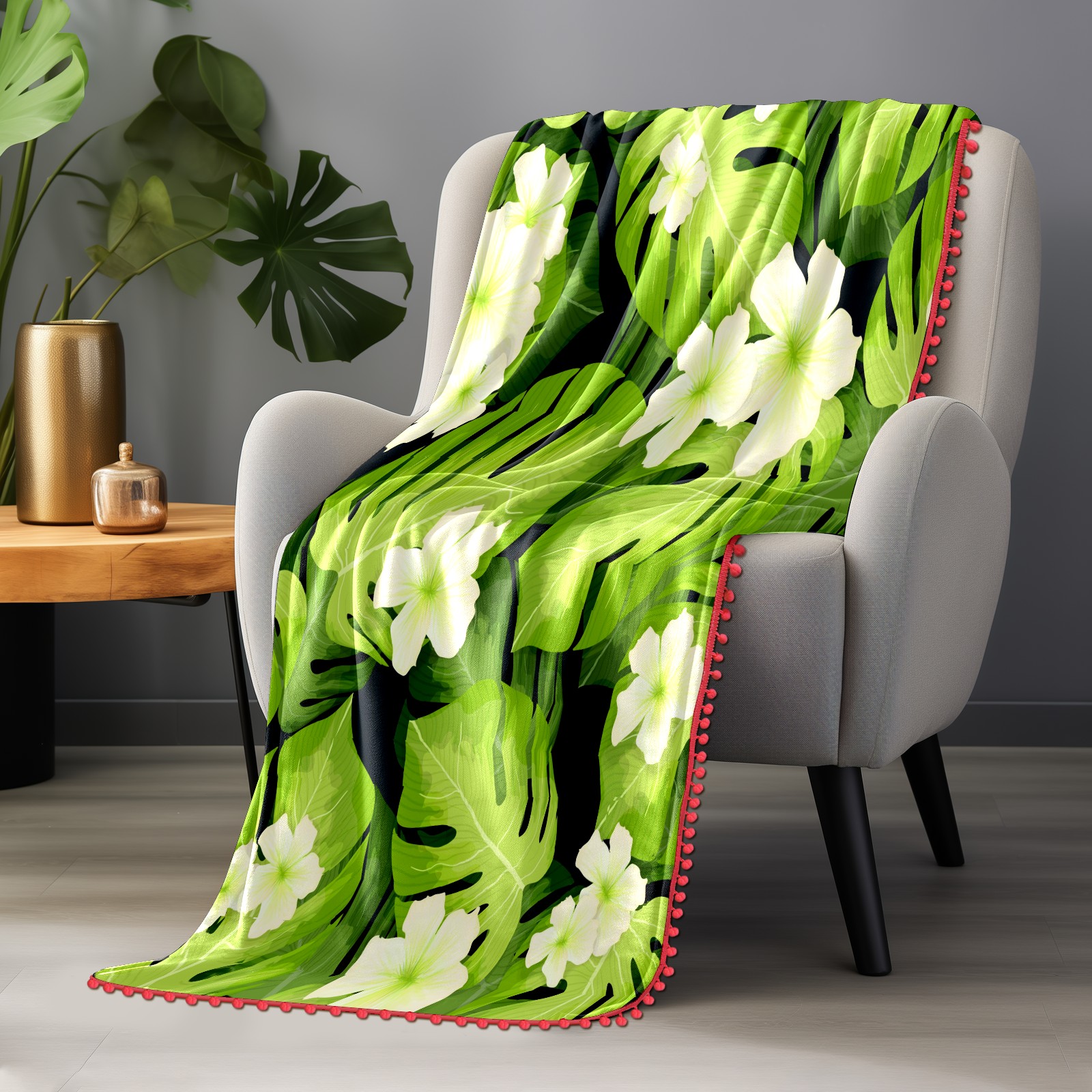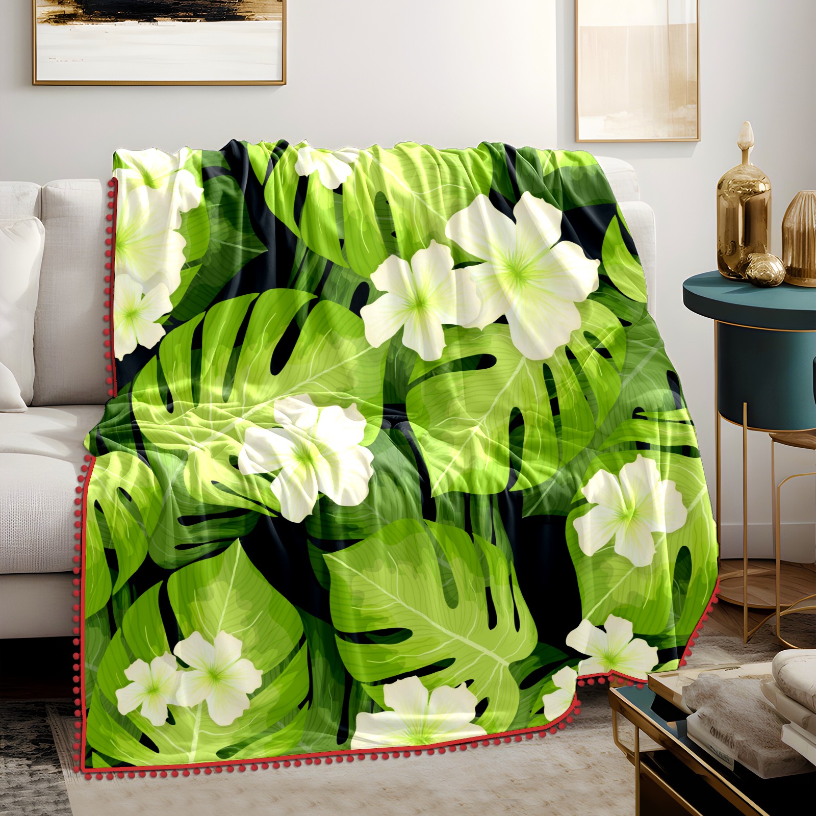 流苏毛毯 Palm Leaves Pattern Flowers