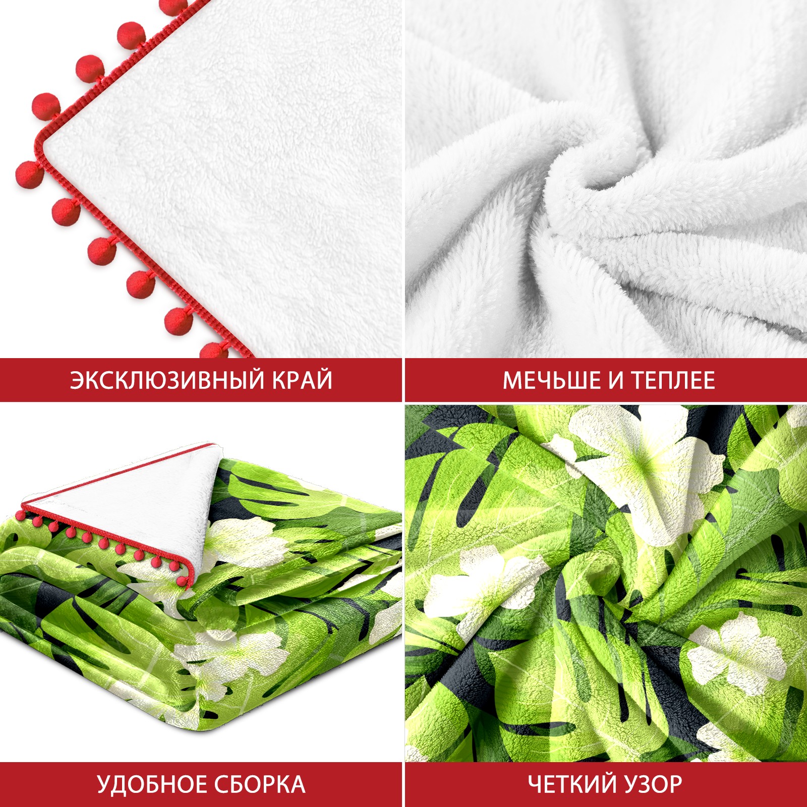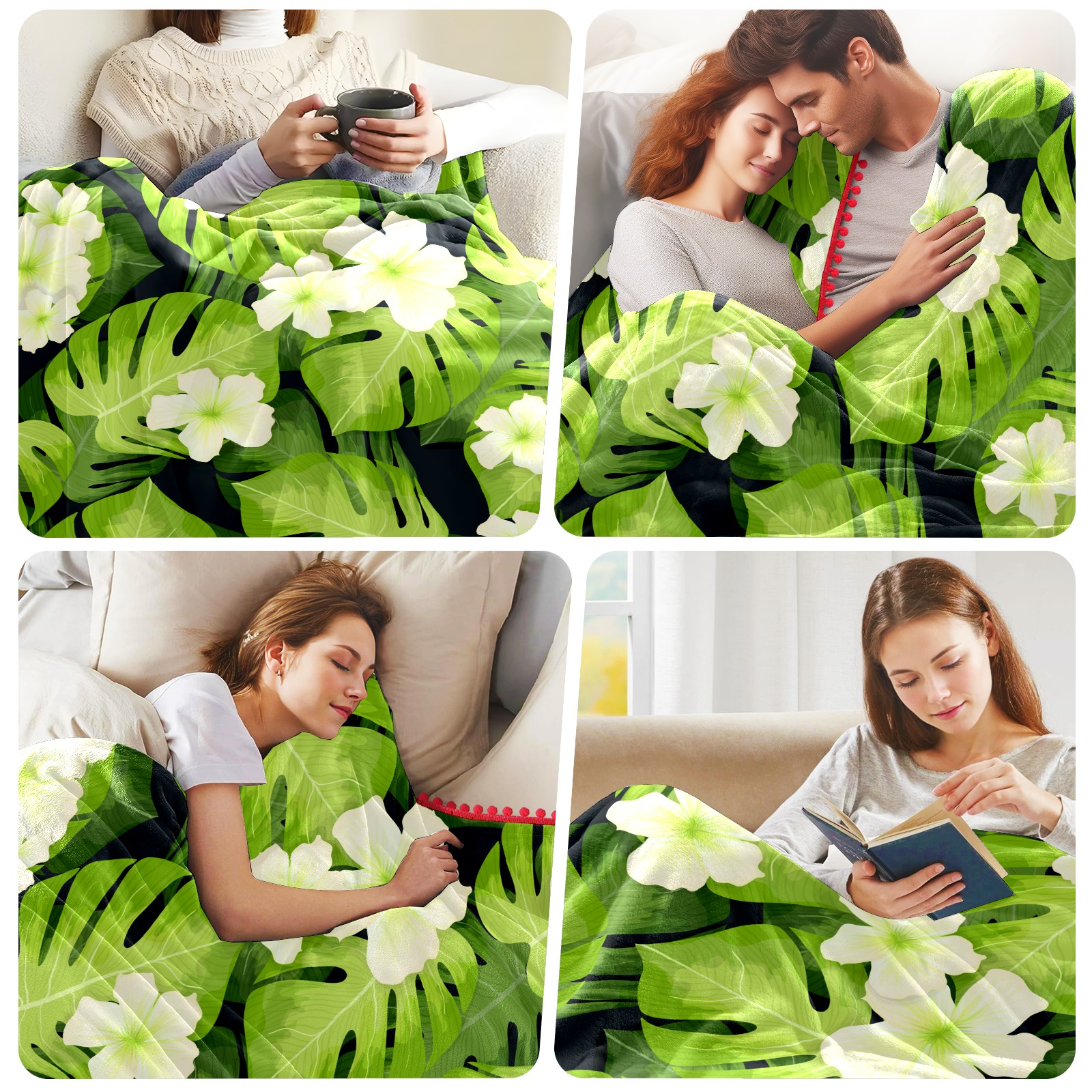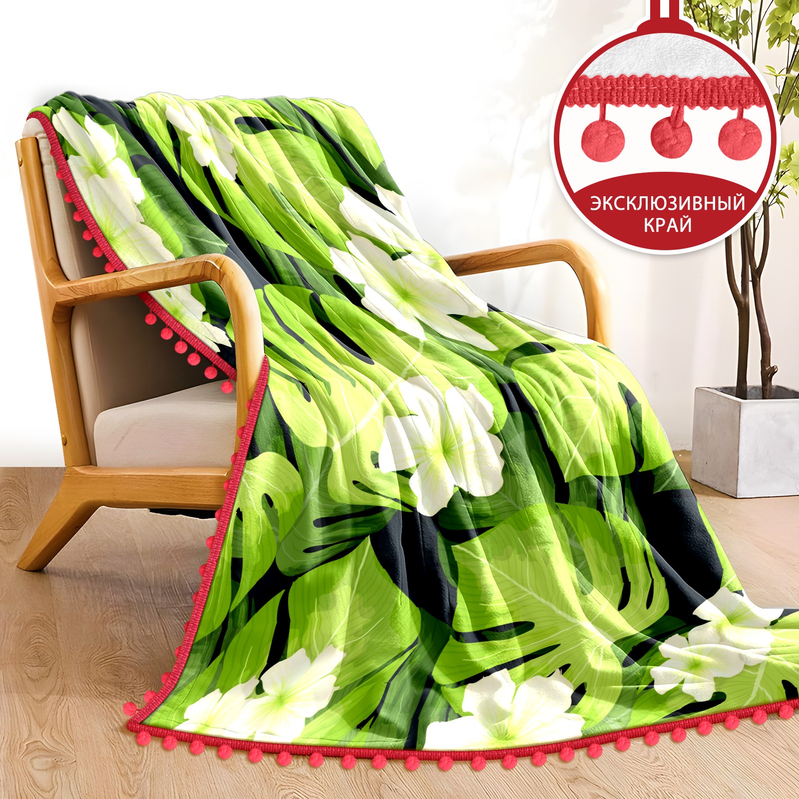 流苏毛毯 Palm Leaves Pattern Flowers
