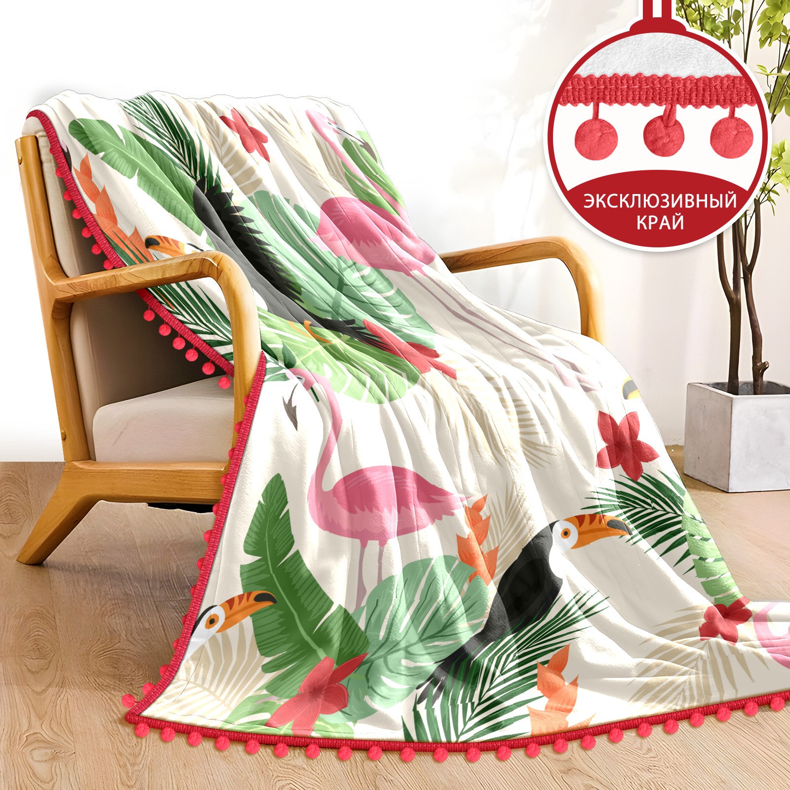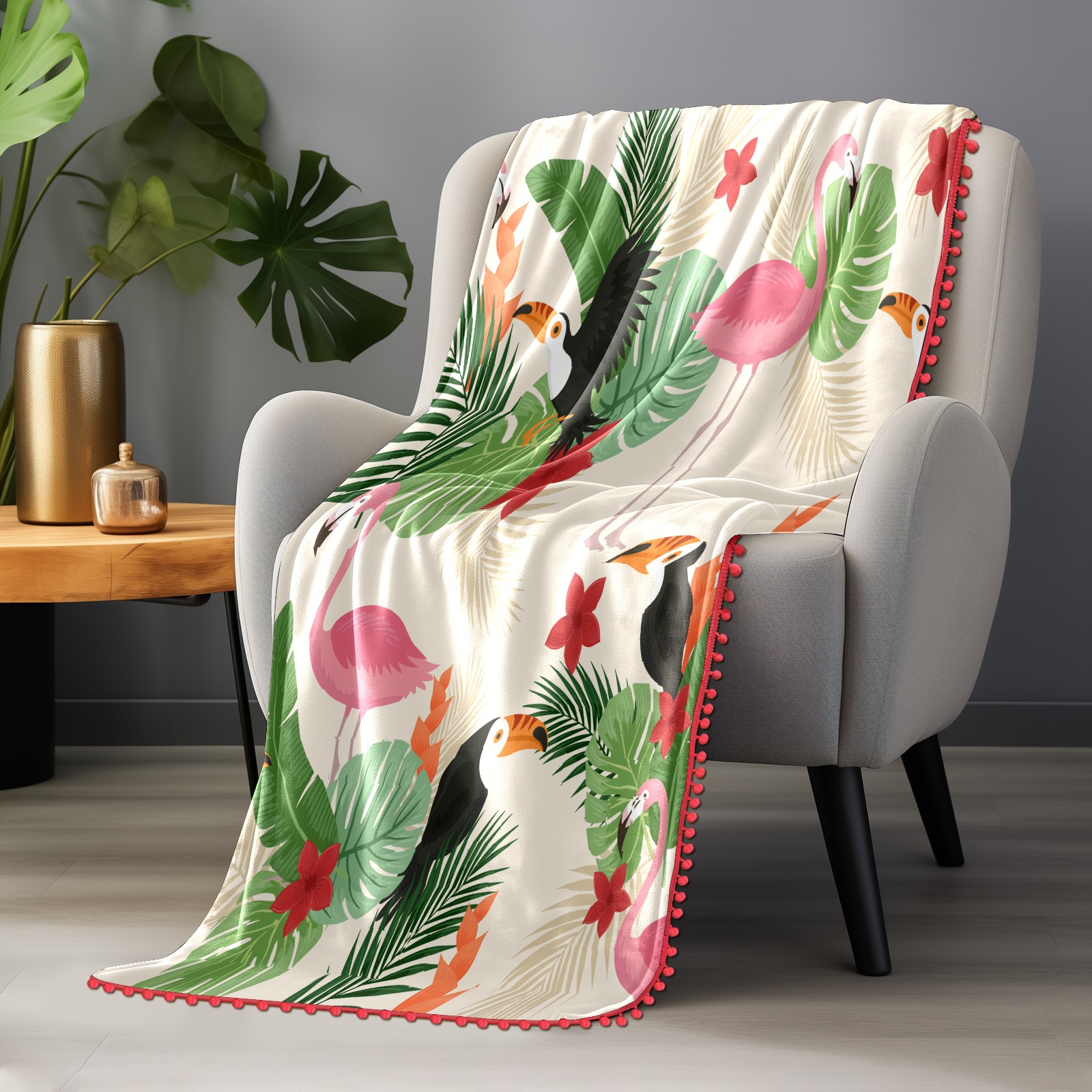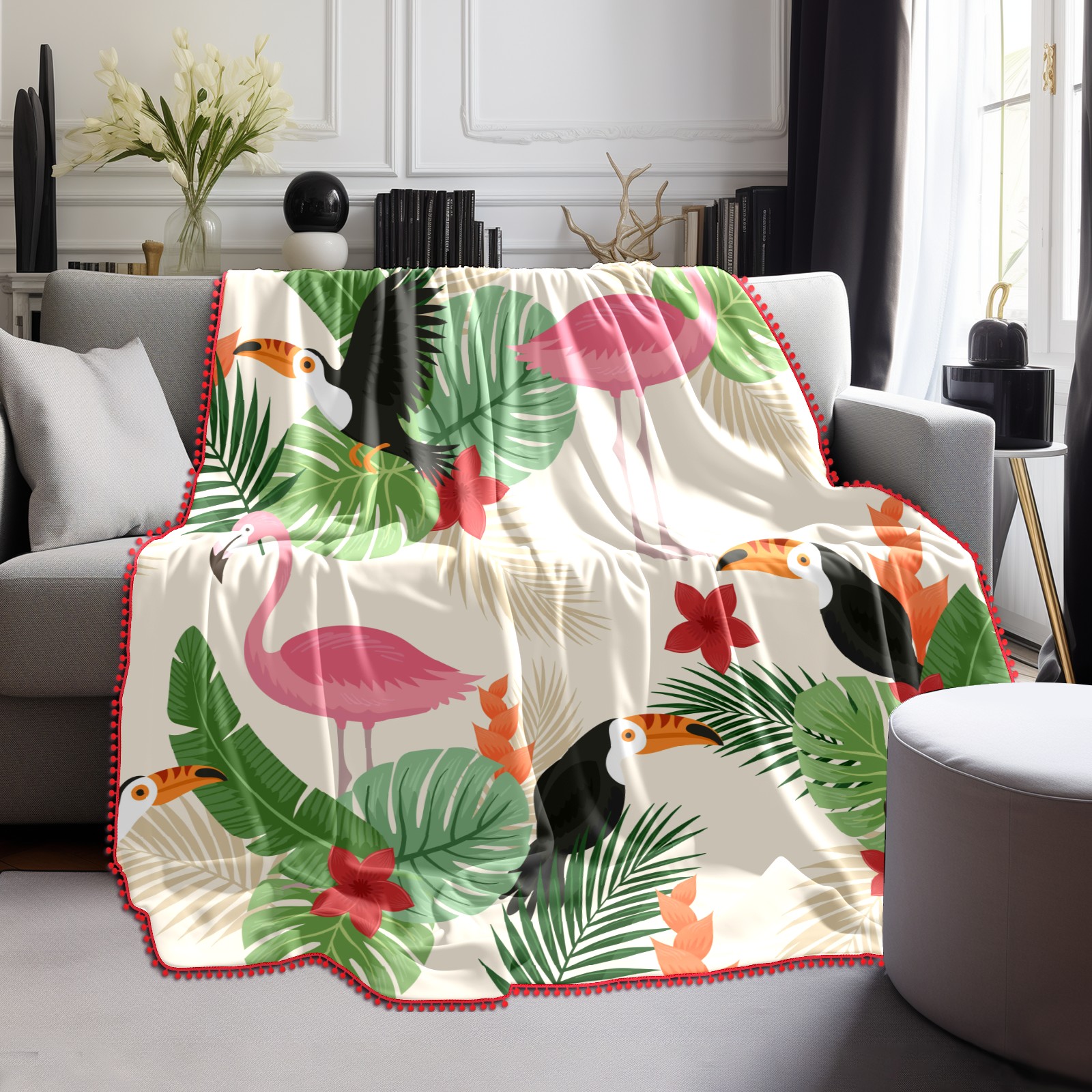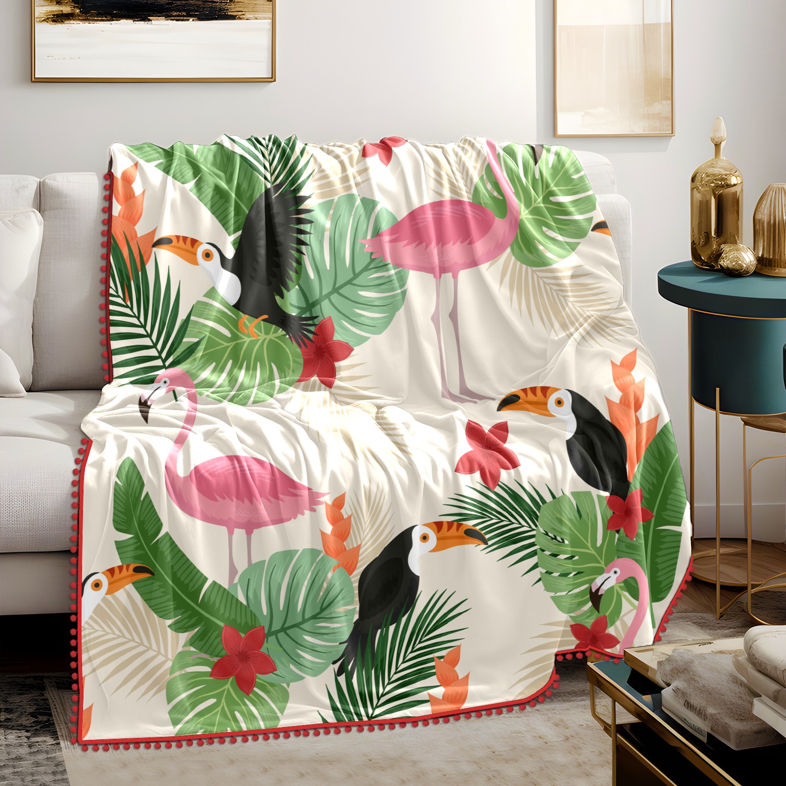 流苏毛毯 Tropical Leaves Birds Background