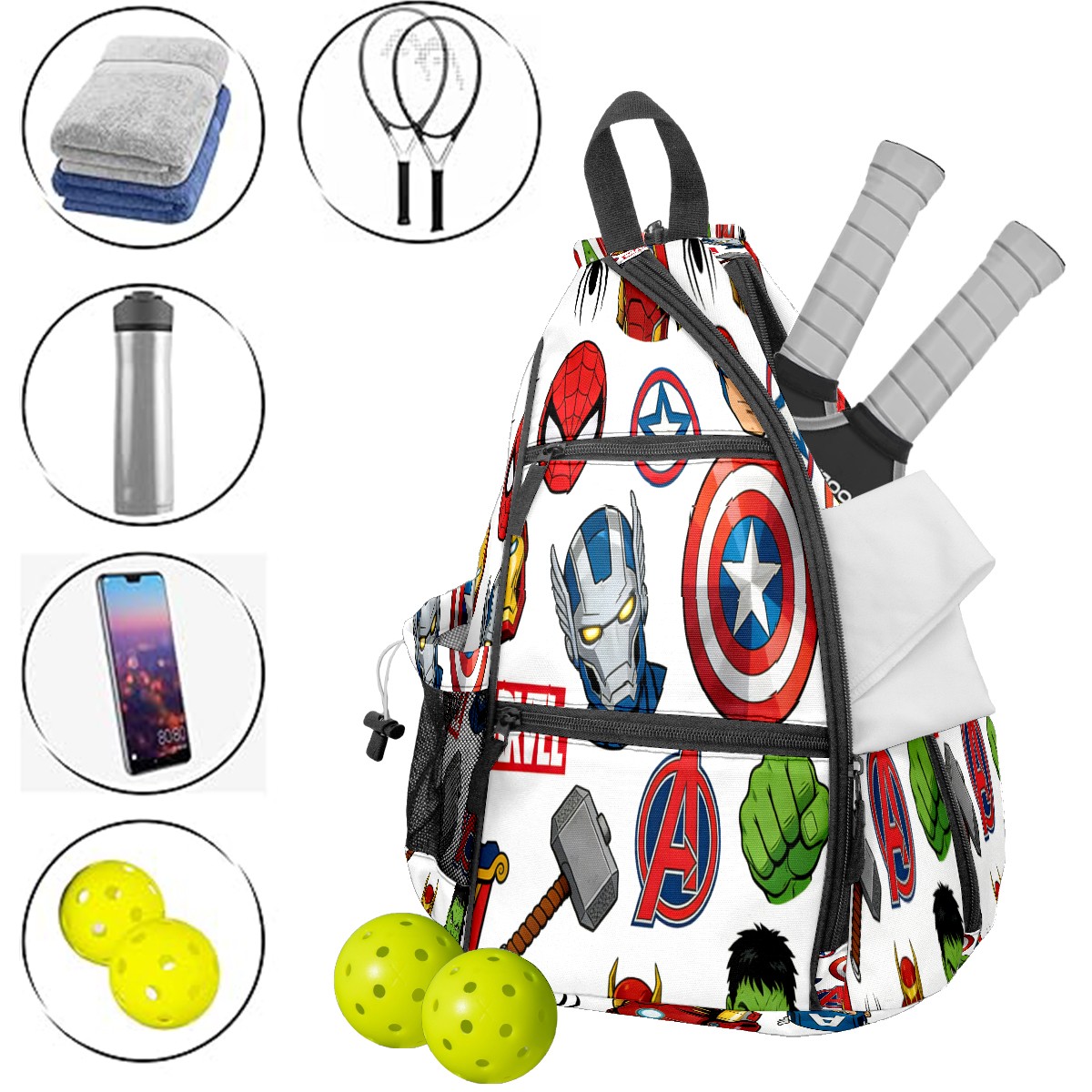 Материал: Прочная нейлоновая ткань + усиленные тканые лямки + дышащий сетчатый карман Размеры: 15×35×45 см / 6×13,8×17,7 дюймов Большая вместимость с множеством отделений – в одной сумке поместится все ваше снаряжение для пикбола: ракетки, мячи, защитная экипировка и бутылка с водой! Разработана для комфортной переноски – утолщенная мягкая спинка в сочетании с регулируемыми дышащими сетчатыми плечевыми ремнями эффективно распределяет вес, снимая боль в плечах и спине, а также мышечное напряжение. Ткань сумки гладкая и приятная на ощупь, деликатная и мягкая, что делает ежедневное использование более комфортным. Гибкие варианты переноски: плечевые лямки имеют съемную молнию, позволяющую свободно регулировать стиль ношения. Идеально подходит в качестве портативной сумки через плечо для ежедневных поездок на работу, отдыха на природе и спортивных мероприятий, а также в качестве практичного и продуманного подарка для друзей, семьи и других игроков в пикбол.