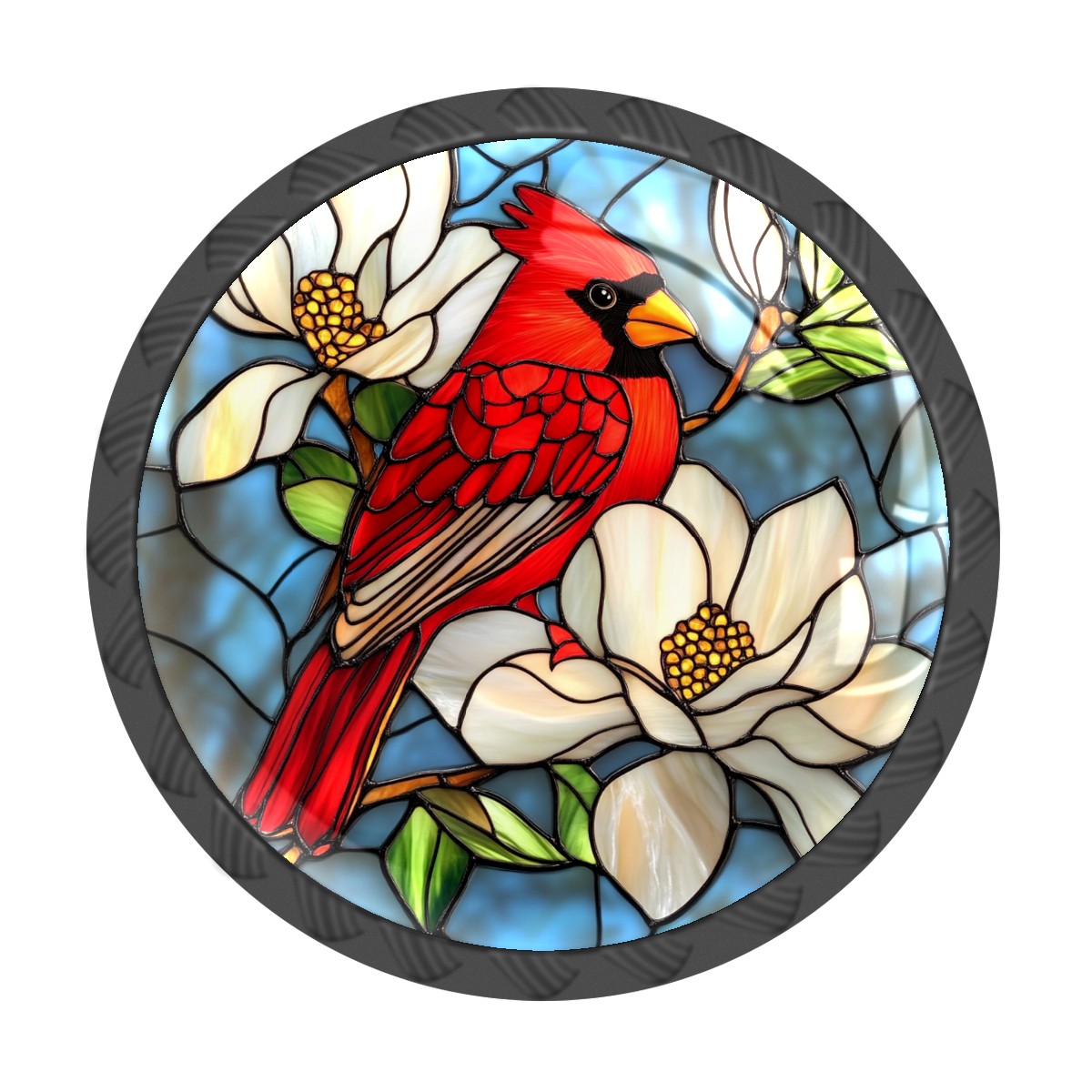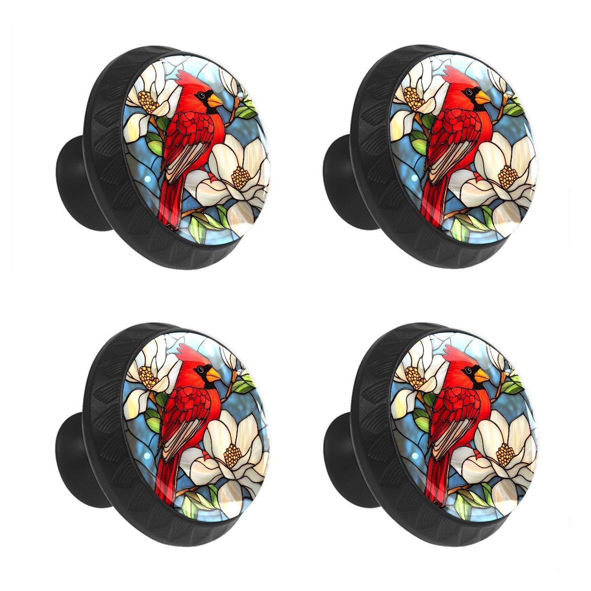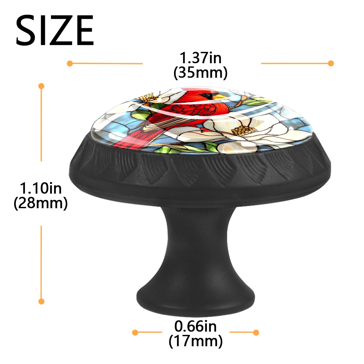 4 Pack Cabinet Knobs Cardinal Flowers Drawer Pulls Crystal Glass Round Knobs Handles for Dressers Drawer Bathroom Kitchen Cupboards Wardrobes Hardware Furniture Knobs