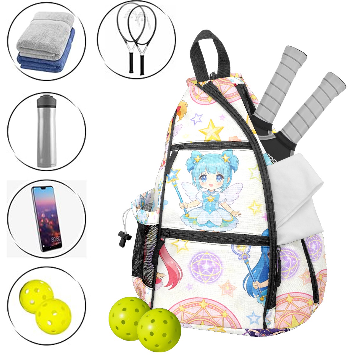 Pickleball Backpack for Women and Men, Adjustable Pickleball Sling Bag for Paddles, Balls & Accessories (生成亚马逊无缝图 (19))