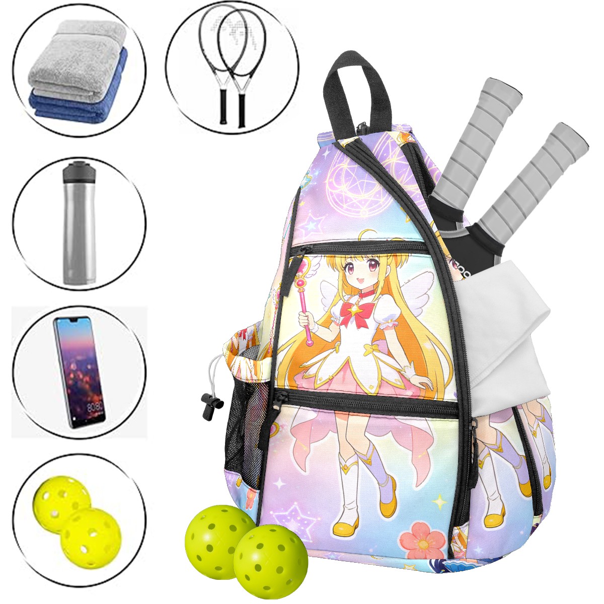 Pickleball Backpack for Women and Men, Adjustable Pickleball Sling Bag for Paddles, Balls & Accessories (生成亚马逊无缝图 (13))