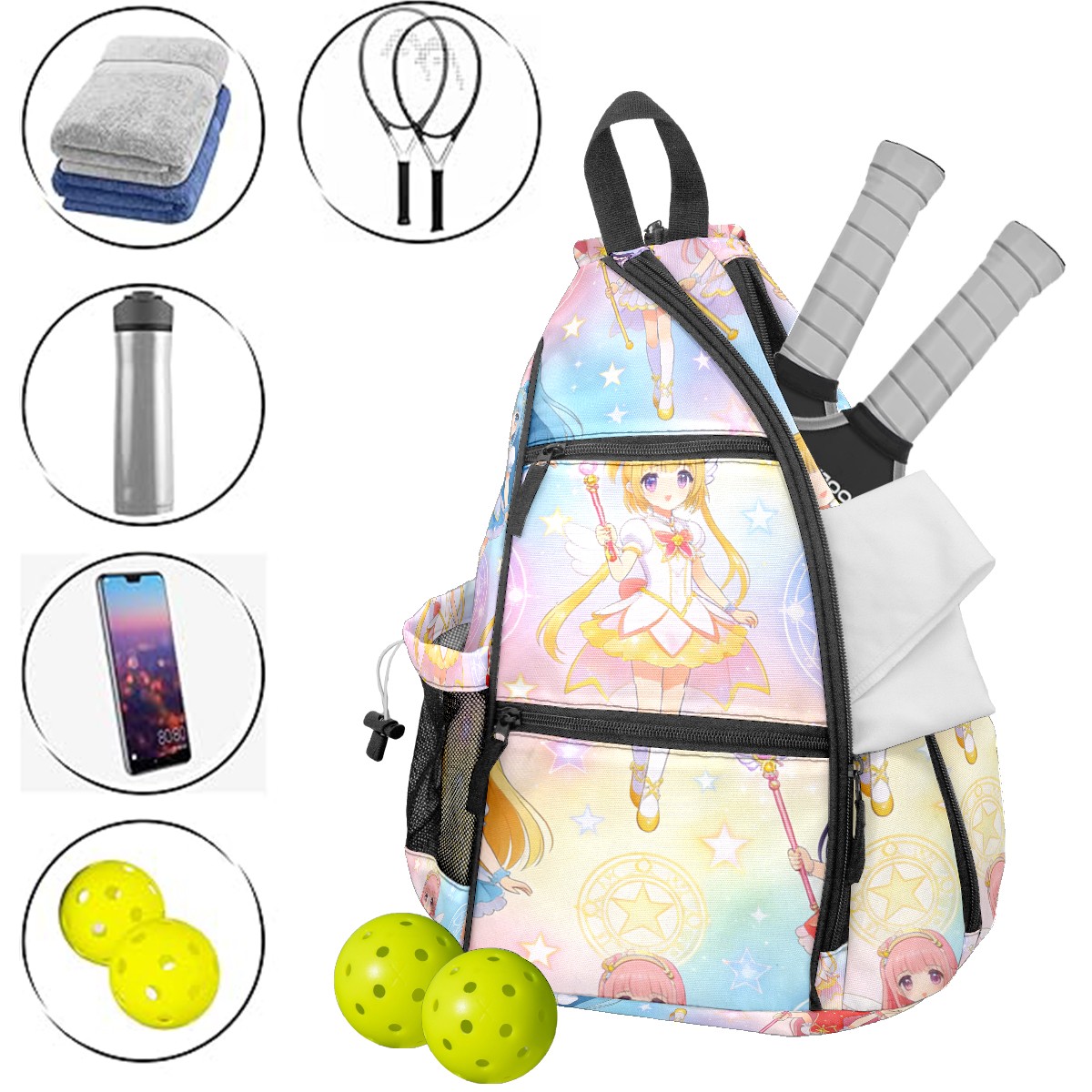 Pickleball Backpack for Women and Men, Adjustable Pickleball Sling Bag for Paddles, Balls & Accessories (生成亚马逊无缝图 (12))