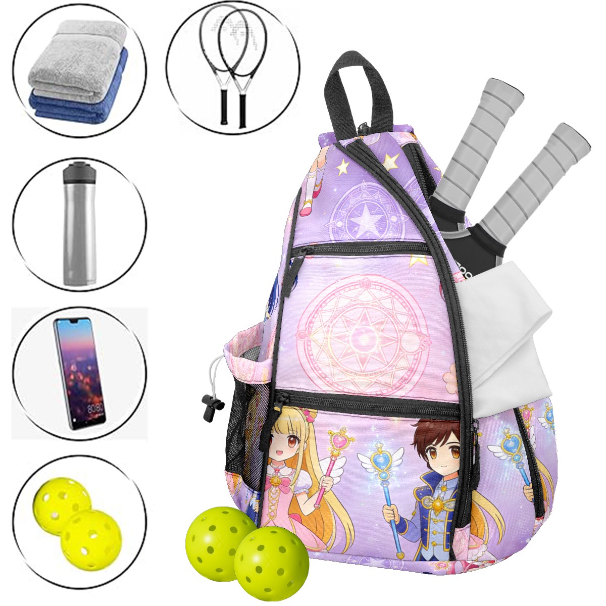 Pickleball Backpack for Women and Men, Adjustable Pickleball Sling Bag for Paddles, Balls & Accessories (生成亚马逊无缝图 (1))
