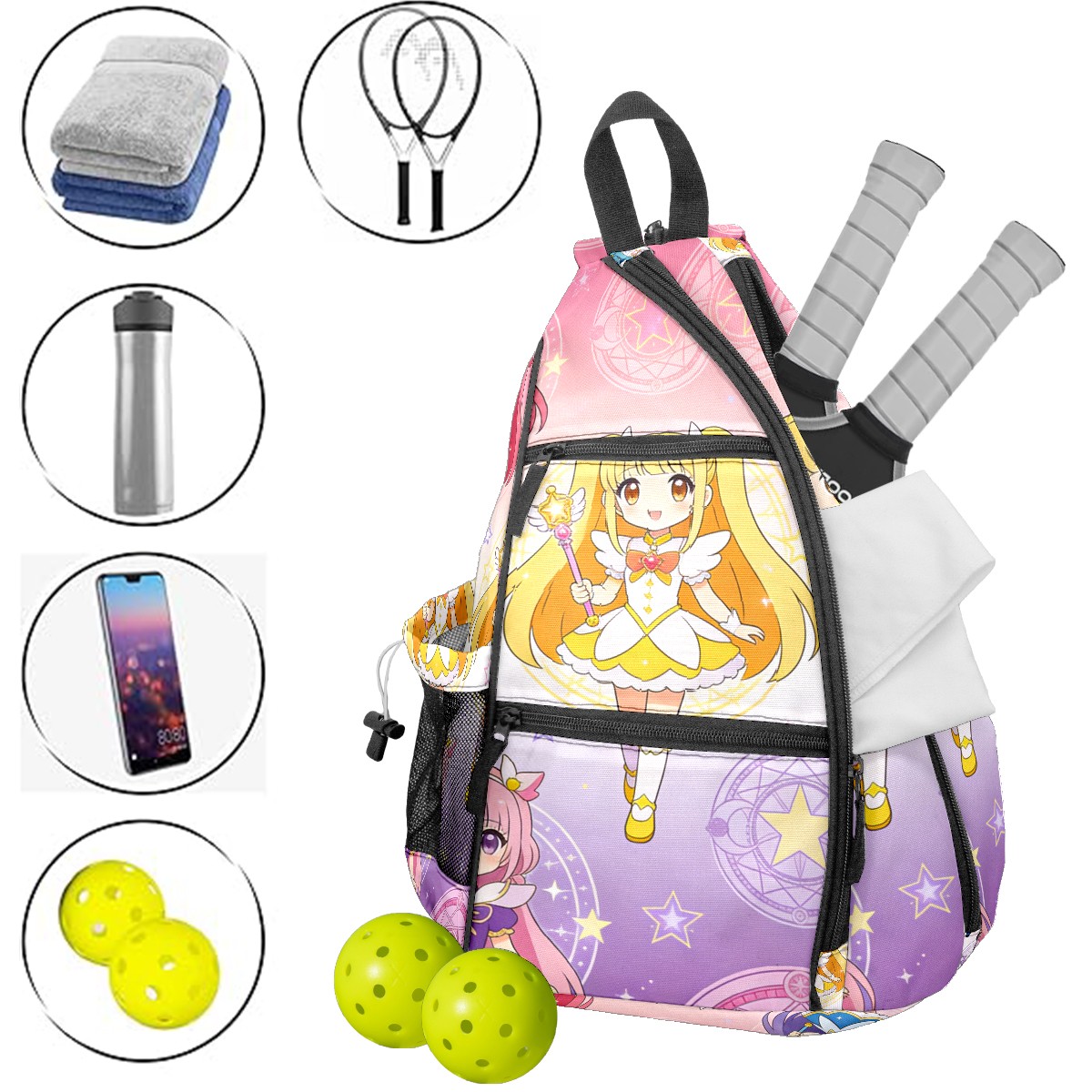 Pickleball Backpack for Women and Men, Adjustable Pickleball Sling Bag for Paddles, Balls & Accessories (生成亚马逊无缝图 (3))