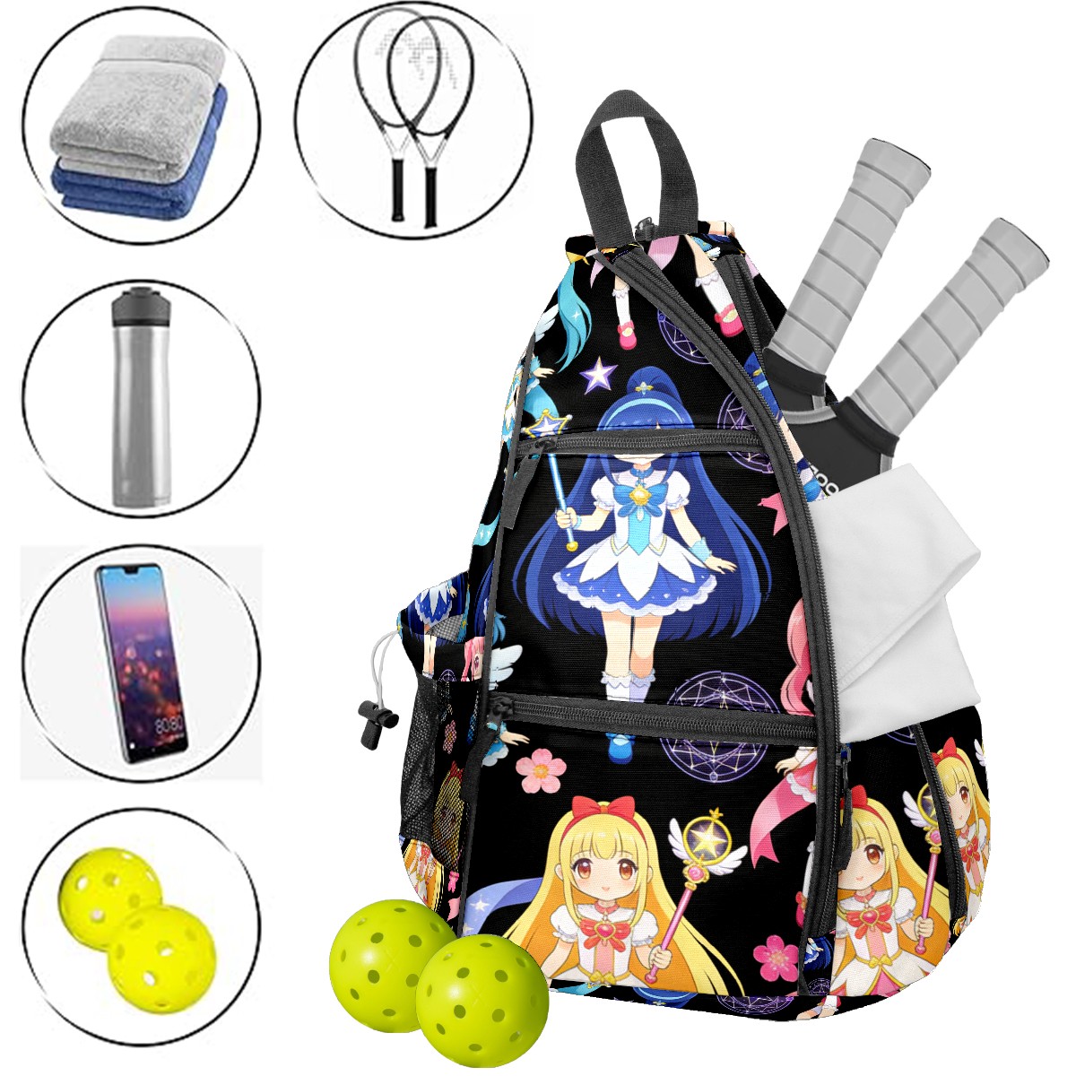 Pickleball Backpack for Women and Men, Adjustable Pickleball Sling Bag for Paddles, Balls & Accessories (生成亚马逊无缝图)