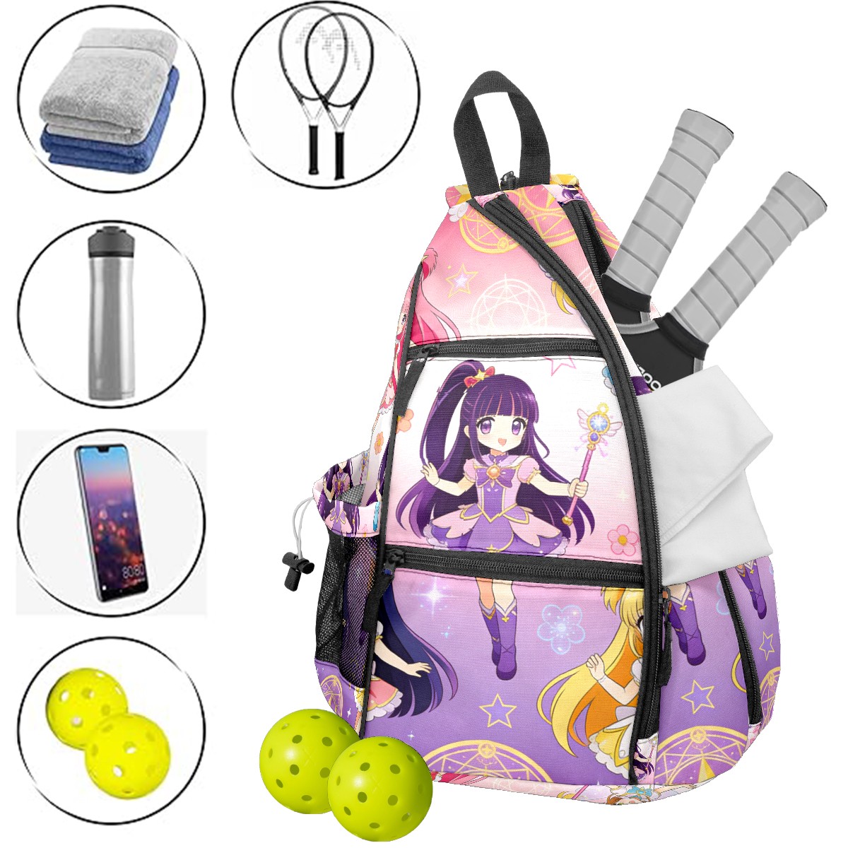 Pickleball Backpack for Women and Men, Adjustable Pickleball Sling Bag for Paddles, Balls & Accessories (生成亚马逊无缝图 (7))