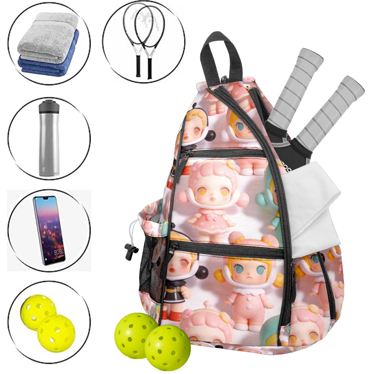 Pickleball Backpack for Women and Men, Adjustable Pickleball Sling Bag for Paddles, Balls & Accessories (创作经典IP图 (88))
