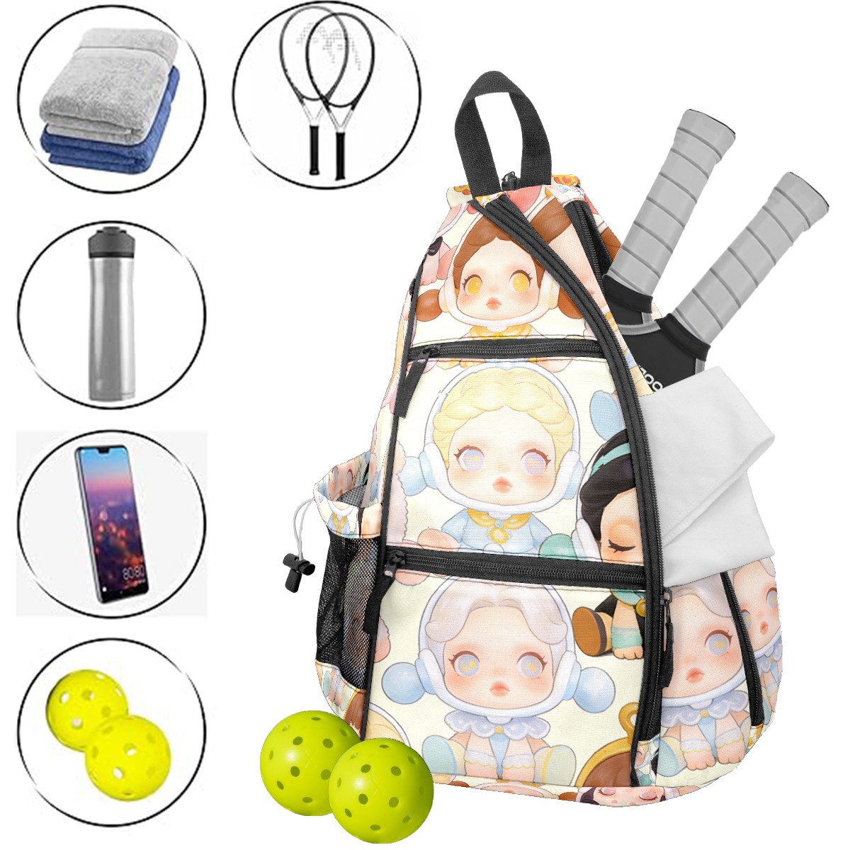 Pickleball Backpack for Women and Men, Adjustable Pickleball Sling Bag for Paddles, Balls & Accessories (创作经典IP图 (98))