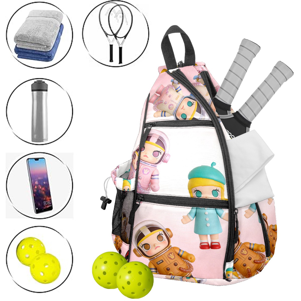 Pickleball Backpack for Women and Men, Adjustable Pickleball Sling Bag for Paddles, Balls & Accessories (创作经典IP图 (64))