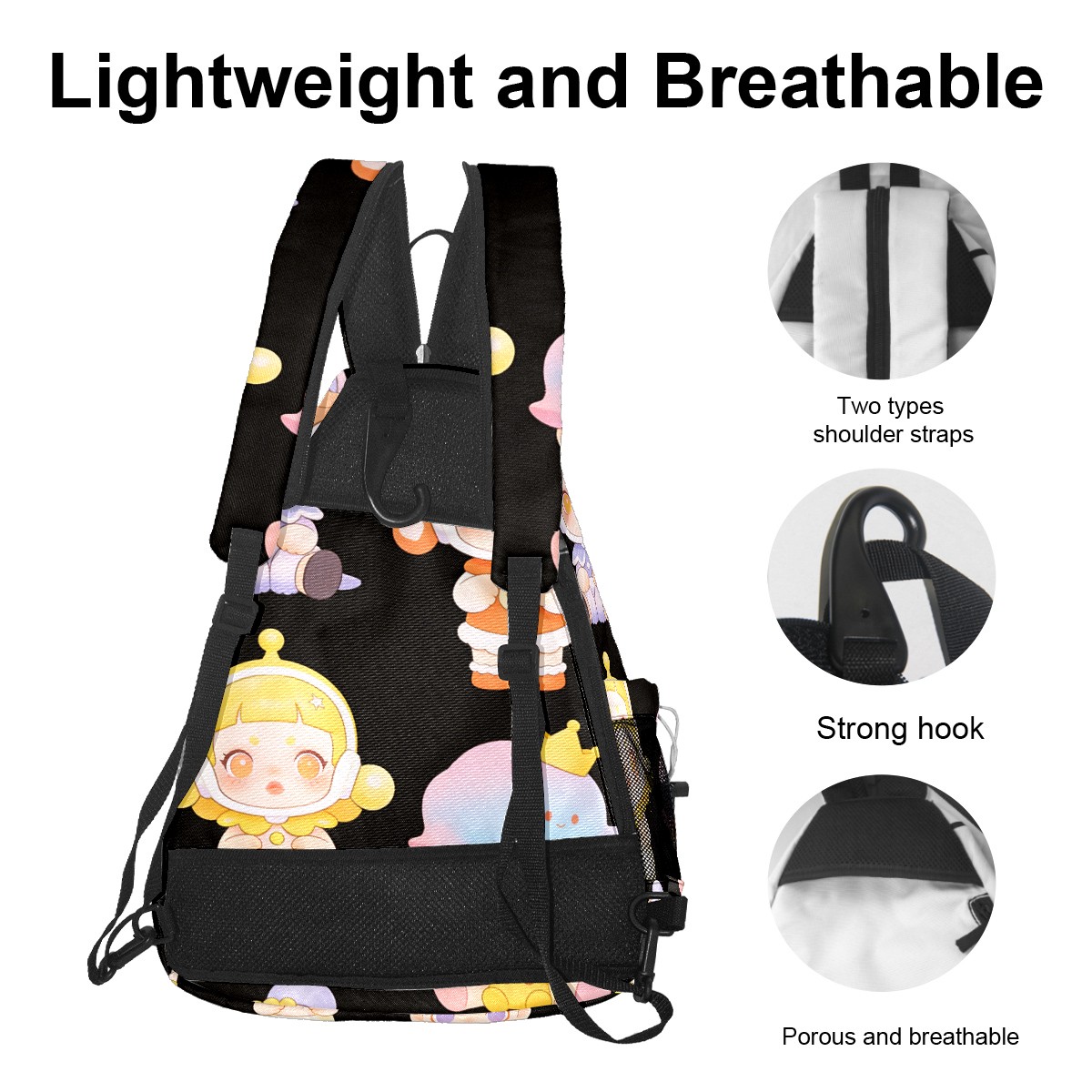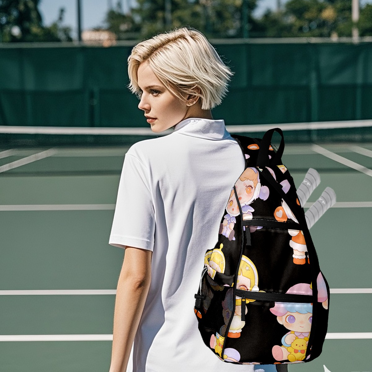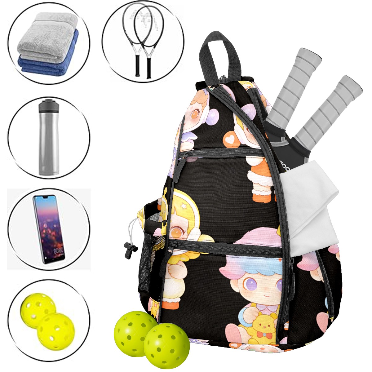 Pickleball Backpack for Women and Men, Adjustable Pickleball Sling Bag for Paddles, Balls & Accessories (创作经典IP图 (73))