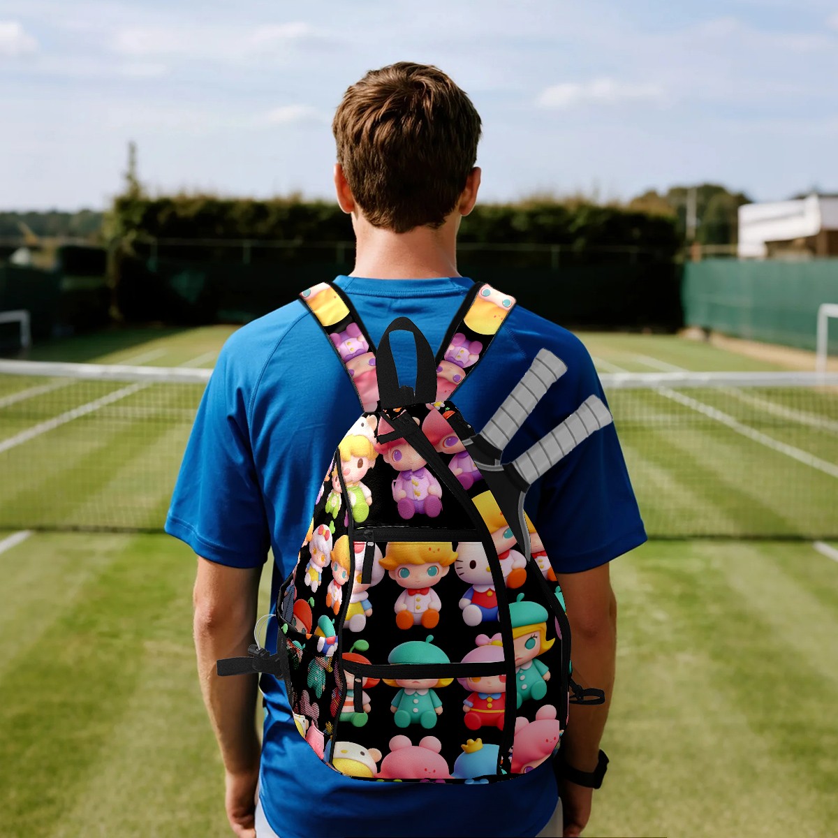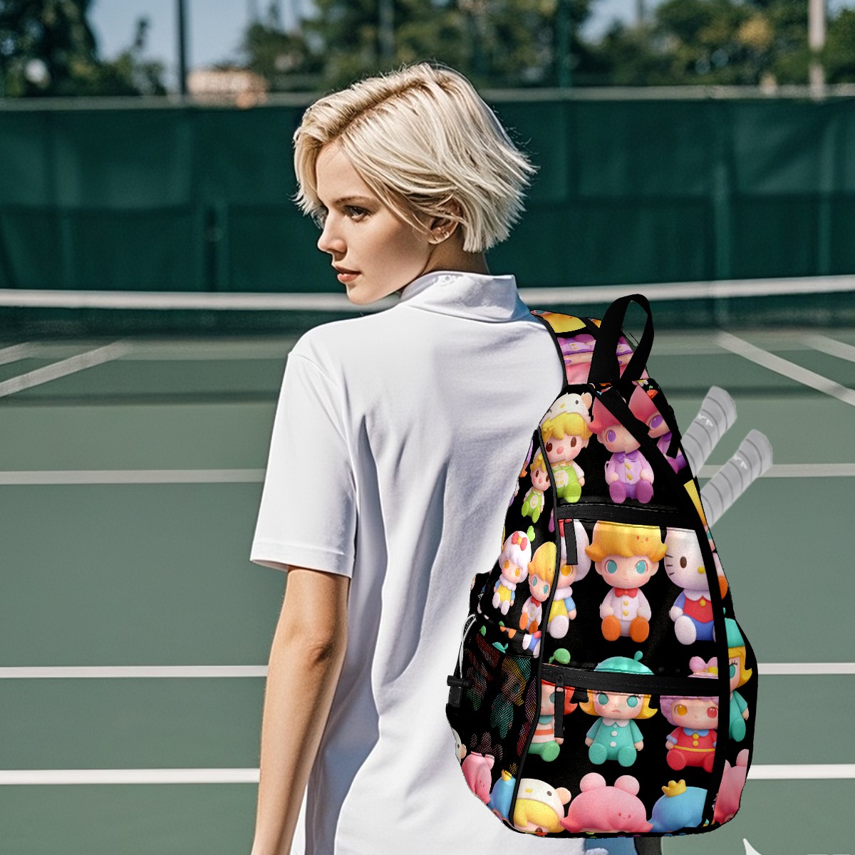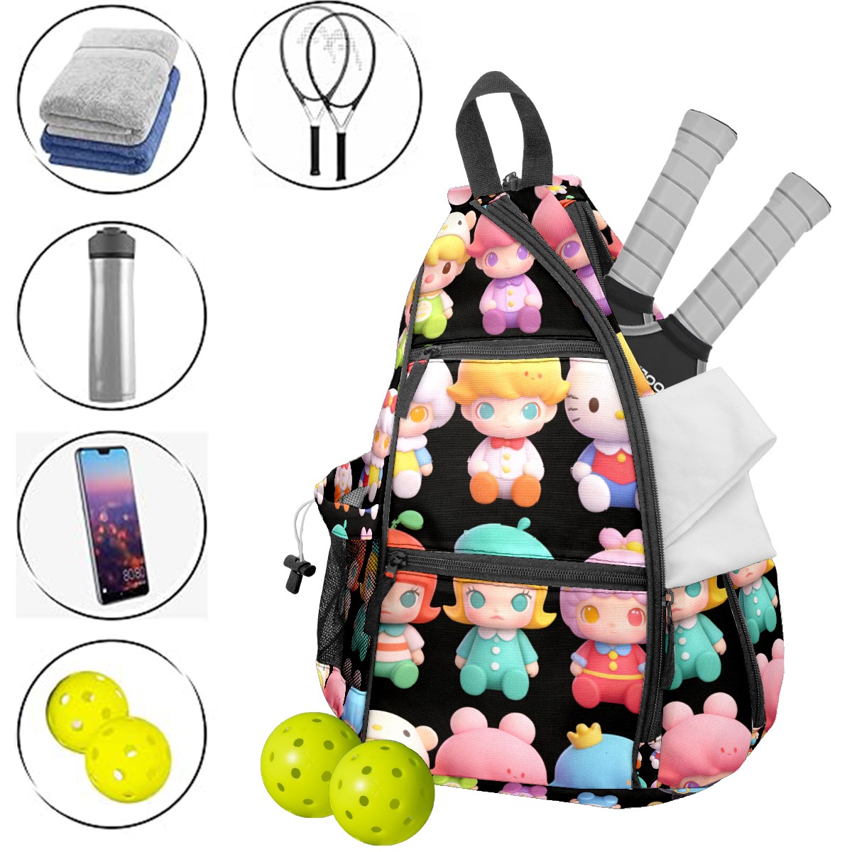 Pickleball Backpack for Women and Men, Adjustable Pickleball Sling Bag for Paddles, Balls & Accessories (创作经典IP图 (68))