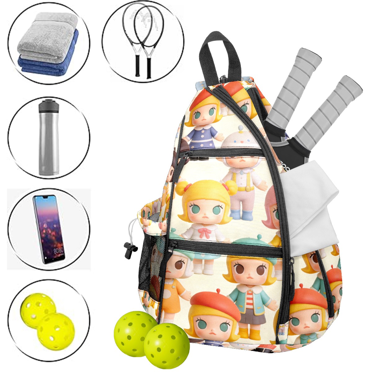Pickleball Backpack for Women and Men, Adjustable Pickleball Sling Bag for Paddles, Balls & Accessories (创作经典IP图 (55))