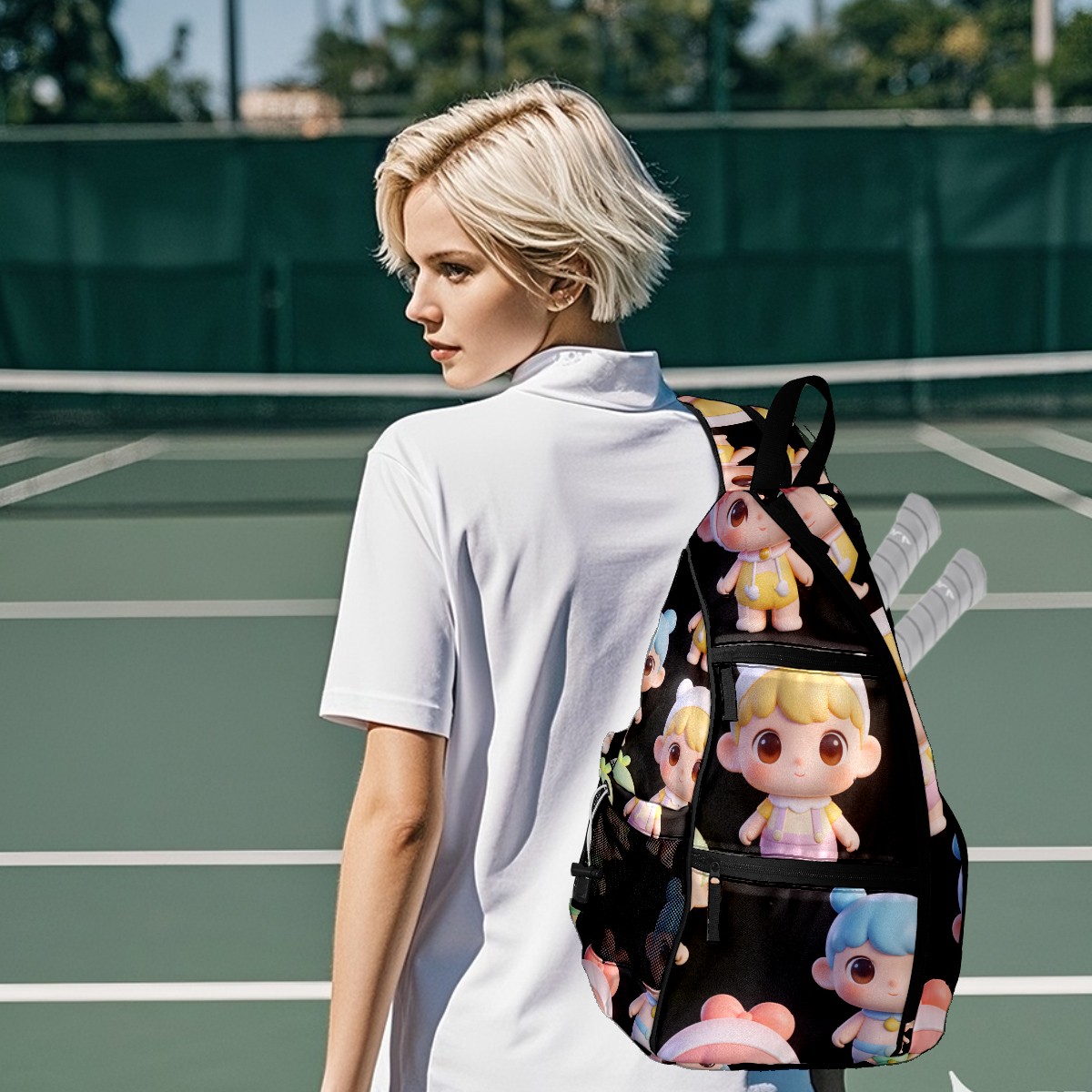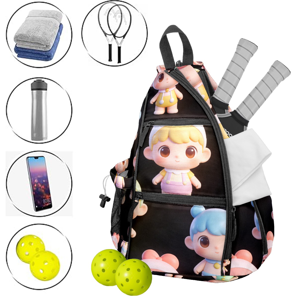 Pickleball Backpack for Women and Men, Adjustable Pickleball Sling Bag for Paddles, Balls & Accessories (创作经典IP图 (27))