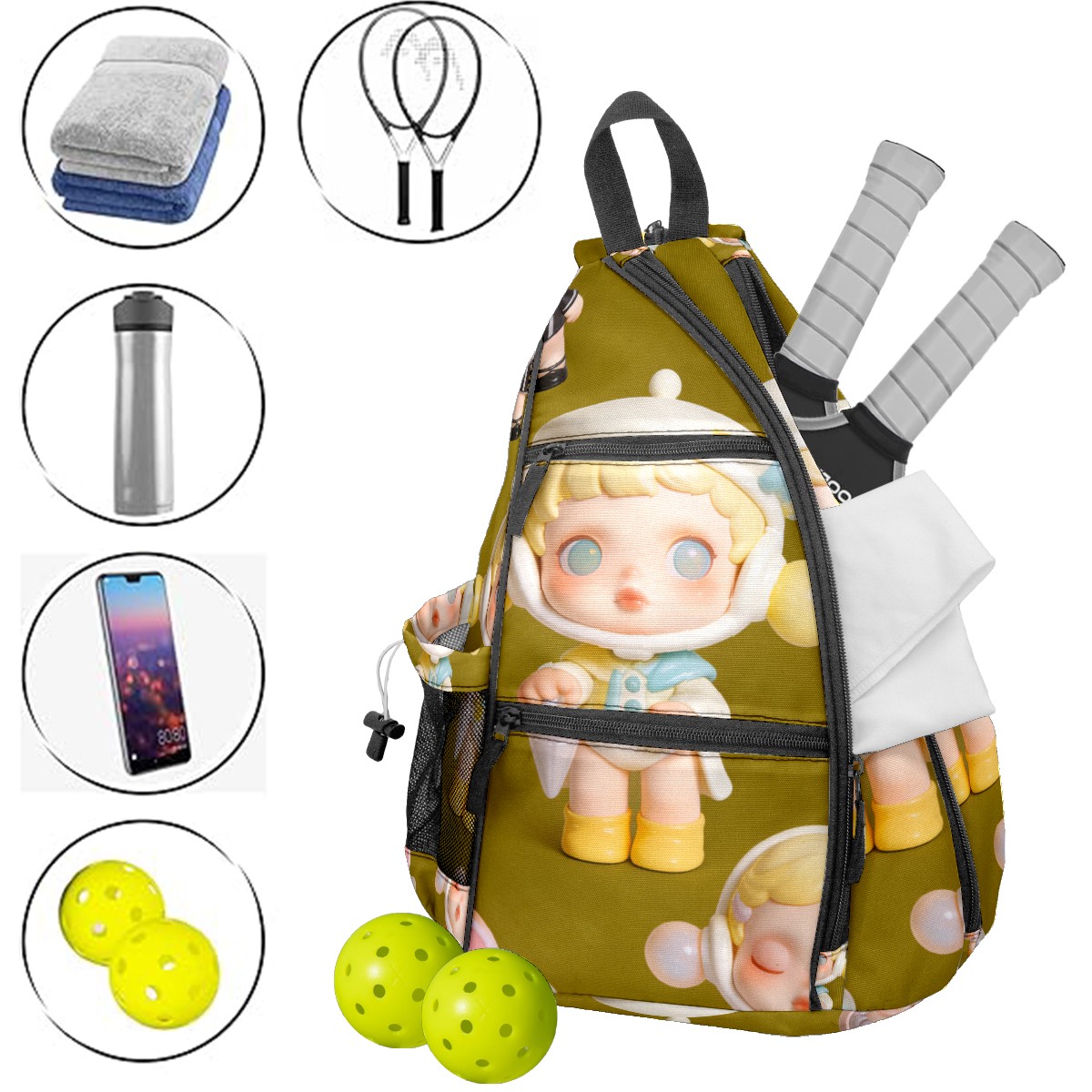 Pickleball Backpack for Women and Men, Adjustable Pickleball Sling Bag for Paddles, Balls & Accessories (创作经典IP图 (41))