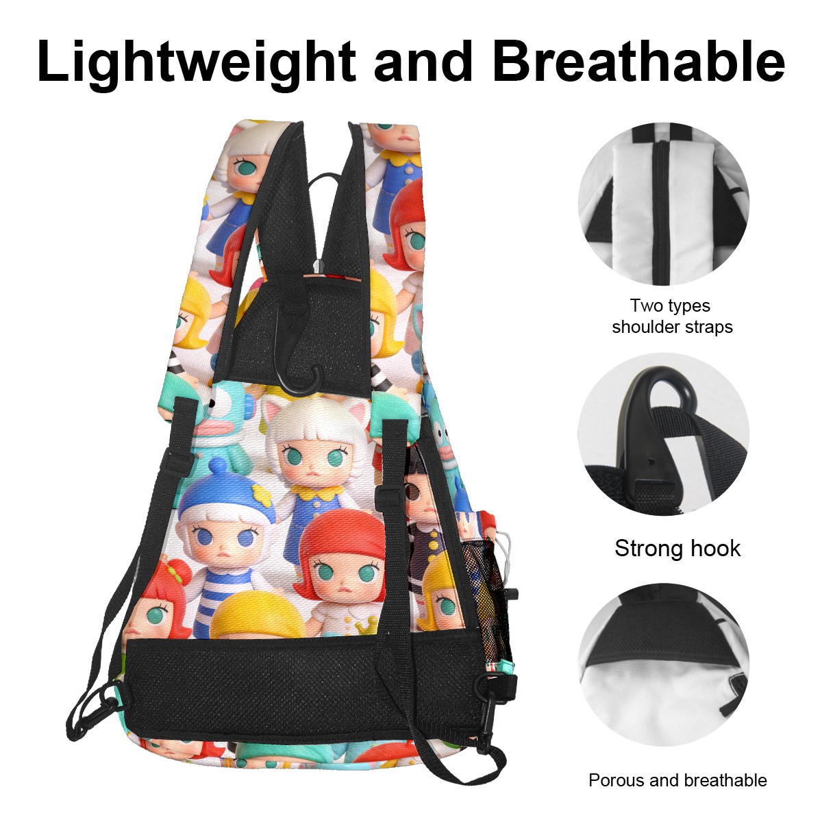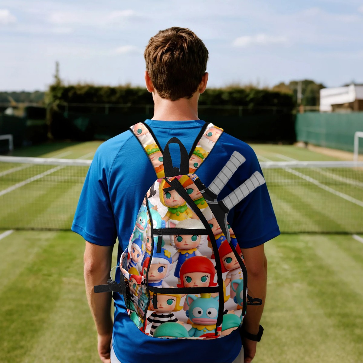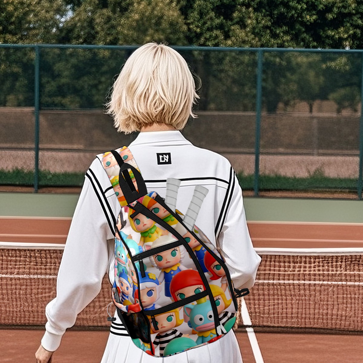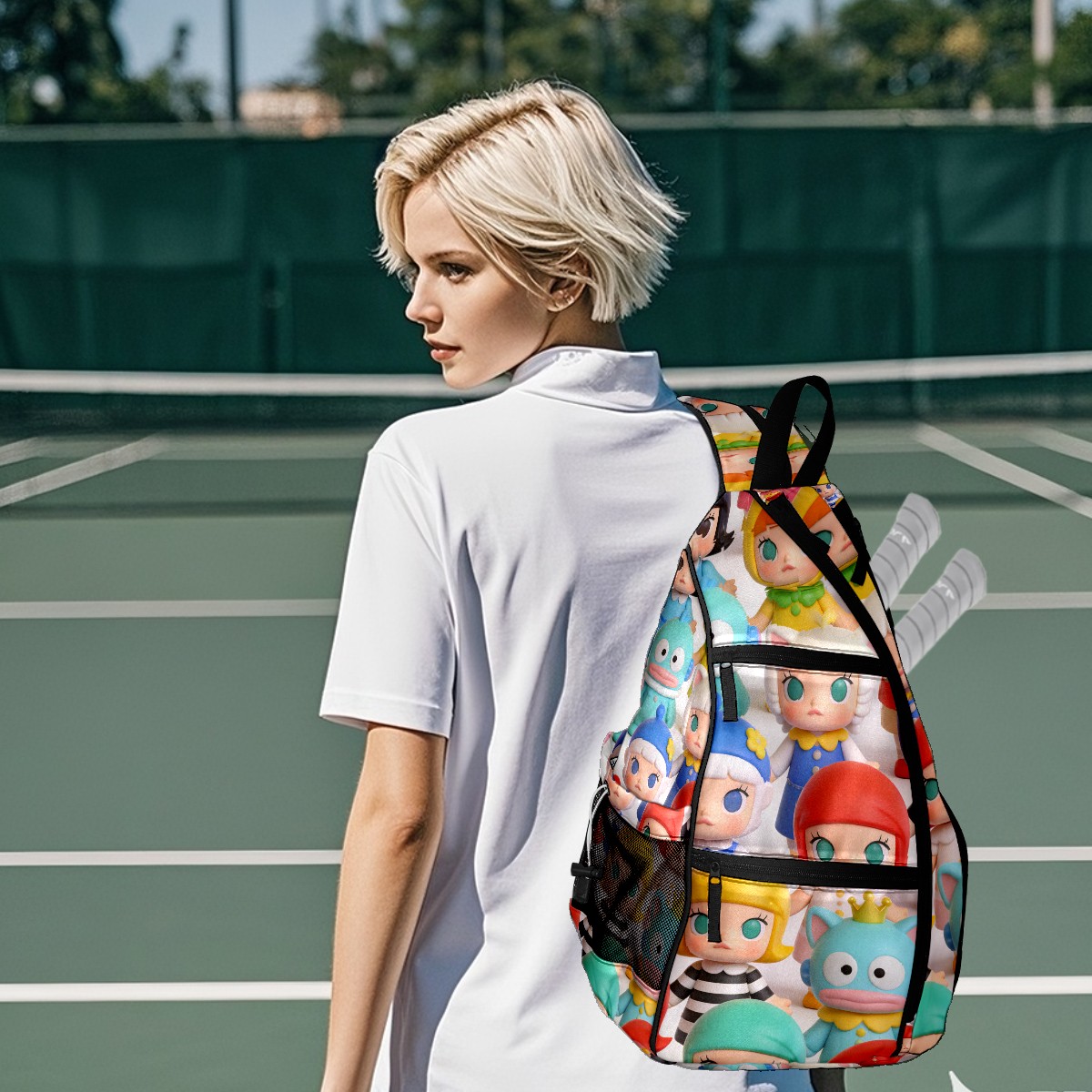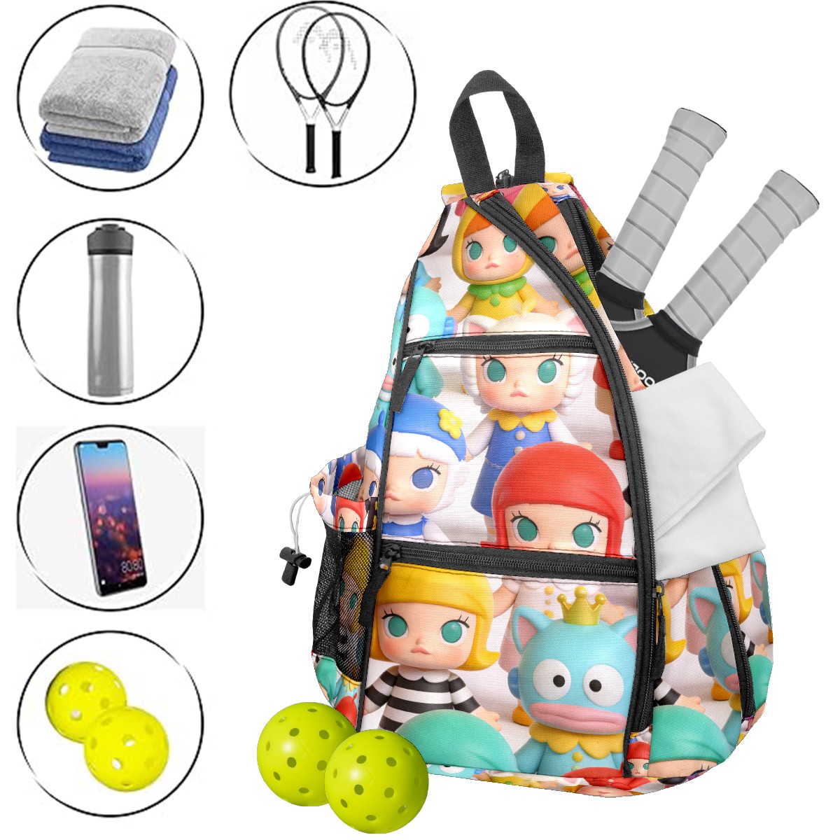 Pickleball Backpack for Women and Men, Adjustable Pickleball Sling Bag for Paddles, Balls & Accessories (创作经典IP图 (44))